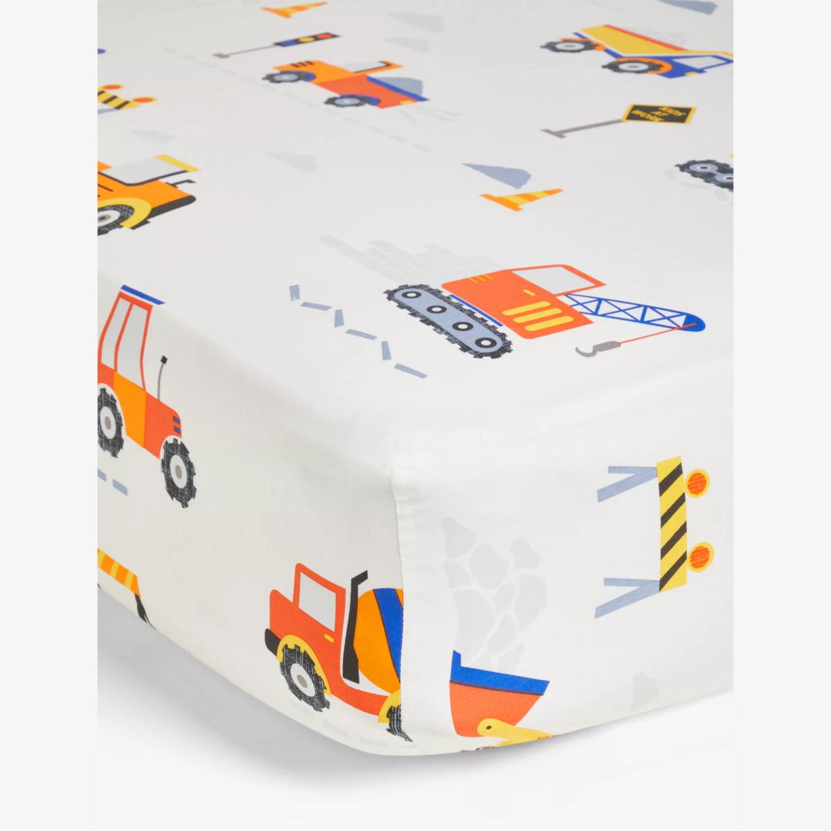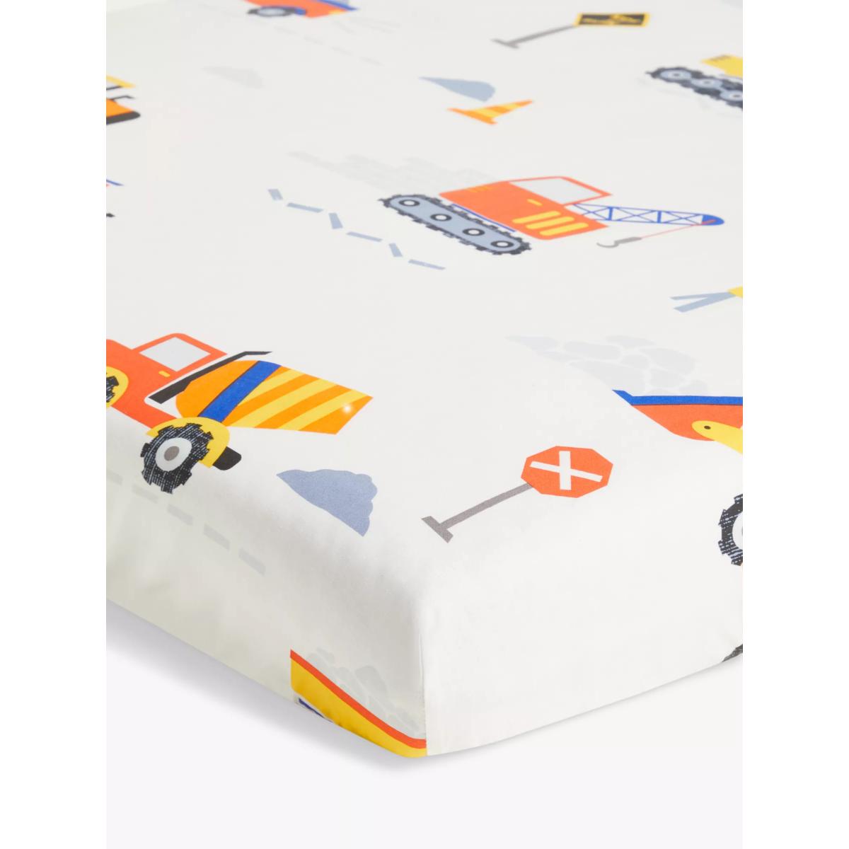 Build the room of their dreams with this construction printed fitted sheets from our little home collection. A key part of a good night's sleep, it is made from soft and breathable cotton that is kind to delicate skin. The fitted design makes it easy to put on the mattress as well as keeping the sheet tight on the bed for peace of mind. Pair with matching items from our range for the complete look. Better Cotton By choosing our cotton products, you’re supporting our investment in Better Cotton’s mission to help cotton communities survive and thrive while protecting and restoring the environment. Better Cotton Farmers are farmers who care for the environment and respect workers’ rights and wellbeing. This product is sourced via a system of mass balance and therefore may not contain Better Cotton. bettercotton.org/massbalance