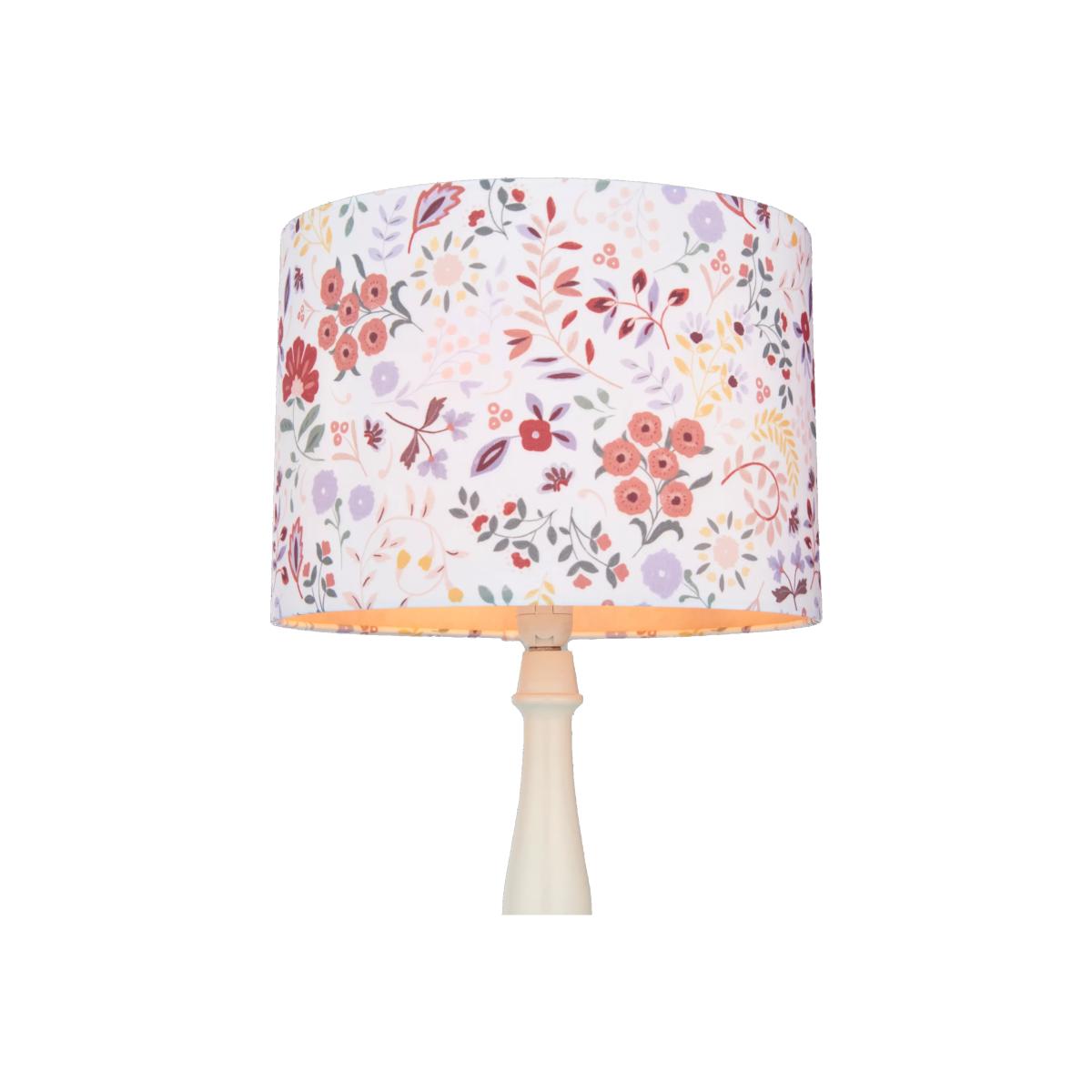Enter a magical garden with this lovely floral pattern light shade. Covered in a lovely floral pattern in a pastel palette and warm tones, it will brighten up your child's room and bring a hint of warm spring no matter the weather. Made from a faux linen fabric, the multi-purpose lampshade is designed with a reversible gimbal, so it can be hung from the ceiling, or installed on a table or floor lamp base.