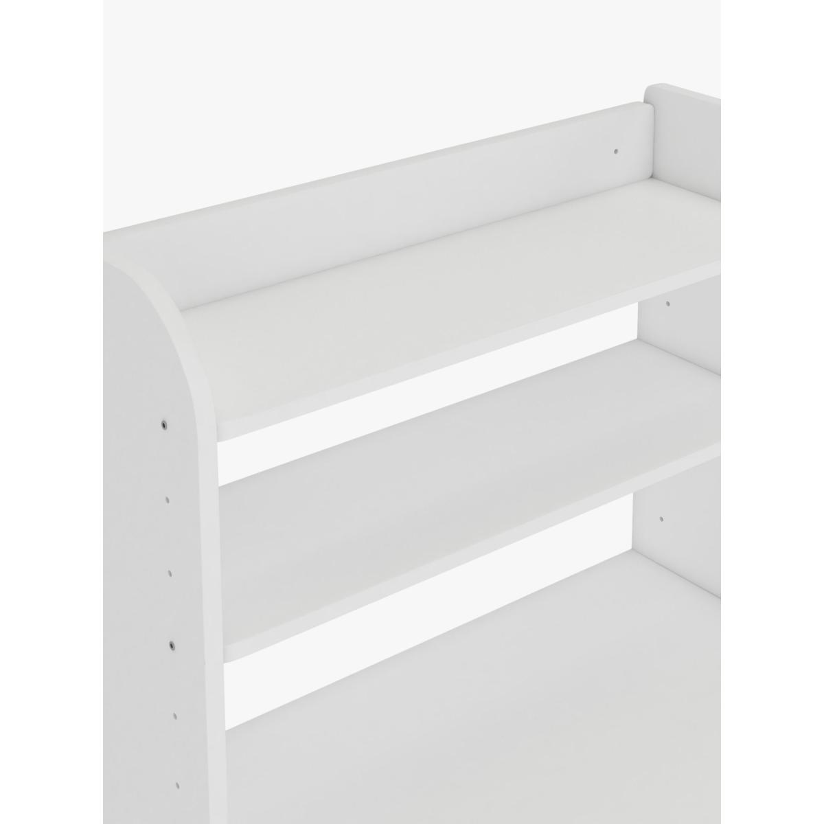 I love the little home at John Lewis Liv Tall Children's Desk for its clean, simple design that works well in a variety of interiors, from Scandi-inspired nurseries to contemporary playrooms. Its neutral white finish makes it highly versatile, allowing it to blend seamlessly with colourful accessories or pastel palettes. Practical styling tips include pairing it with fun, colourful storage baskets or a soft rug underneath for a cosy feel. It also works well positioned next to a reading nook or as part of a multipurpose space, creating a dedicated corner for homework or arts and crafts without dominating the room. Its slim profile makes it perfect for smaller rooms, while still providing enough surface area for creative projects.