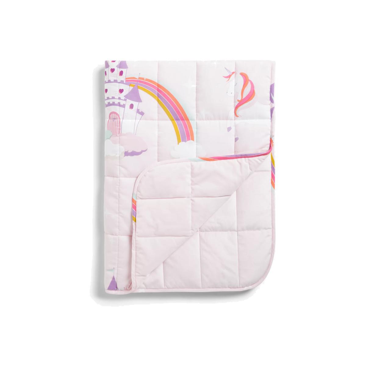 With a special weighty filling to create a reassuringly cosy feel, this blanket is designed to help reduce restlessness and aid relaxation. It features our Magical Unicorn print on the front, complete with colourful rainbows, and a plain soft plush on the reverse. Important to know Blanket weight: 2kg/4.4lbs Suitable for 20kg+ body weight We recommend the blanket weight to be a maximum of 10% of the child's body weight. Do not use a heavier weight blanket Important safety guidelines This weighted blanket is not suitable for children under 3 years due to the risk of overheating and suffocation We do not recommend using this product if you are pregnant or you suffer from respiratory disorders, such as asthma or sleep apnoea or circulatory disorders including type 2 diabetes If you have any other medical conditions which make you feel concerned about using this product, please consult a medical professional Use under adult supervision Users should always be able to remove the blanket themselves Users should not be rolled in the blanket and their head and neck should not be covered due to the risk of suffocation Do not fold the blanket, this will double the weight which will cause overheating and risk of suffocation Regularly check for broken or damaged parts. If damage is found, stop using the blanket as micro glass beads within the filling could present a choking hazard By buying cotton products from John Lewis & Partners, you're supporting more sustainable cotton farming through the Better Cotton Initiative. BCI is a not-for-profit organisation which exists to make global cotton production better for the people who produce it, better for the environment it grows in, and better for the sector's future. BCI works with partners around the world such as WWF, Solidaridad and Cotton Connect to train farmers to produce cotton more sustainably. Better Cotton is sourced via a principle of "mass balance" and is not physically traceable to end products. However, BCI Farmers benefit from the demand for Better Cotton in equivalent volumes to those we source.