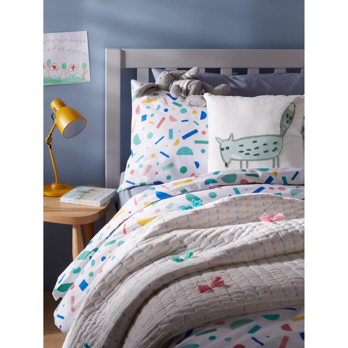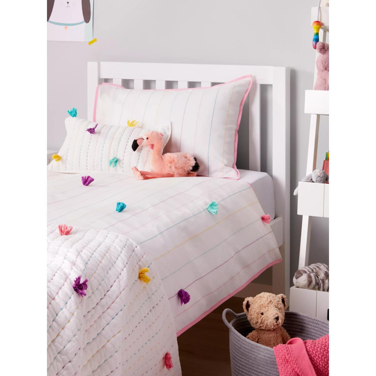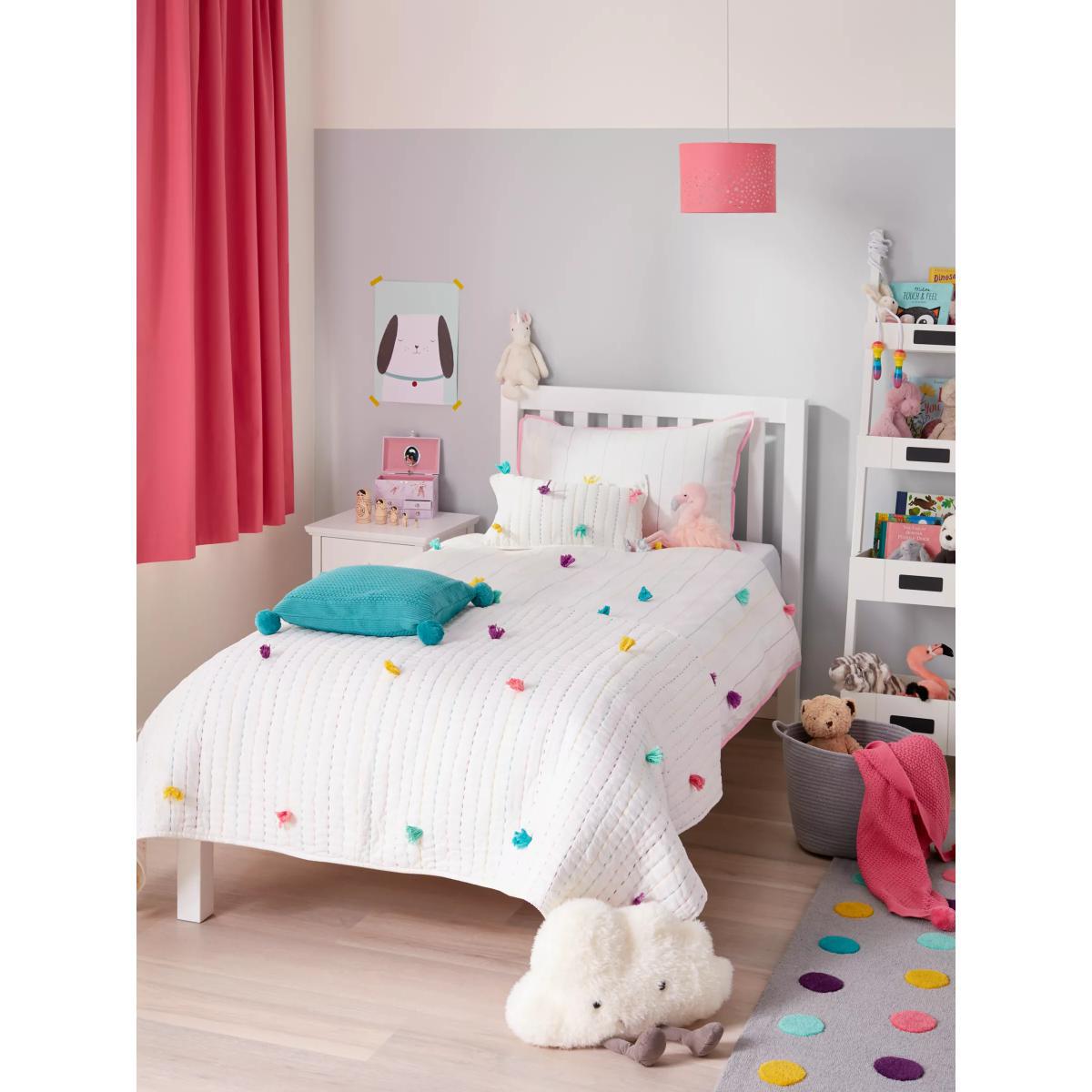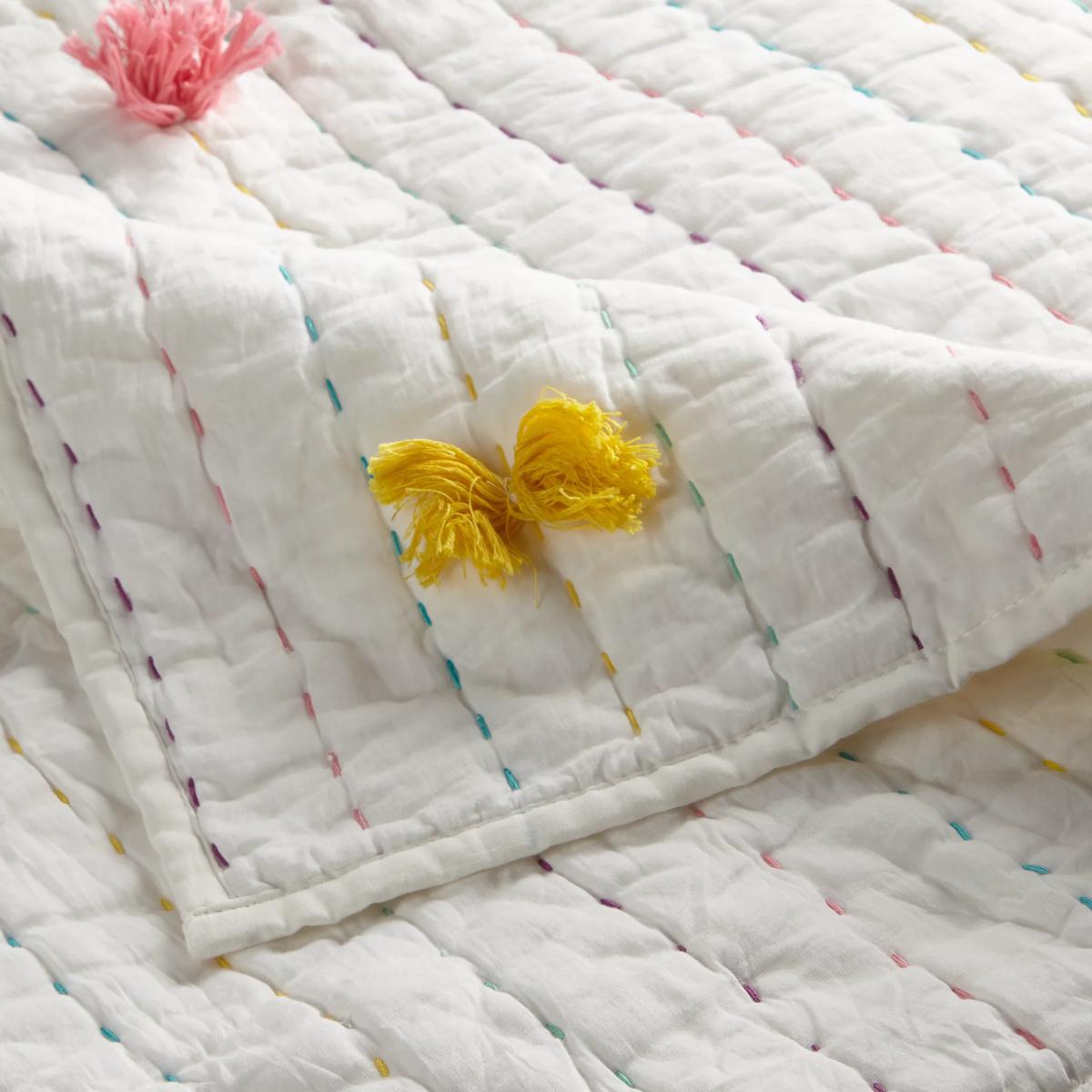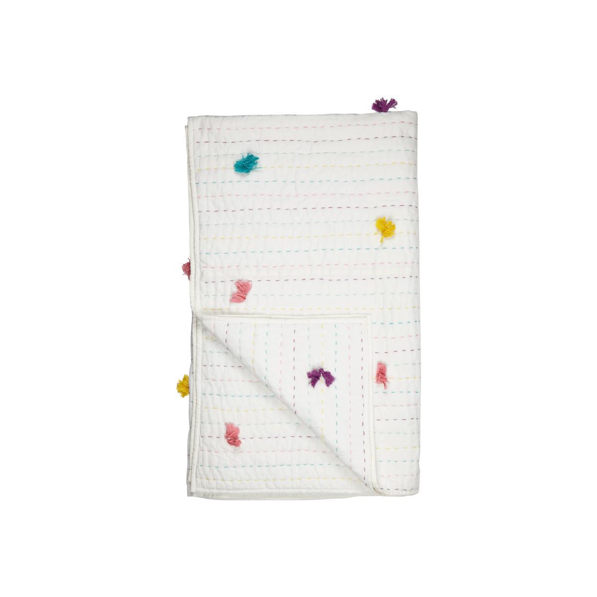 Layer our Pom Pom quilt over their bedding on cooler nights to keep them cosy. Made and filled with pure cotton, this lightweight, breathable throw features multicoloured stitching and tassel pom pom detailing for a playful finishing touch. Worth Knowing This item comes with a gift tag, making it perfect for present giving with a little extra love.