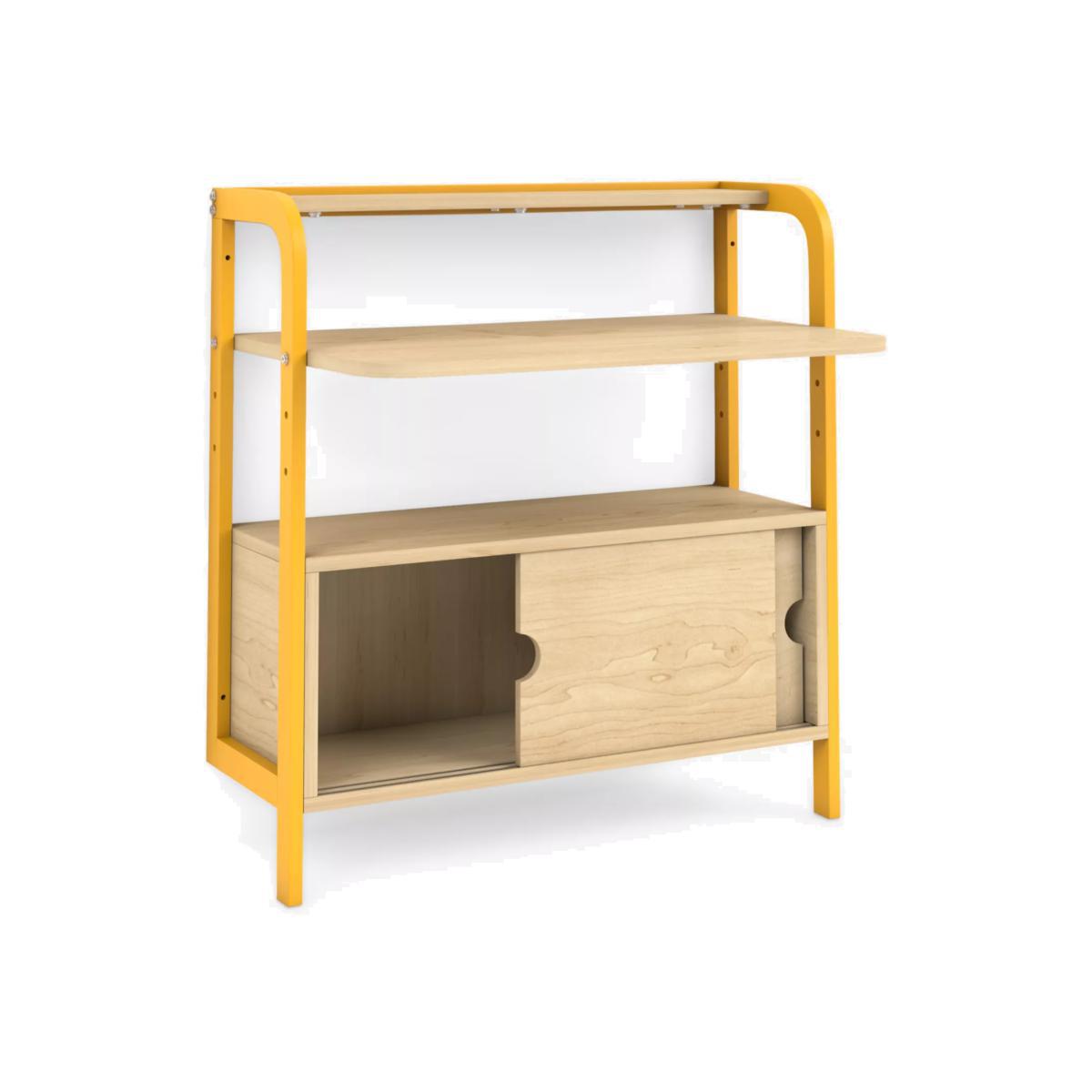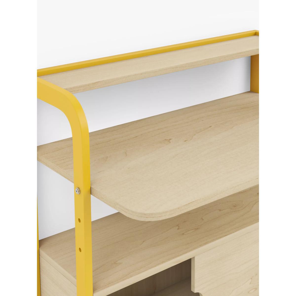 Get them their own little workspace at home (and reclaim yours) with this space-efficient bureau from our little home collection. A studio designed piece, this Raise children's bureau is has a contemporary aesthetic featuring a natural and warm timber finish and a pop of colour on the frame. The stylish piece provides extra storage in their room while also providing a work surface for them to draw or study on. A piece that will last, the bureau has 4 adjustable and stepped levels at which to set the work surface so it can be used from early years to into their teens. Made from durable and functional materials so it can take whatever they throw at it and make a great addition to your child's room.