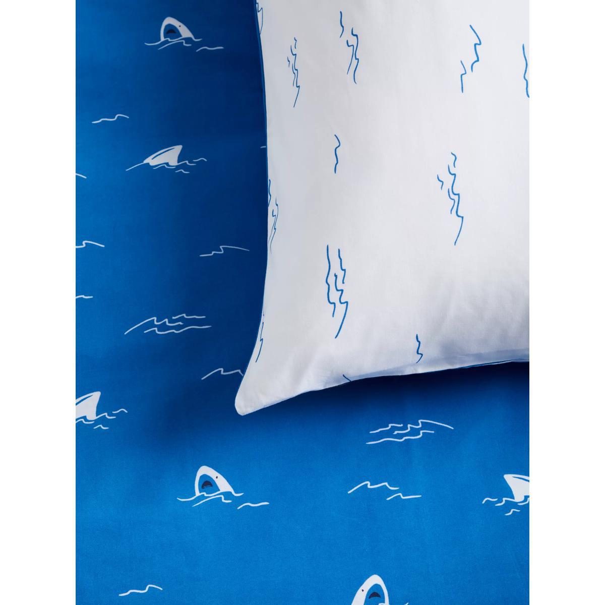 Perfect for nautical-themed bedrooms, this duvet cover has a blue sea print on the front and a white sea print on the reverse. It's made from a high-quality cotton and polyester blend and the pillowcase features a playful shark design, complete with a shaped tail and fin. Don't worry, it won't bite! We're cutting down on plastic In our quest to reduce single-use plastic waste, this bedding set is packed in a reusable fabric bag. By buying cotton products from John Lewis & Partners, you're supporting more sustainable cotton farming through the Better Cotton Initiative. BCI is a not-for-profit organisation which exists to make global cotton production better for the people who produce it, better for the environment it grows in, and better for the sector's future. BCI works with partners around the world such as WWF, Solidaridad and Cotton Connect to train farmers to produce cotton more sustainably. Better Cotton is sourced via a principle of mass balance and is not physically traceable to end products. However, BCI Farmers benefit from the demand for Better Cotton in equivalent volumes to those we source. Learn more about mass balance here.
