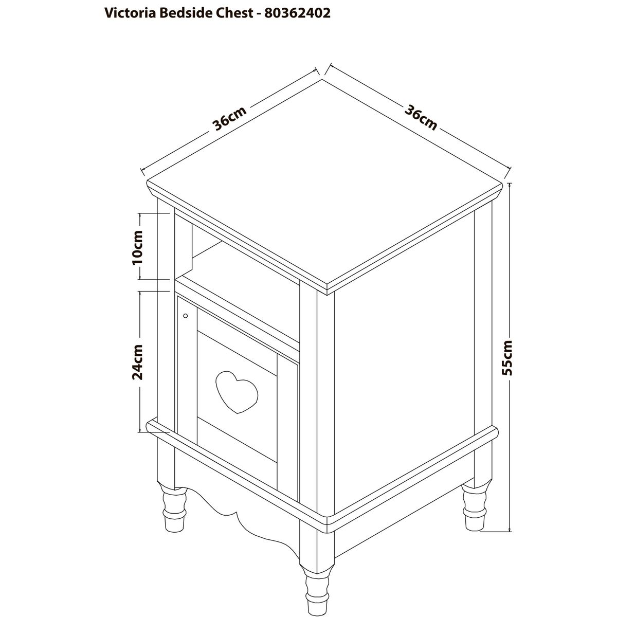 Designed especially for children, this charming bedside table is a perfect spot to place a lamp and collection of books. With sweet heart detailing on the door, stand this table bedside your little one's bed. Our children's furniture ranges pass all British Standards safety and quality. We go beyond the legal requirements when we design our furniture, so that you and your child can both sleep soundly.