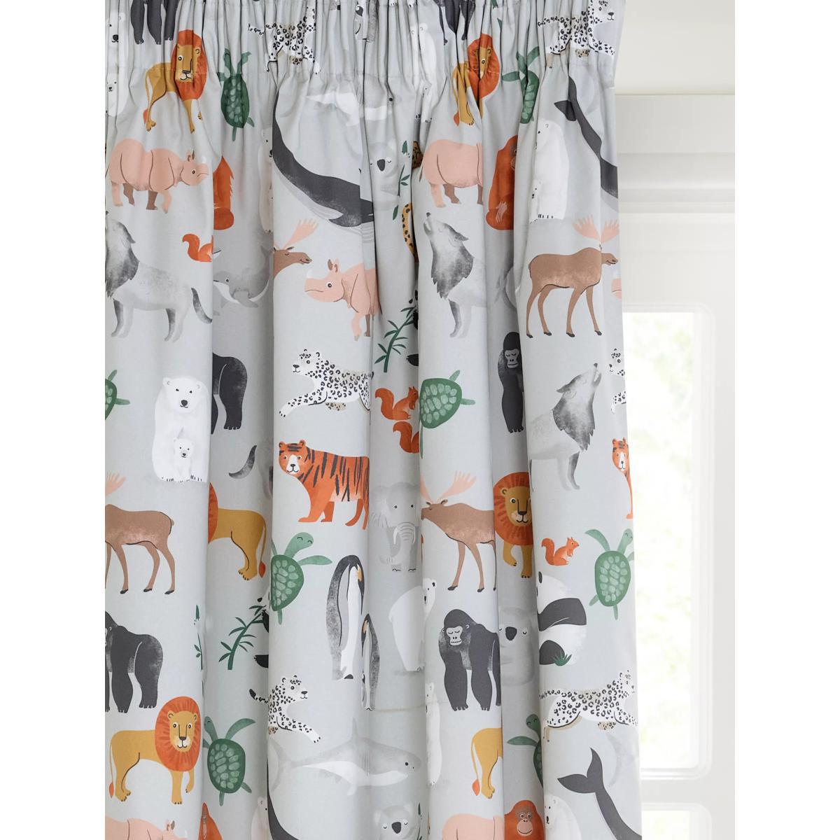 Printed with animals found around the world, these ready made children's curtains are the perfect choice for animal lovers. Supplied as a pair, they're made from pure cotton and have an effective blackout coating that helps to block out distracting sun beams or street lights. Plus, the pencil pleats give them a smart finish. The width dimension refers to the width of each individual curtain in the pair. Do you need a curtain pole and accessories? Shop. By buying cotton products from John Lewis & Partners, you're supporting more sustainable cotton farming through the Better Cotton Initiative. BCI is a not-for-profit organisation which exists to make global cotton production better for the people who produce it, better for the environment it grows in, and better for the sector's future. BCI works with partners around the world such as WWF, Solidaridad and Cotton Connect to train farmers to produce cotton more sustainably. Better Cotton is sourced via a principle of "mass balance" and is not physically traceable to end products. However, BCI Farmers benefit from the demand for Better Cotton in equivalent volumes to those we source.