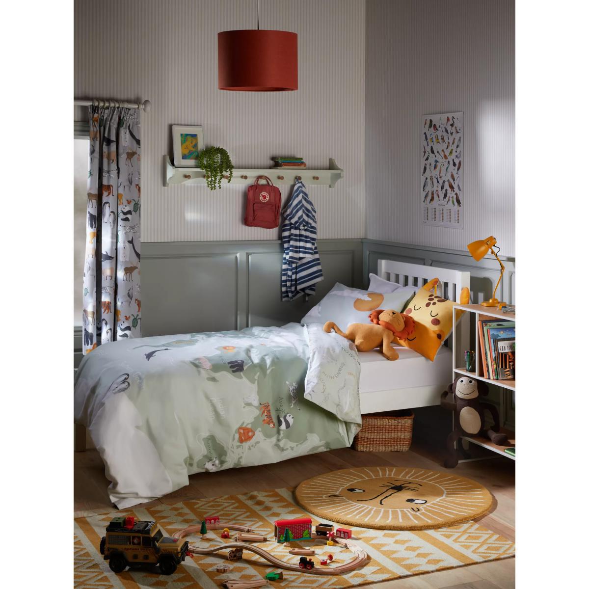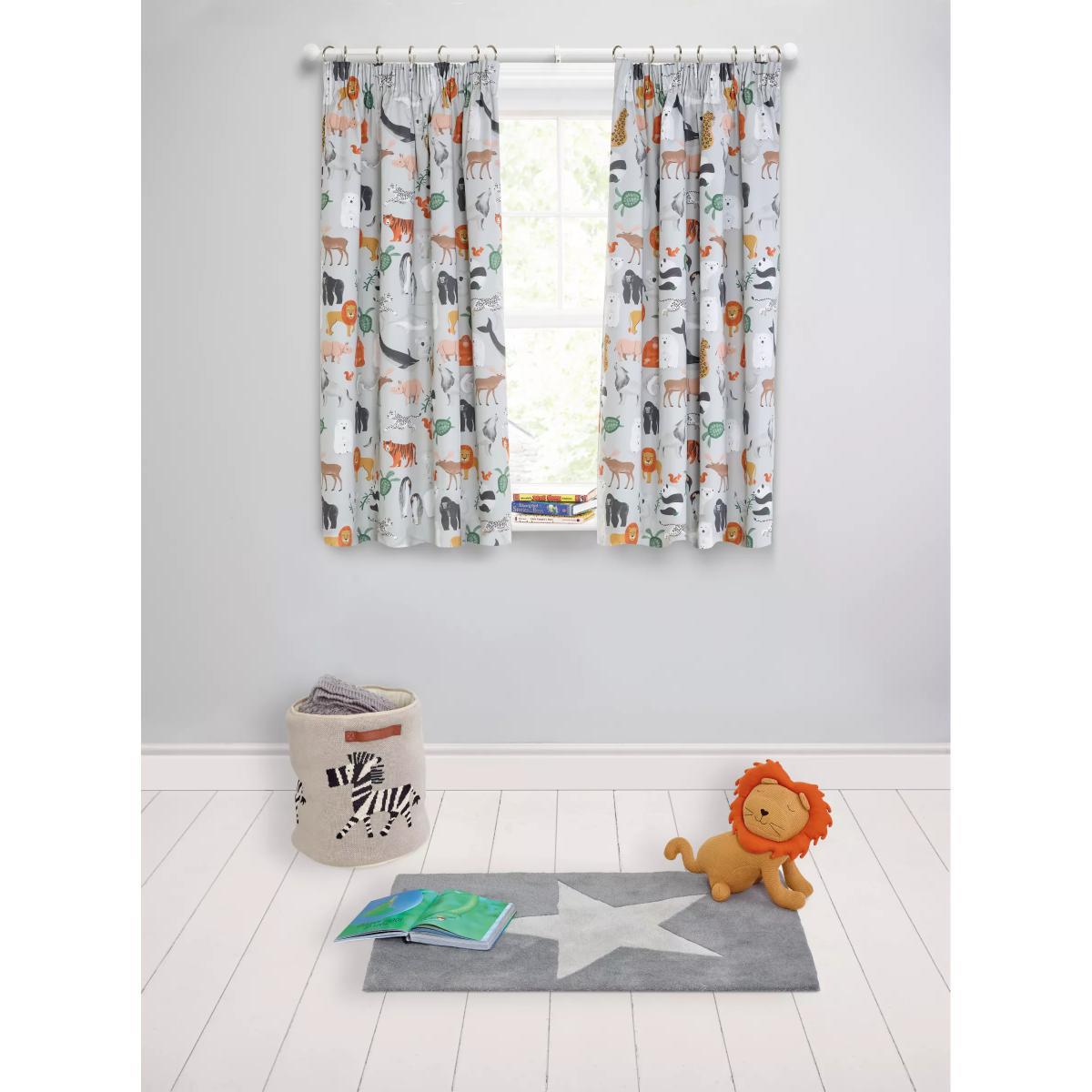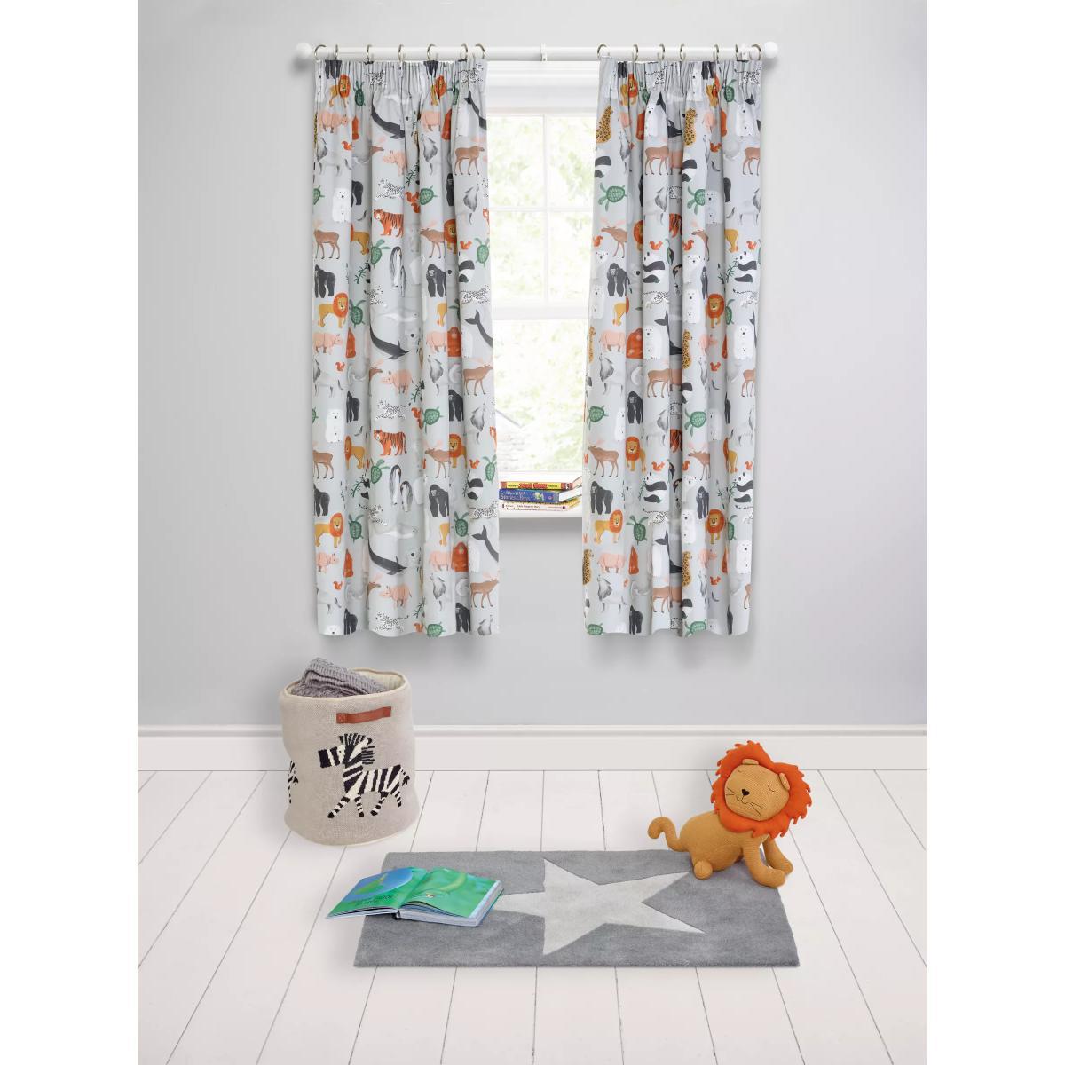 Printed with animals found around the world, these ready made children's curtains are the perfect choice for animal lovers. Supplied as a pair, they're made from pure cotton and have an effective blackout coating that helps to block out distracting sun beams or street lights. Plus, the pencil pleats give them a smart finish. The width dimension refers to the width of each individual curtain in the pair. Do you need a curtain pole and accessories? Shop. By buying cotton products from John Lewis & Partners, you're supporting more sustainable cotton farming through the Better Cotton Initiative. BCI is a not-for-profit organisation which exists to make global cotton production better for the people who produce it, better for the environment it grows in, and better for the sector's future. BCI works with partners around the world such as WWF, Solidaridad and Cotton Connect to train farmers to produce cotton more sustainably. Better Cotton is sourced via a principle of "mass balance" and is not physically traceable to end products. However, BCI Farmers benefit from the demand for Better Cotton in equivalent volumes to those we source.