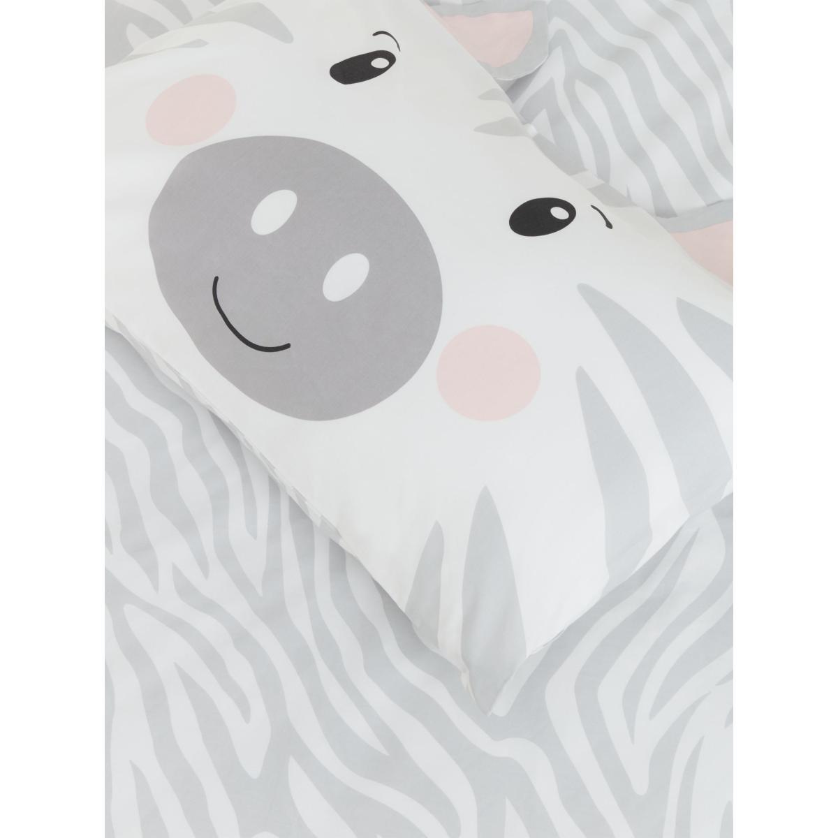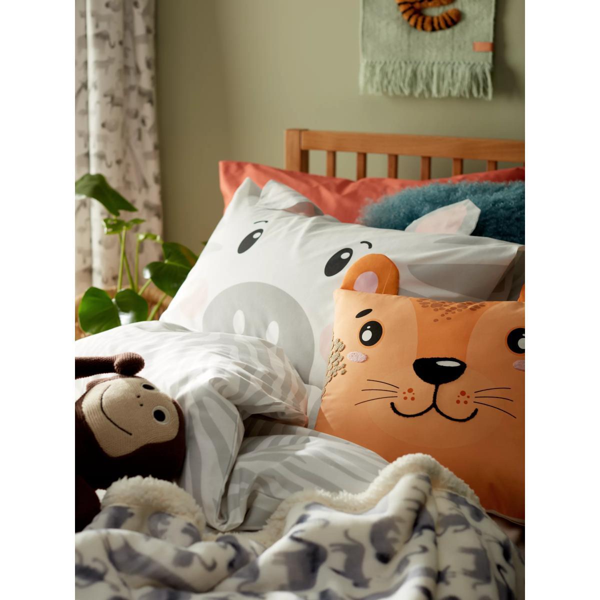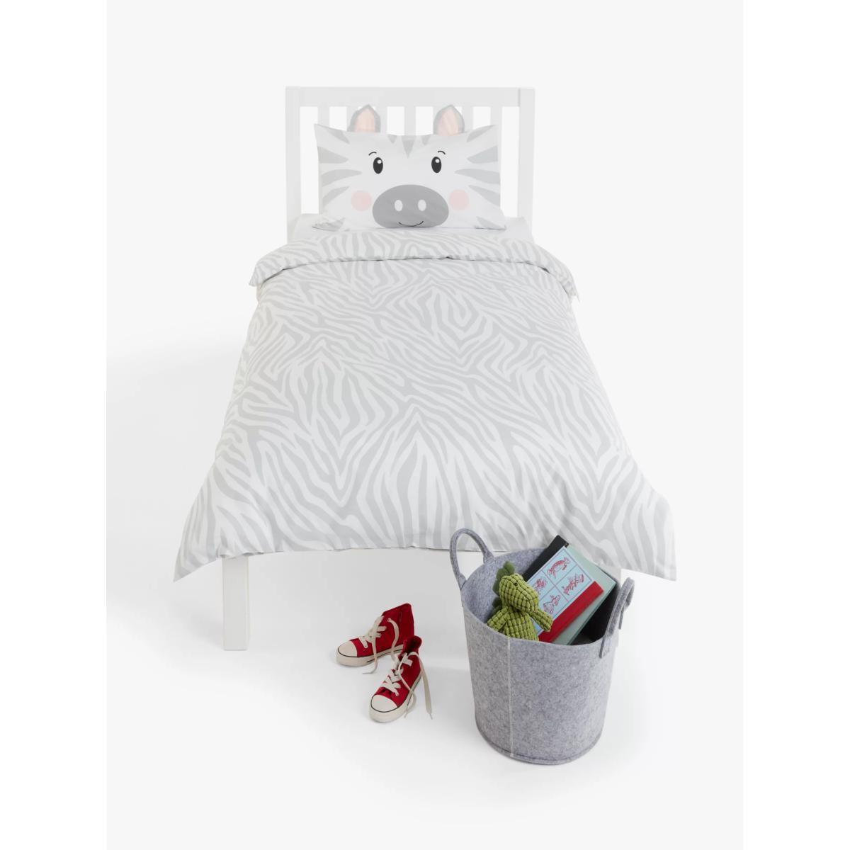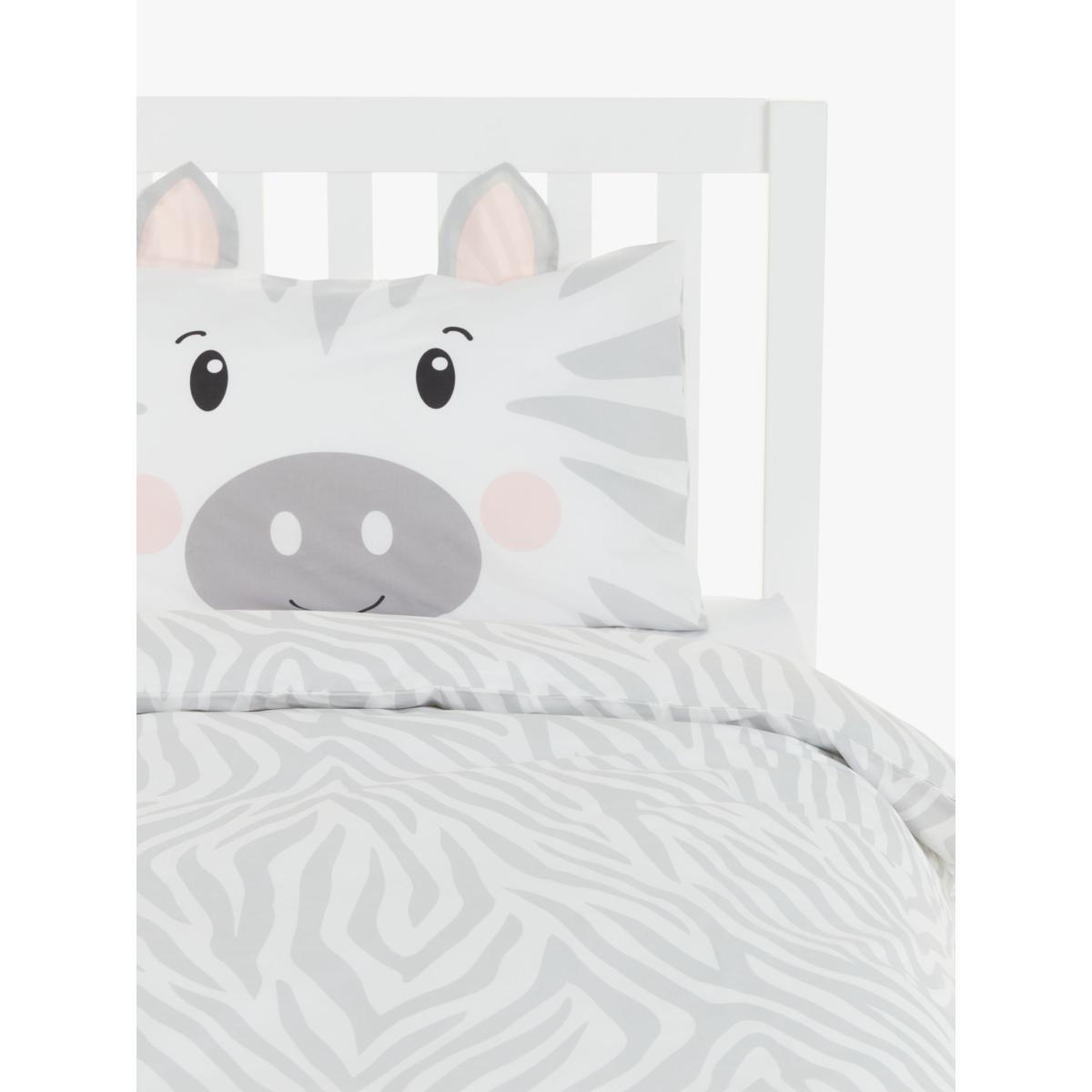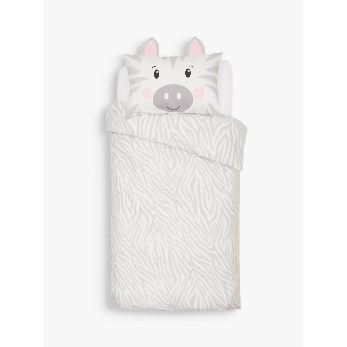 Made from high-quality polycotton, this single bedding set features a zebra print on both sides. For a playful detail, we've added zebra-shaped ears to the pillowcase, along with a printed face for a sweet finish. More Sustainably Sourced The cotton in this bedding has been produced in line with the Better Cotton Initiative (BCI). This is a not-for-profit organisation which exists to ‘make global cotton production better for the people who produce it, better for the environment it grows in, and better for the sector’s future. BCI works with partners around the world such as WWF, Solidaridad and Cotton Connect to train farmers to produce cotton more sustainably. By buying cotton products from John Lewis & Partners, you’re supporting the training of these farmers to use water efficiently, care for the health of the soil and natural habitats, reduce the use of the most harmful chemicals and apply principles of fair and decent work. We're cutting down on plastic In our quest to reduce single-use plastic waste, this bedding set comes in a matching zebra print fabric bag.