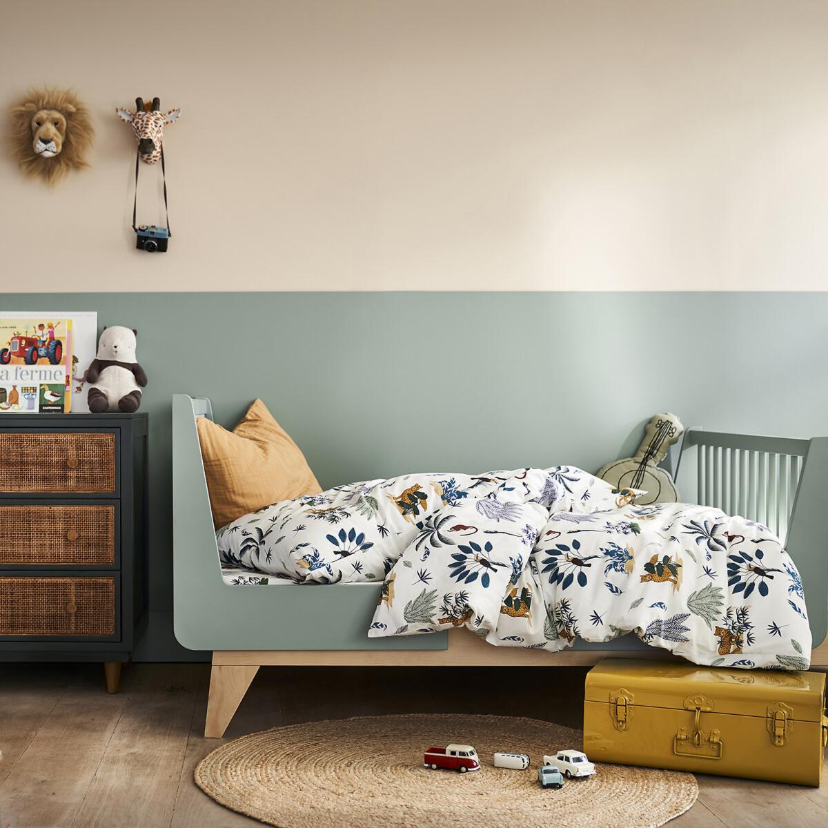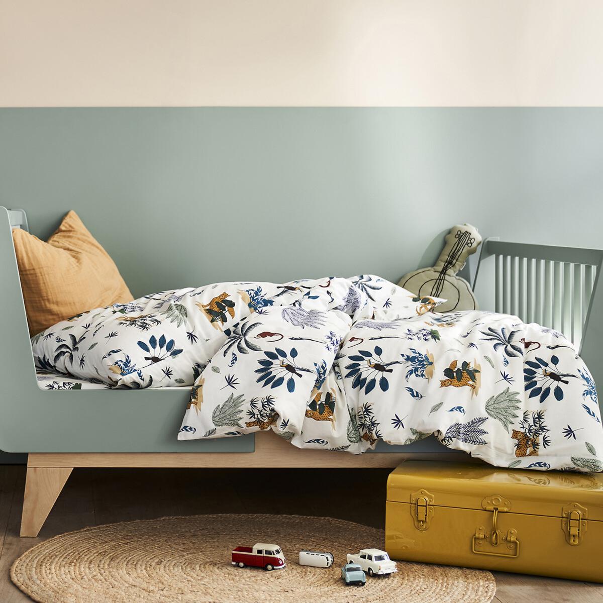 Head off to dreamland, under palm trees, with tigers and monkeys... The Little Jungle bed linen is perfect to let their imagination run wild.. Organic cotton is super soft against the skin. Designed by La Redoute Interiors.