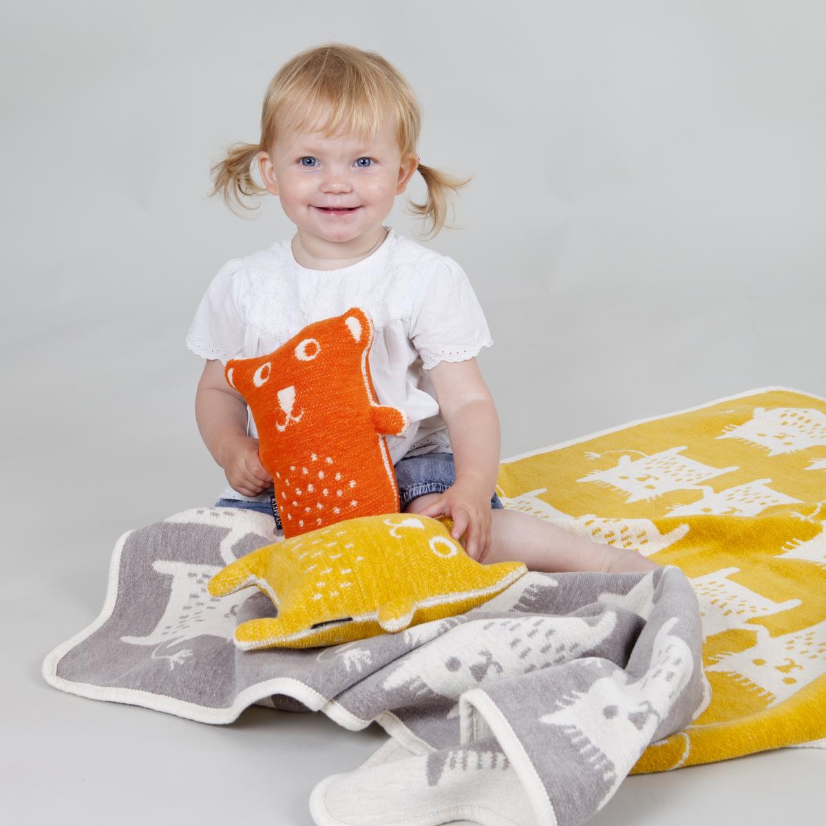 He colorful Little me chenille blanket from Klippans Yllefabrik is designed by the studio Edholm Ullenius. Sissa Edholm and Lisa Ullenius imaginative illustrations feel very happy and fits perfect on a baby blanket. The blanket is made of organic cotton that is really soft and comfy for the baby. Perfect for the pram or bed!.