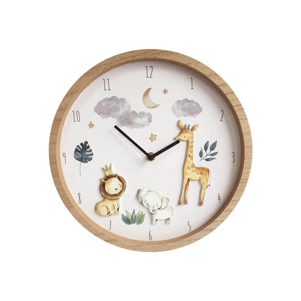 Wooden Children's Wall Clock. Cute Children's Wooden Wall Clock With a Lion, Elephant And Giraffe Design. Perfect For Children's Bedrooms.
