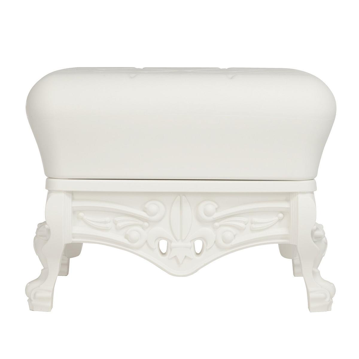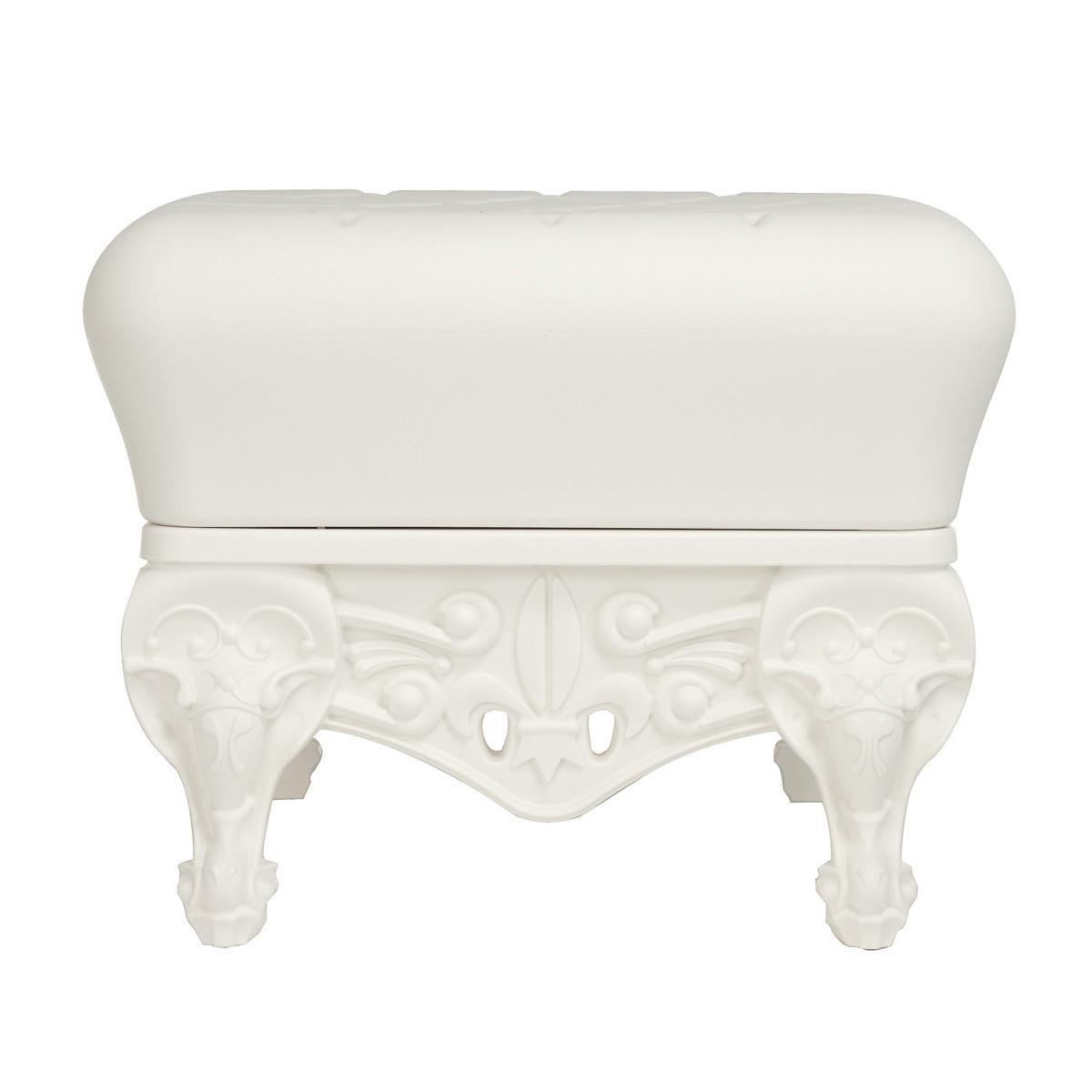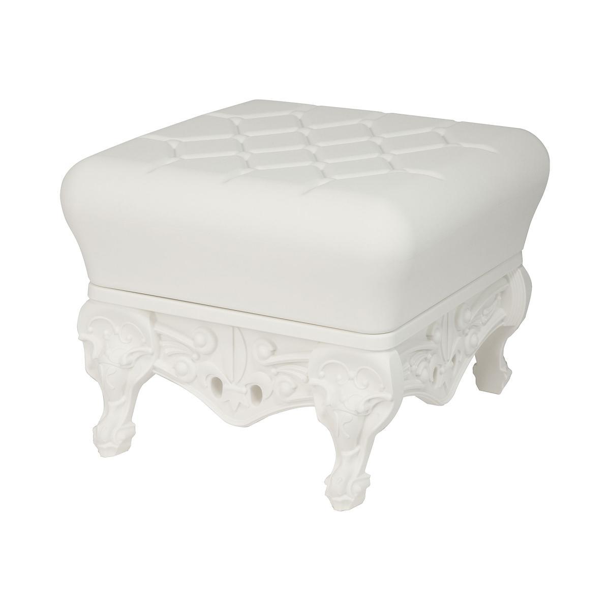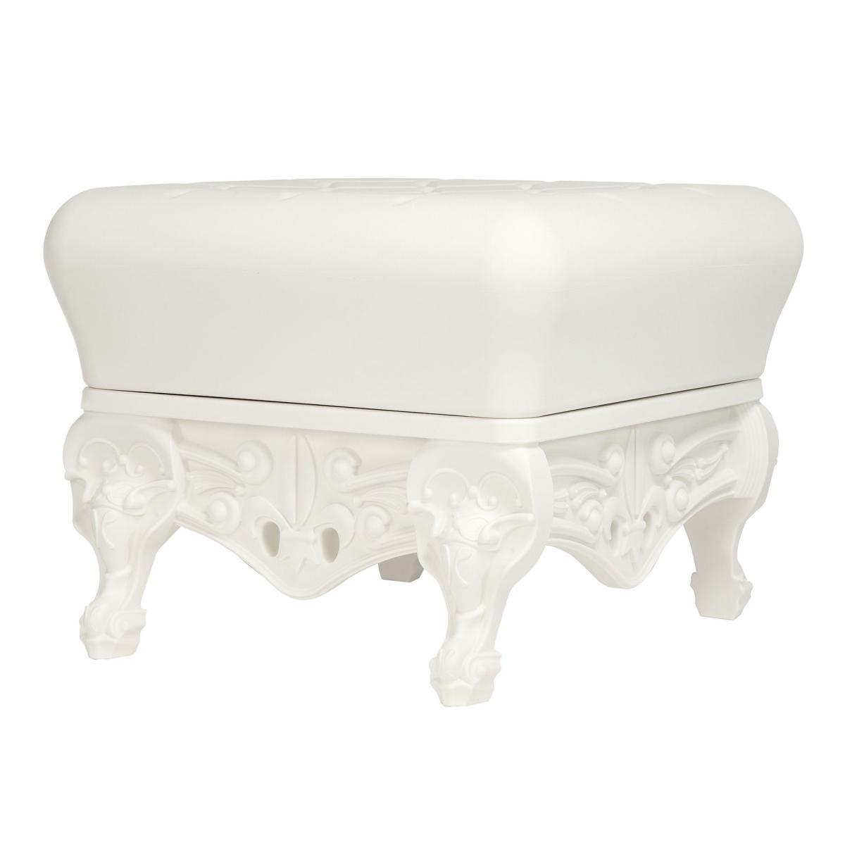 The Little Prince of Love is the perfect pouf that complements the Queen of Love seat that is part of the original range of the Design of Love Collection recently presented by SLIDE and characterised with details and finishings that are rococò style. Thanks to its modular structure the seat and the legs are two different parts, so there is a possibility of choosing a combination of colours, allowing more creativity for a unique furnishing. Like all the SLIDE collection, the Little Prince of Love is realised in recyclable polyethylene, UV stabilised with rotational moulding technology. Weather resistant and easy to clean.