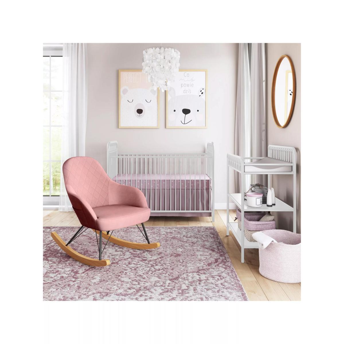 I really like this nursery rocker because of its soft, inviting colour and modern design. It works particularly well in contemporary or Scandi-style interiors, adding a subtle touch of colour without overwhelming the space. The quilted upholstery lends it a bit of texture, making it comfy and visually interesting. Practically, I recommend pairing it with neutral or pastel accessories, like cosy cushions or a soft throw, to create a calming environment for both parent and baby. To keep it feeling fresh, consider placing it near a simple side table for feeding essentials or a small lamp for night-time feeds. Its sleek lines and versatile style make it a great focal point in any nursery that aims for a chic, yet relaxed vibe.