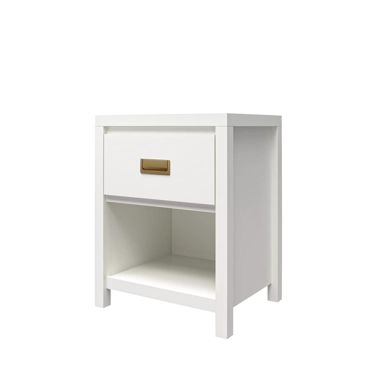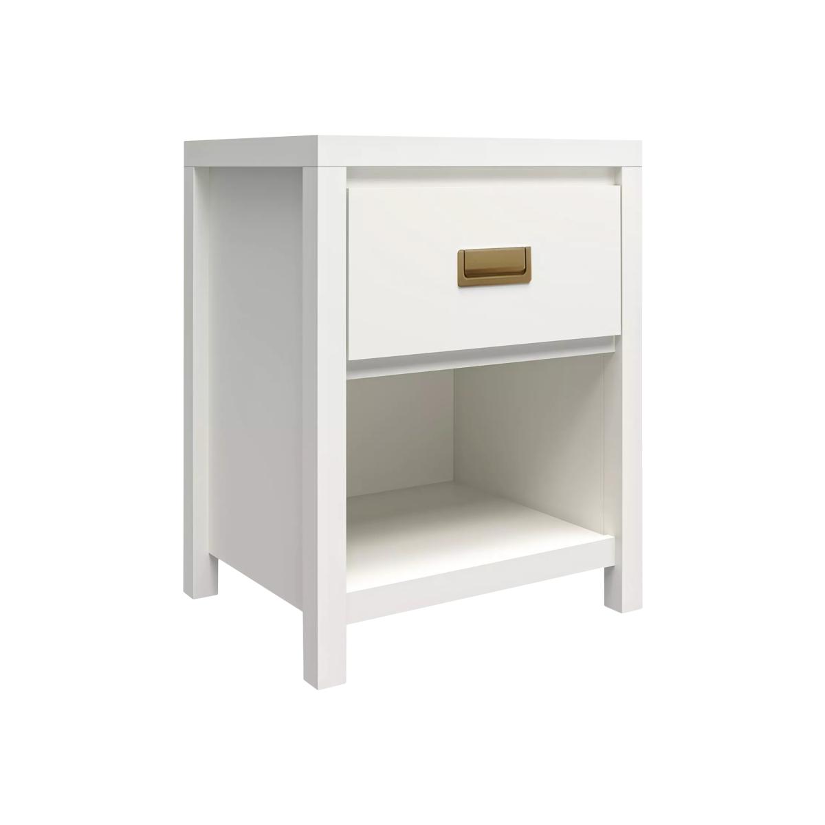 The Little Seeds Monarch Hill Haven bedside table has a timeless design and exquisite vintage gold drawer pulls. Inspired by the spirit of exploration, it stands ready to safeguard all your little adventurer's bedtime essentials. This charming piece of furniture offers ample storage space, with a single drawer and an open cubby, perfect for cradling those treasured books and mementoes.