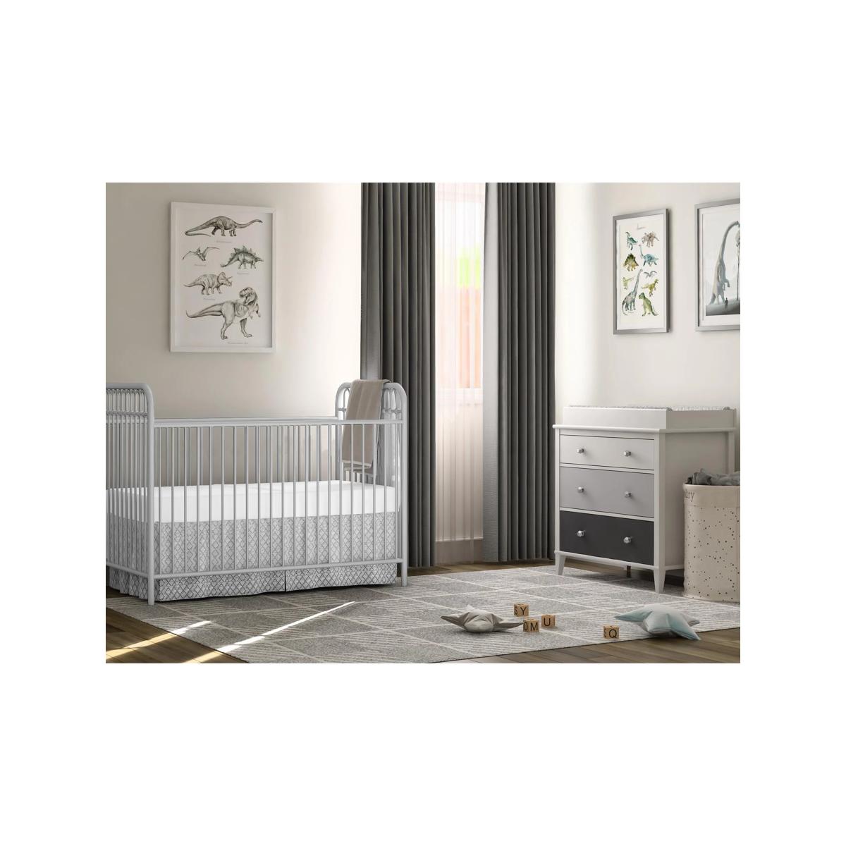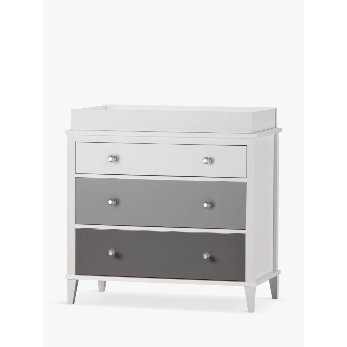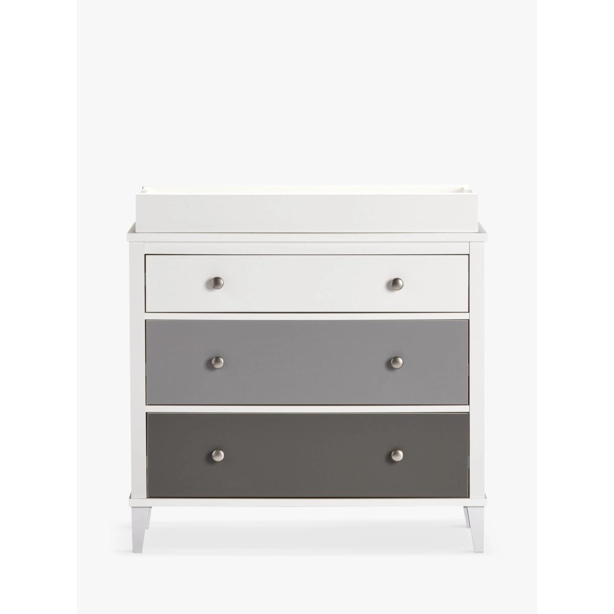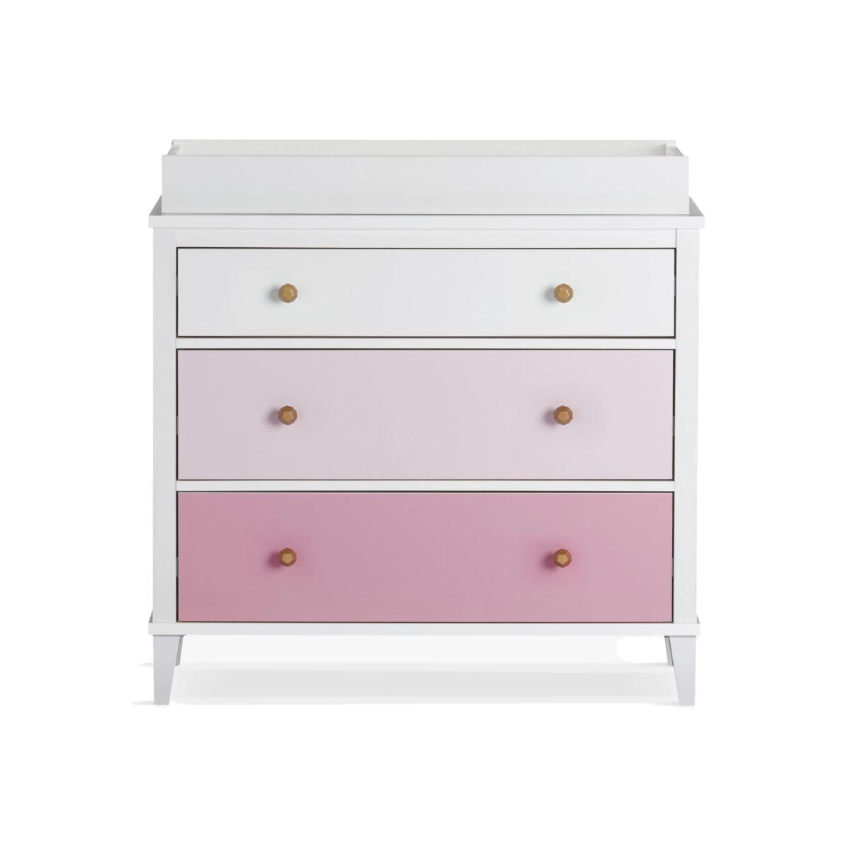 Keep your changing table for longer with the convertible Little Seeds Monarch Hill Poppy 3 Drawer Changing Table. Made of laminated particleboard, the classic chassis is accented by the ombre-styled drawer fronts for a fun look. Two sets of drawer knobs are included so you can customize the look of the Changing Table. The durable metal drawer slides feature built-in stops for safety. The changing table topper fits a standard-size changing pad (not included) and can be removed when your child outgrows it to convert the changing table into a youth dresser. Place all of your diapers, wipes, and lotions in the 3 spacious drawers to keep your changing essentials organized and out of sight.