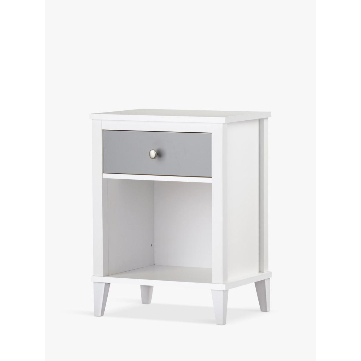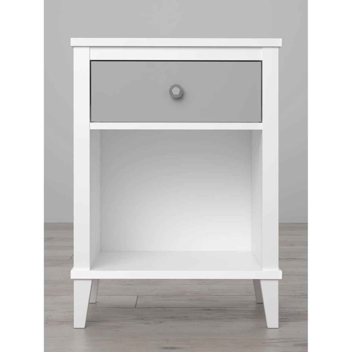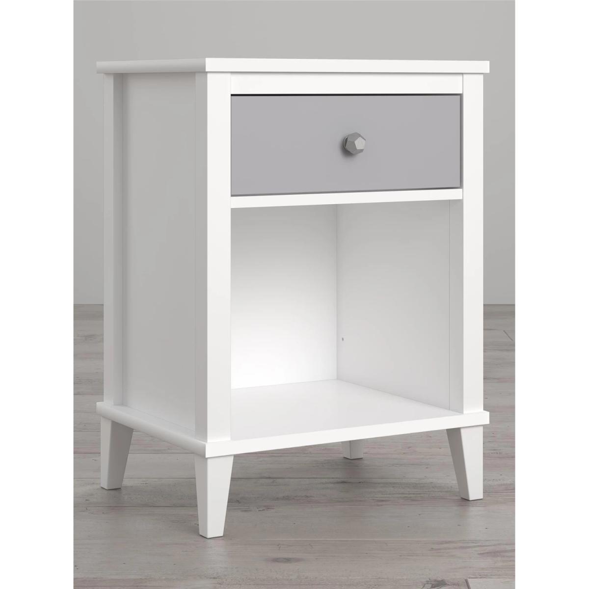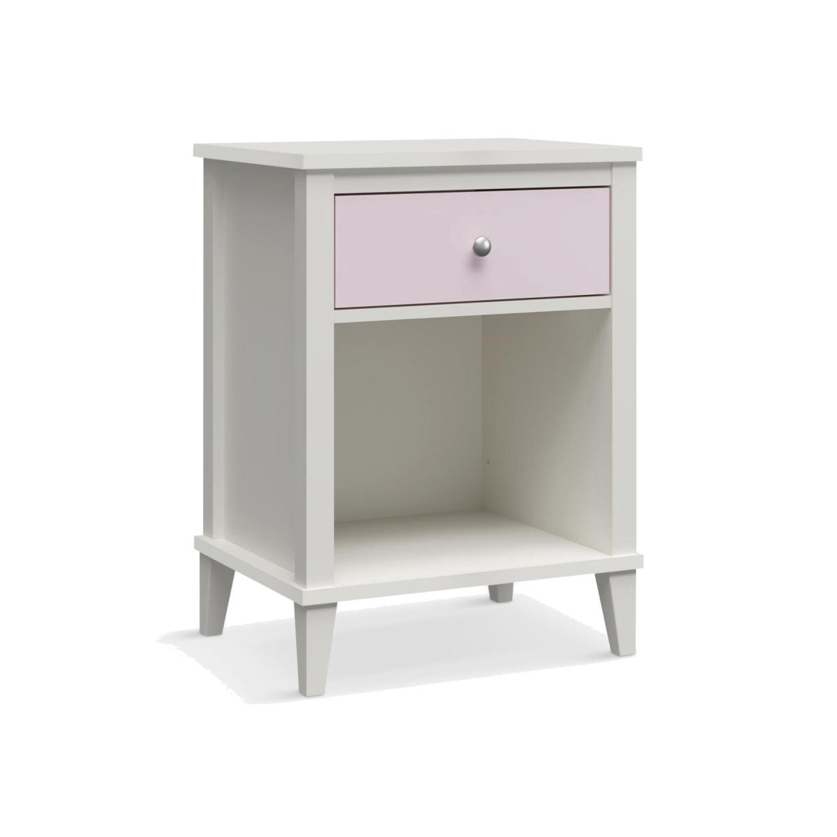 Have everything you need for bedtime in one place with the Little Seeds Monarch Hill Poppy Nightstand. Made of laminated particleboard, the classic chassis is accented by the coloured drawer front for a fun look. Two sets of drawer knobs are included so you can customize the look of the nightstand. The durable metal drawer slides feature built-in stops for safety. The drawer is a convenient spot to store smaller items like reading glasses and writing utensils. The nightstand ships flat to your door and requires assembly upon opening. Two adults are recommended to assemble.