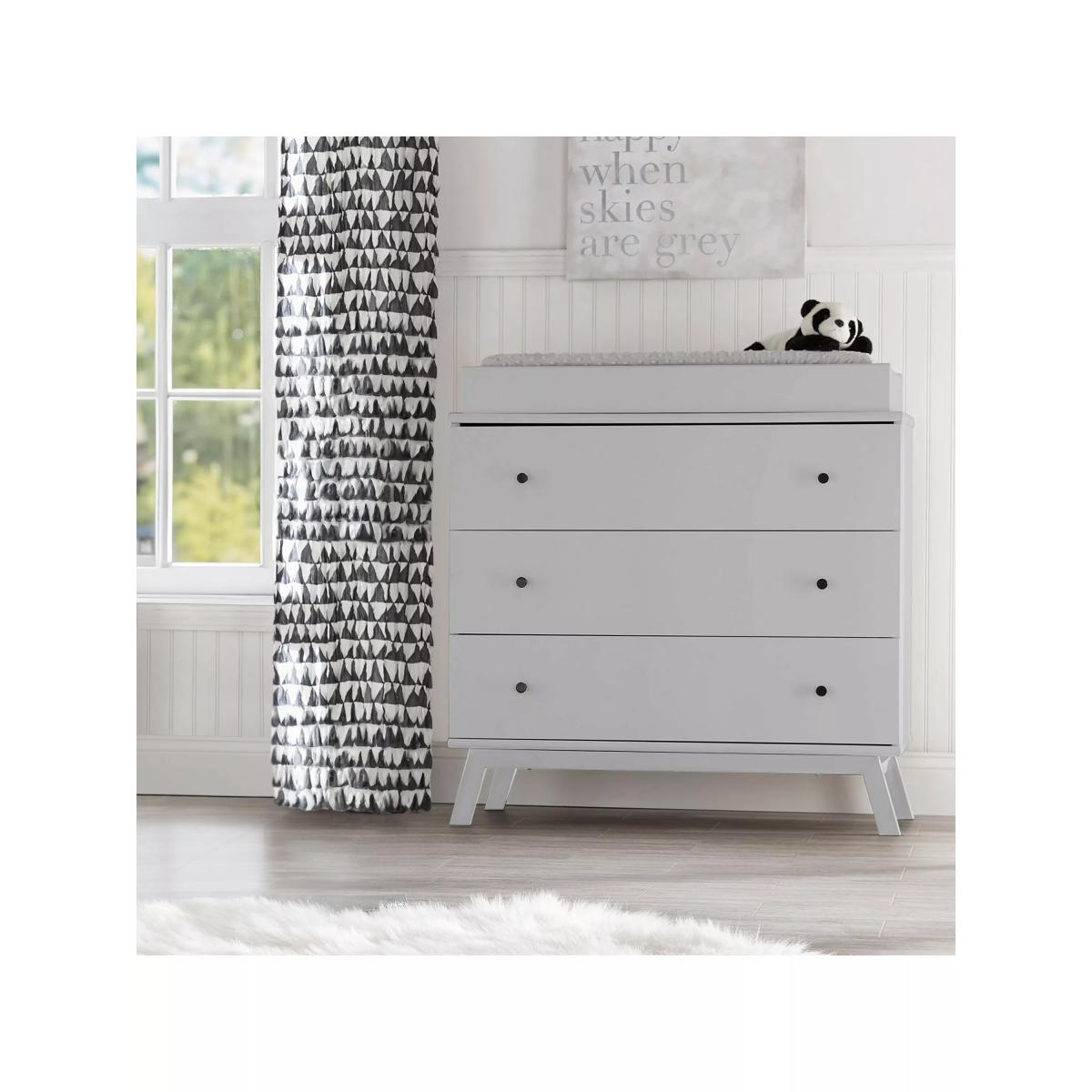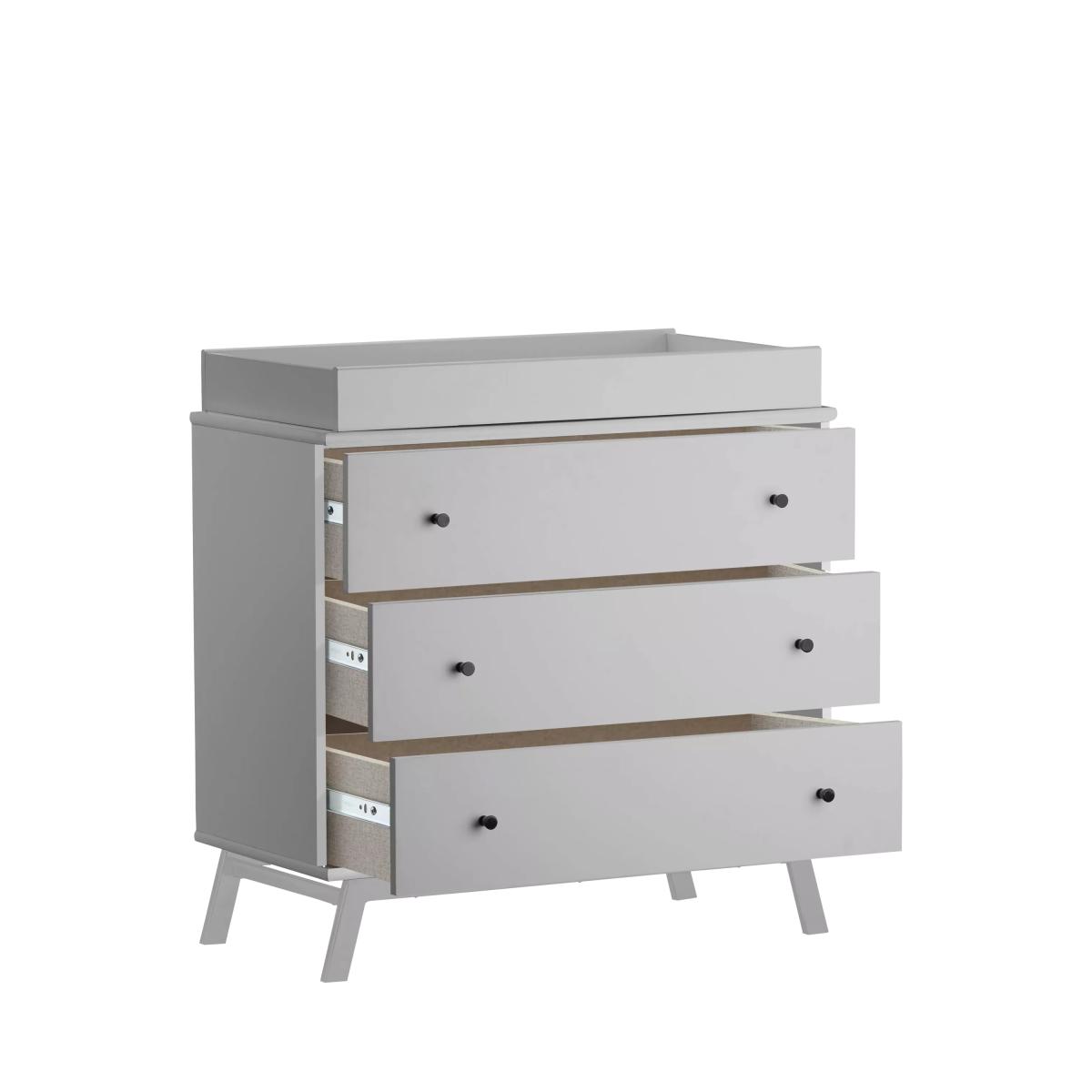 Add a contemporary feel to your child's bedroom or nursery with the Little Seeds Rowan Valley Lark Urban 3 Drawer Dresser. The chassis is made from laminated particleboard and benefits from durable metal drawer slides that last for years and are made with built-in stops for safety. Keep folded t-shirts, jeans, sweaters, and extra linens stored away in the 3 spacious drawers. Good to know: The dresser can be converted to a changing table by adding a standard topper (not supplied with the unit). Remove the Changing Table Topper when your child outgrows it to convert it back to a youth dresser.
