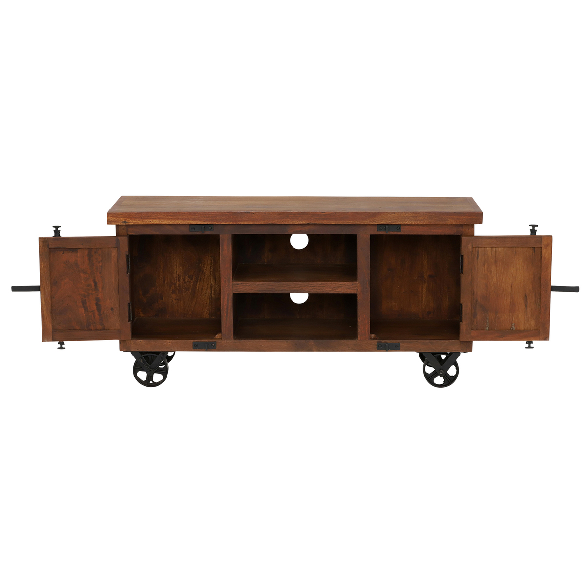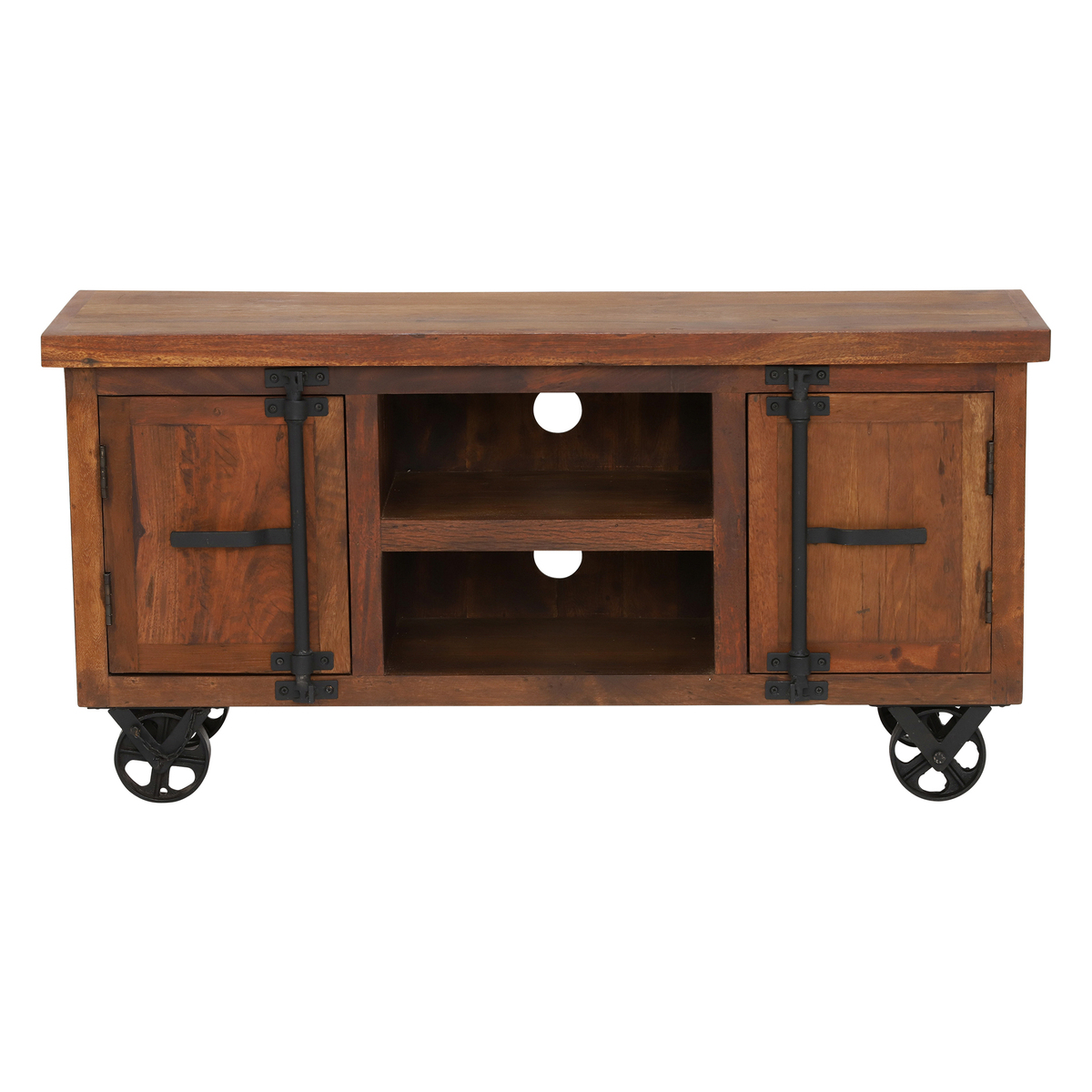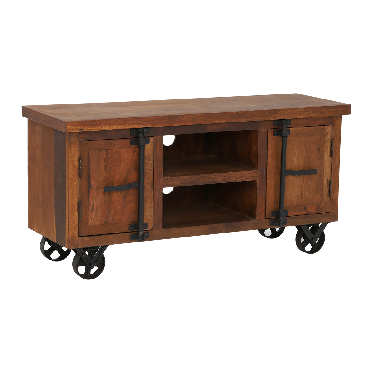 Little Tree Furniture Hyatt Reclaimed Wood TV Unit on Wheels, Dark Finish