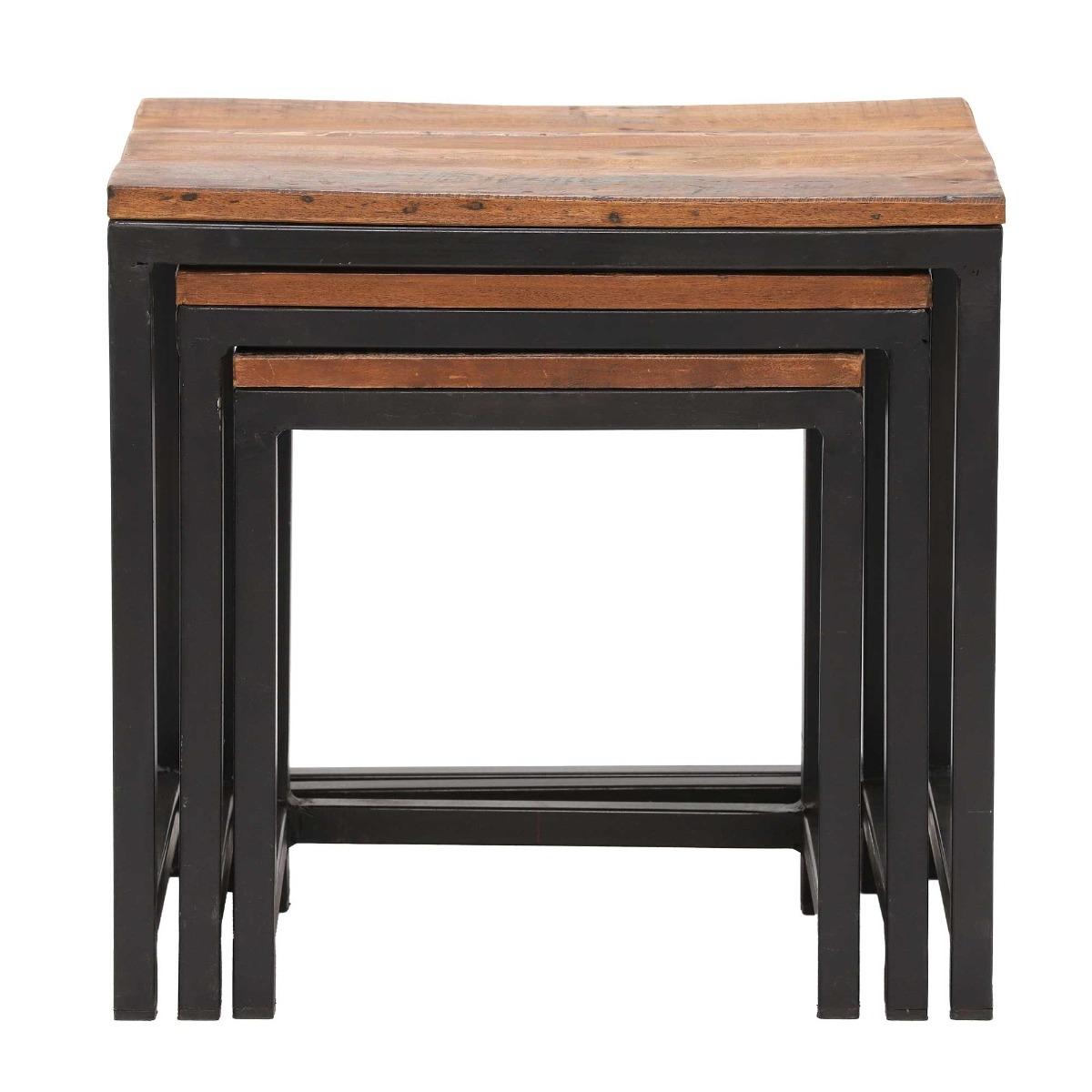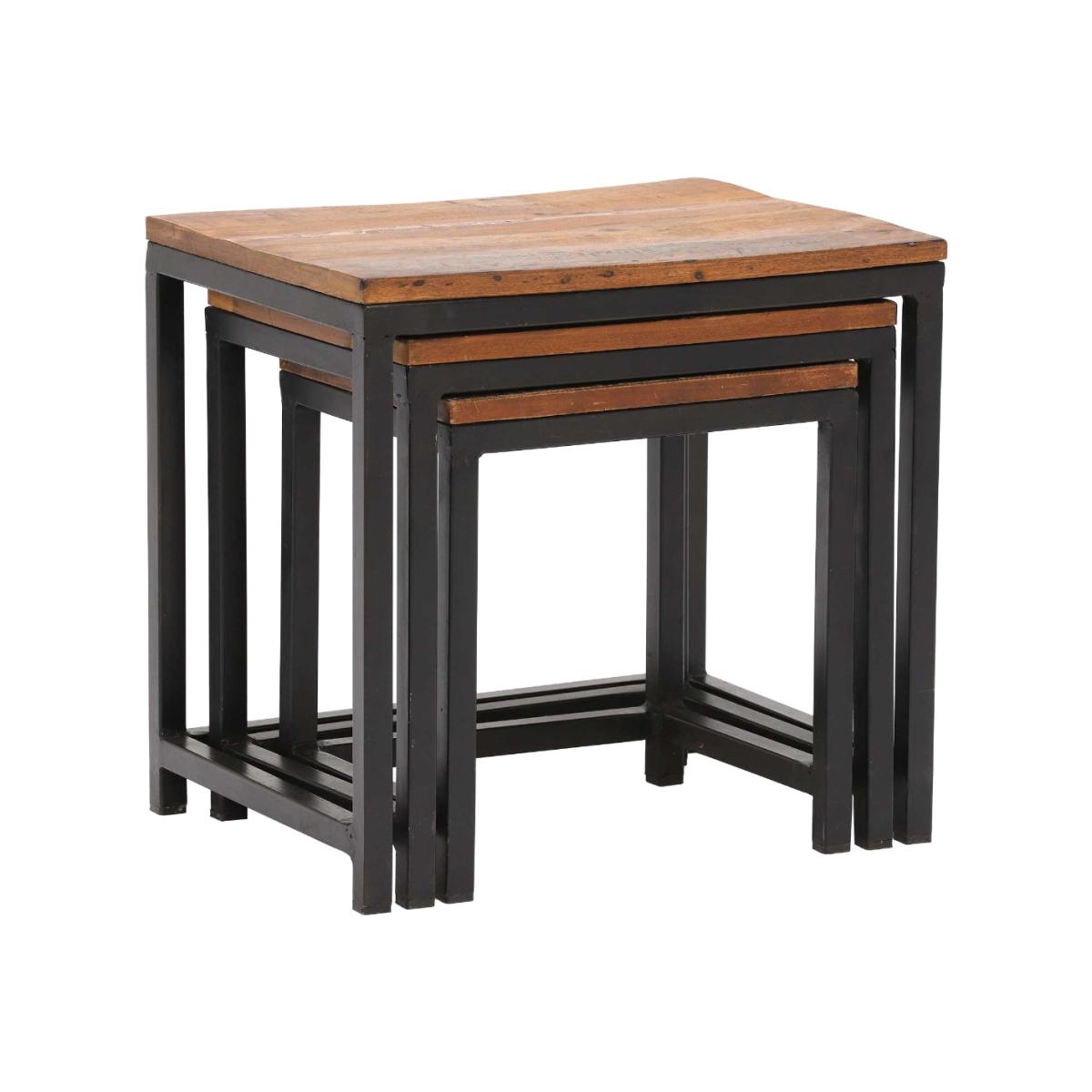 Design. The Mary Rose Nest of Tables has been handcrafted from recycled fishing boat timber, some of which dates back 150 years and still bears its natural imperfections and colourings. Filled with character, its reclaimed wood surface sits atop welded cast iron legs that add industrial edge to its rustic design. A set of three, these tables sit neatly beneath one another to provide a convenient space saving solution for your living room. Little Tree is a British company whose concept was born in India,. Read more.