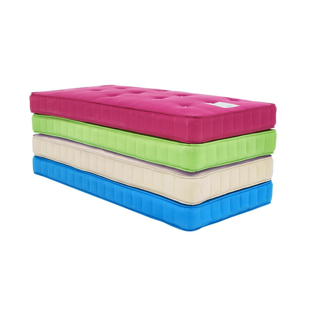 Supportive, wonderfully comfortable children’s mattress. Soft, luxurious-feel white fibre filling. 1000 pocket springs for comfort and support. Covered in hardwearing twil fabric. In a choice of bright, fun colours or a neutral shade. Suitable for all styles of bunk and trundle beds. Made in the UK, a Furniture Village exclusive. Did you know?:. The mattress should be aired for four hours after delivery to freshen and remove any aroma from storage. It may take time for your mattress to attain its full size once the springs have settled to the correct position. This is due to the mattress being upright during transit. Settlement of fillings and indentations caused by body weight compressing the fillings are natural and not considered defects. This can be minimised by regular rotating (unless yours is a dual tension mattress).
