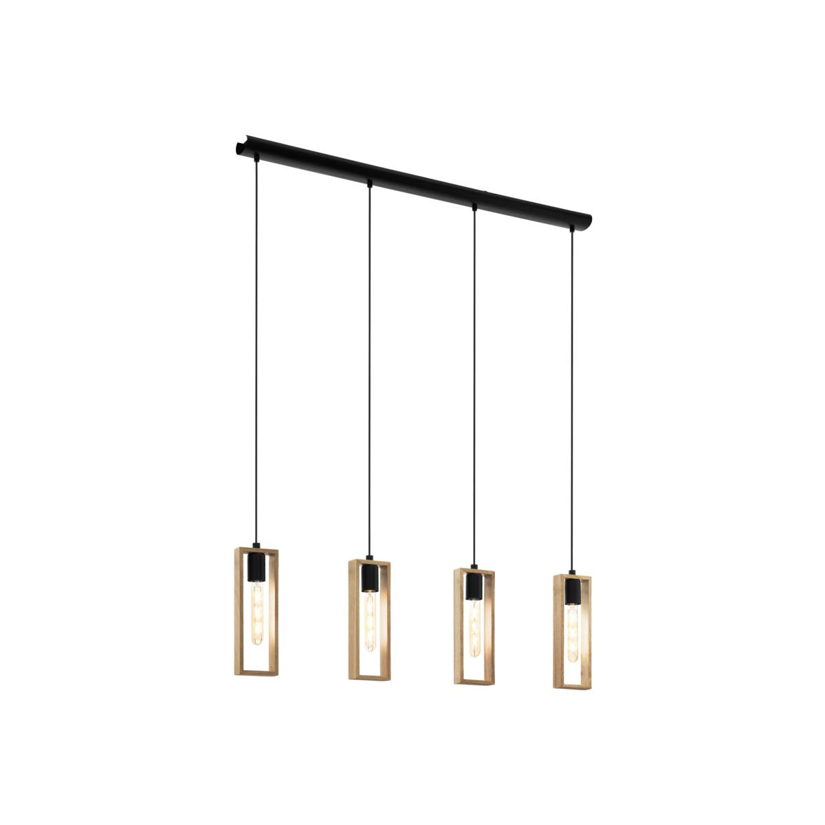 Rustic wooden pendant ceiling light bar with a modern twist. A modern and trendsetting statement piece, the Littleton ceiling light bar is a fantastic fitting by Eglo. A unique styling, this ceiling light boasts suspended wooden rectangles which frame exposed bulb pendants, finished with black detailing. A minimalist fitting, perfect adding the wow factor into any room in your home above kitchen and dining rooms. Pair this light with our 4w LED Vintage bulbs for a rustic and industrial glow to complement the exposed bulb styling.