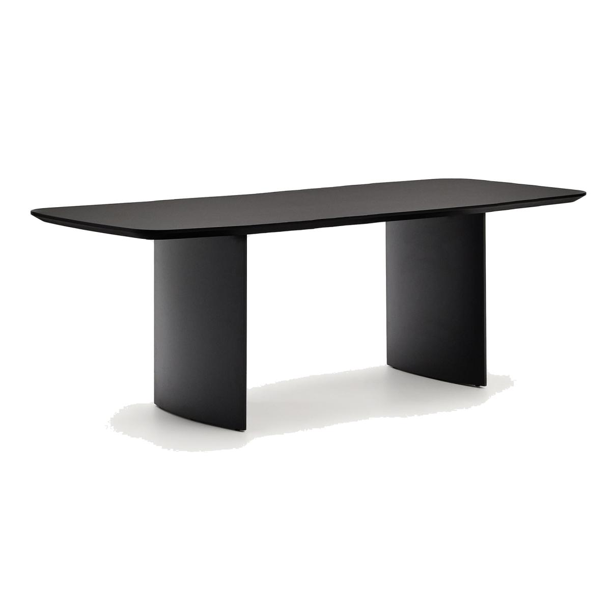 I’m a big fan of the black Litto table for its sleek silhouette and durable lacquered finish - it feels solid without dominating a space. Its clean lines work equally well in a contemporary open-plan living area or a pared-back Scandi dining room, especially when paired with mix-and-match chairs in wood or metal. Styling-wise, keep hard surfaces soft with a textured runner or a cluster of ceramic vases down the centre. Add warmth by positioning it on a natural-fibre rug and punctuate with low, leafy greenery rather than tall blooms, so you maintain those unobstructed sightlines that make the shape really sing.