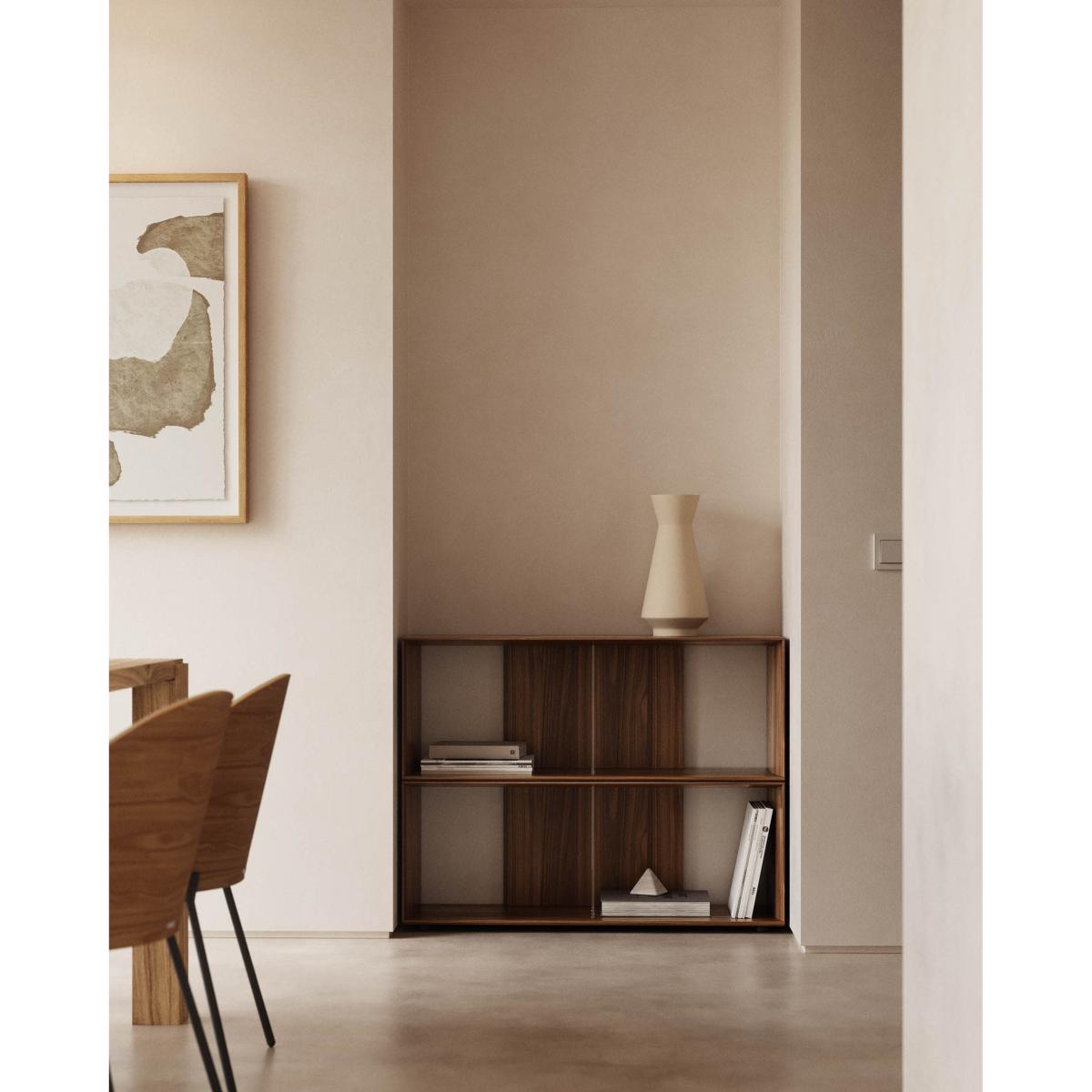Litto set of 2 modular shelving units in walnut wood veneer, 101 x 76 cm