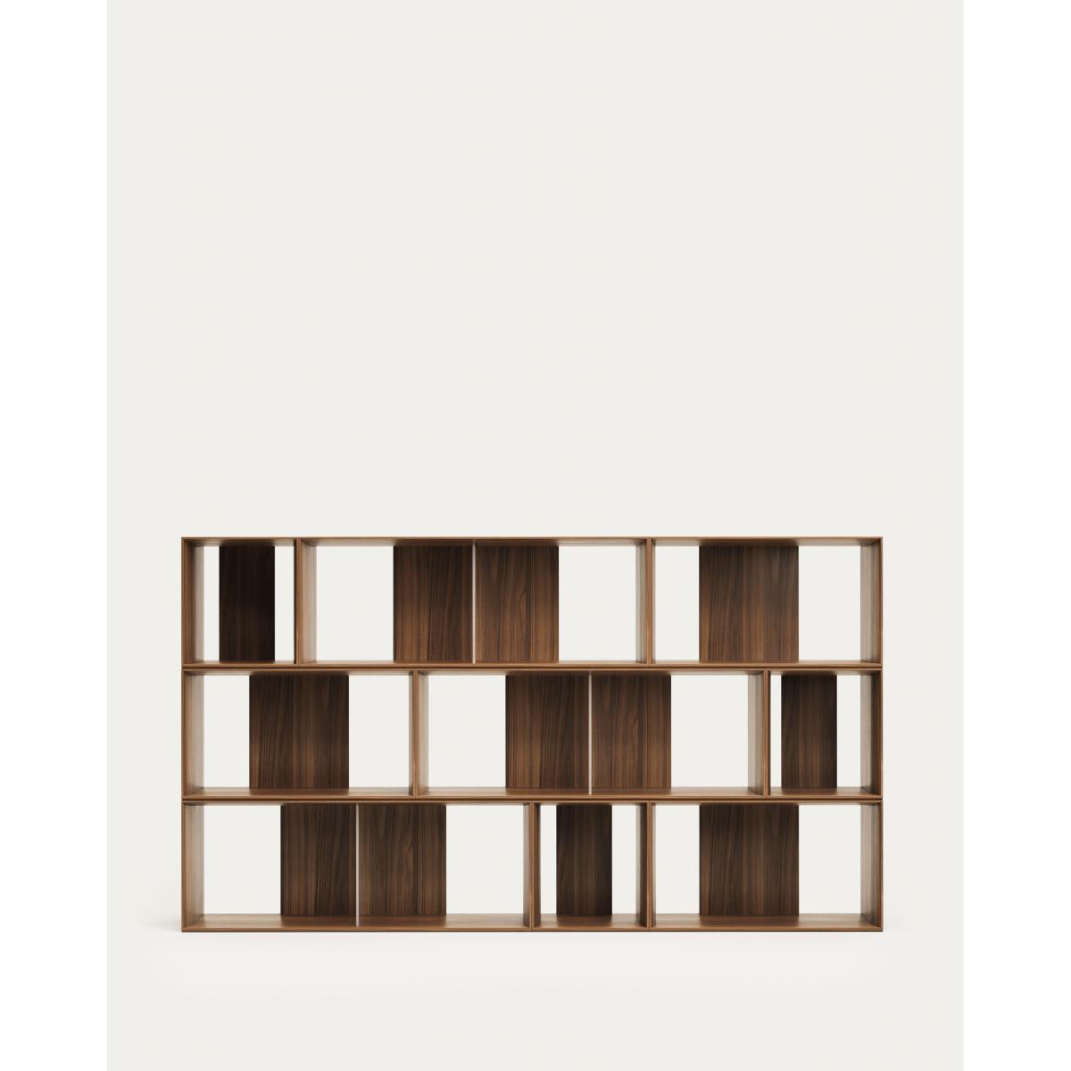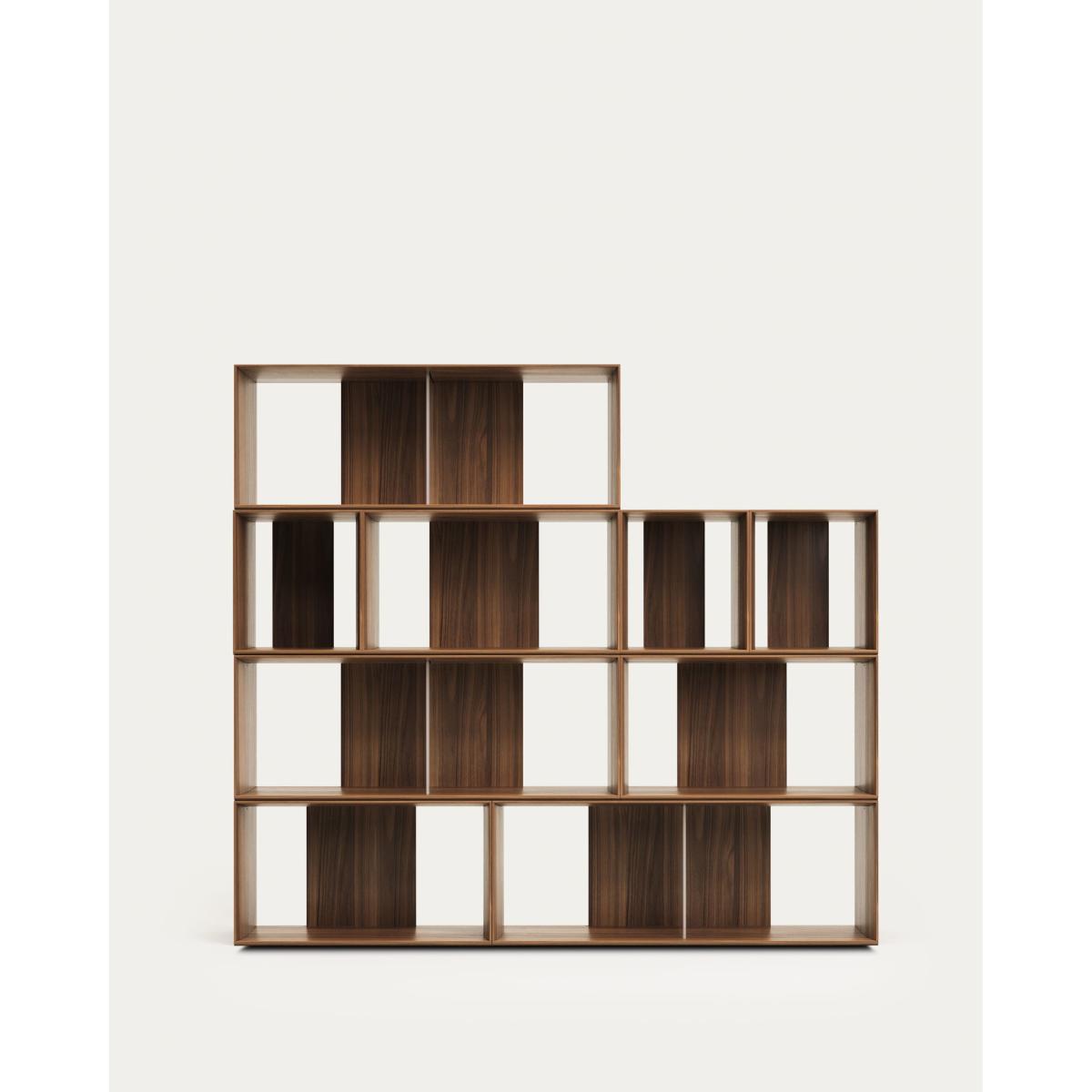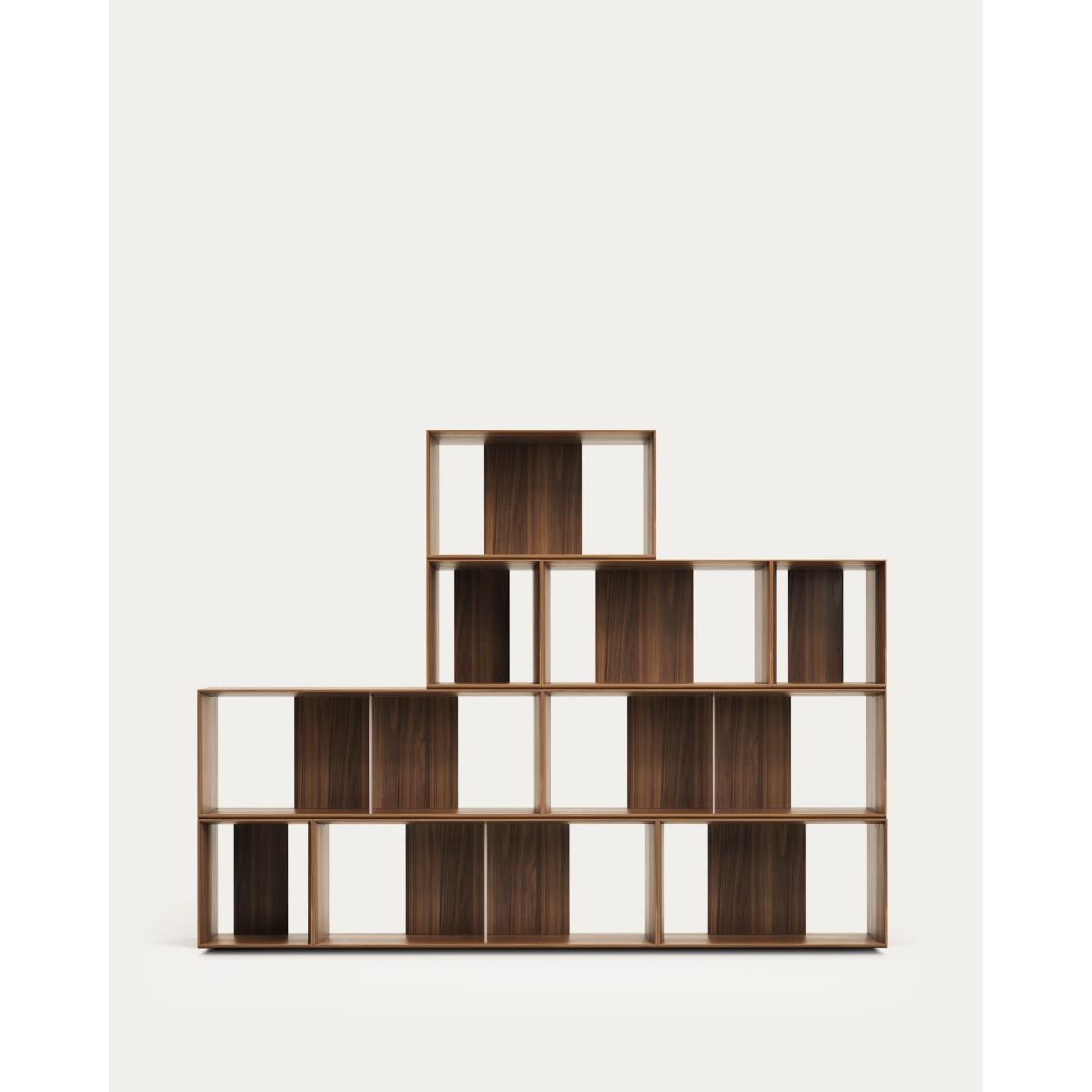Litto set of 9 modular shelving units in walnut wood veneer, 202 x 114 cm