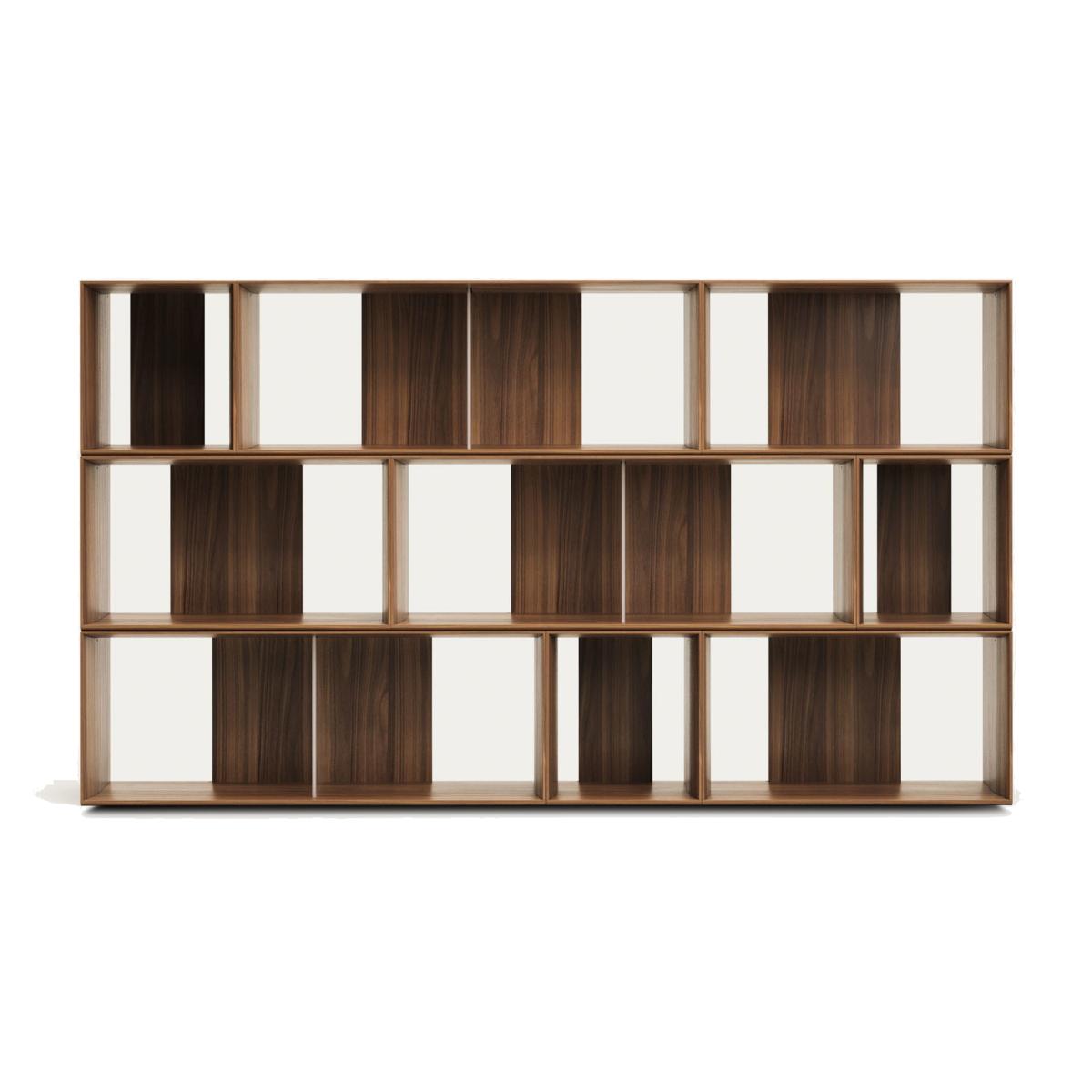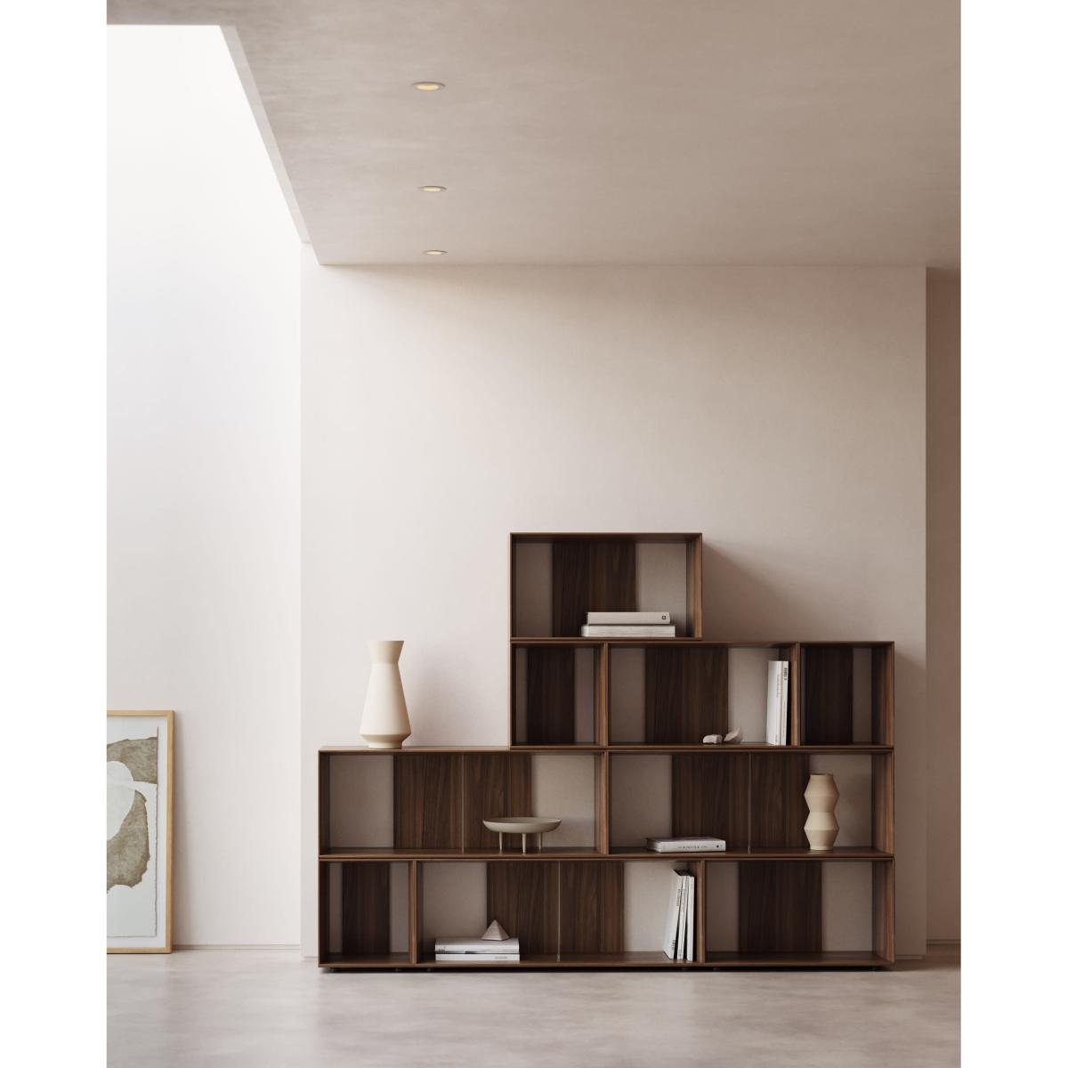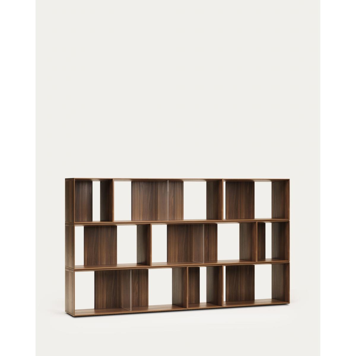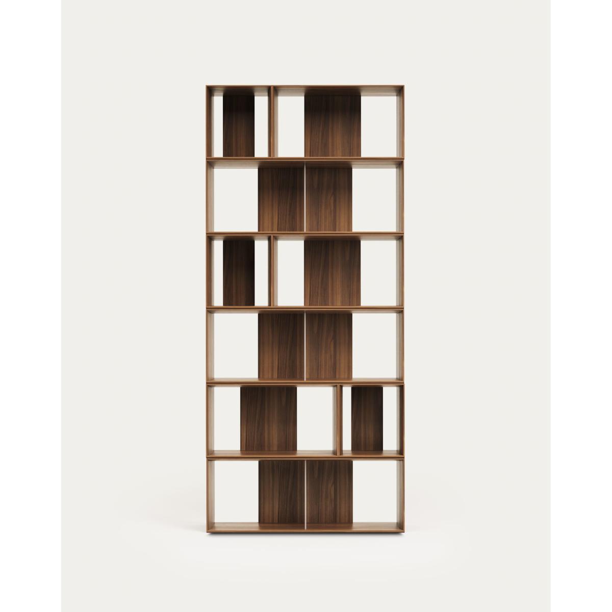 Litto set of 9 modular shelving units in walnut wood veneer, 202 x 114 cm