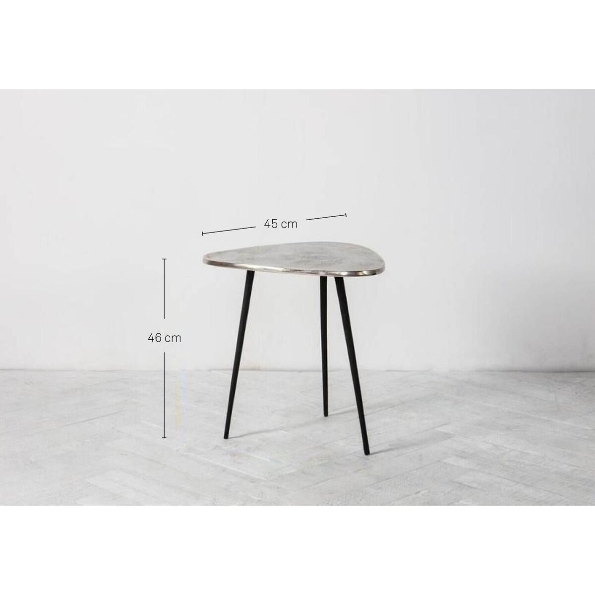 I love this little side table for its sleek, modern appeal and versatile design. Its metallic finish adds a touch of sophistication, making it suitable for both contemporary and minimalist interiors. It works particularly well in urban apartments or interiors with a neutral palette, where it can add subtle shine without overpowering the space. Practical tips include styling it with a small lamp, a decorative dish, or a plant to keep it functional yet understated. Its small size makes it ideal next to a armchair or sofa, providing a handy surface without cluttering the room.
