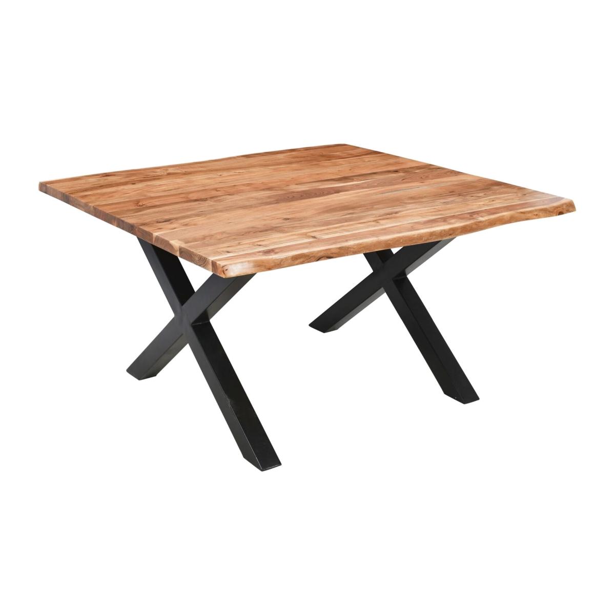Enhance your product range with the Live Edge Collection Large Square Dining Table, where rustic elegance meets modern design. This table features a stunning live edge, preserving the natural beauty and unique grain of solid Acacia wood. Standing on sturdy black powder-coated steel legs, it guarantees durability and style. Measuring 78 cm (H) x 150 cm (W) x 150 cm (D), it comfortably seats 8 people. Part of the Live Edge Collection, its perfect for customers seeking a standout, high-quality dining piece.