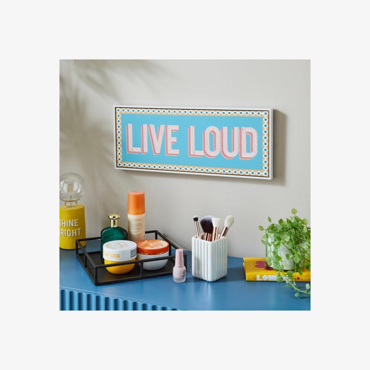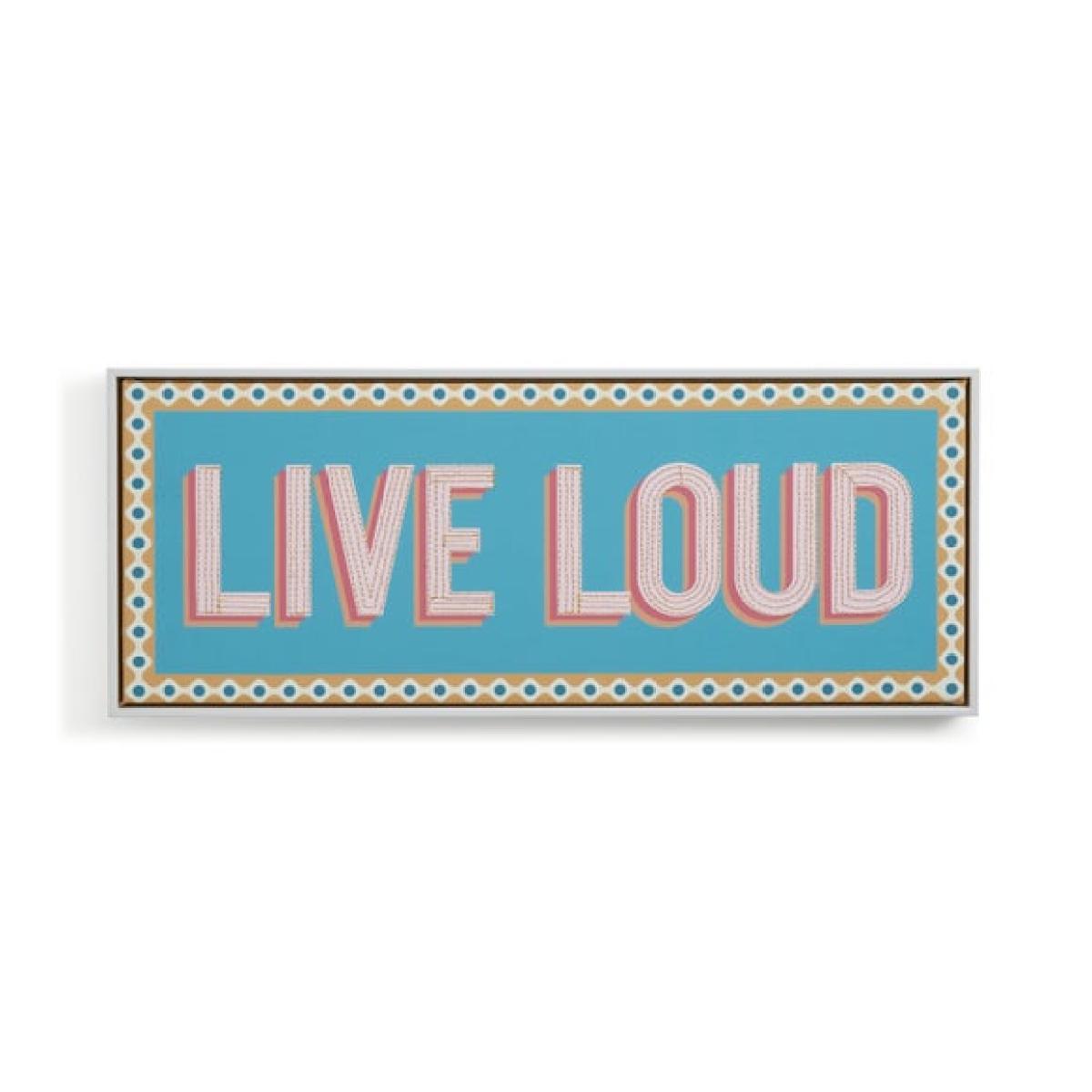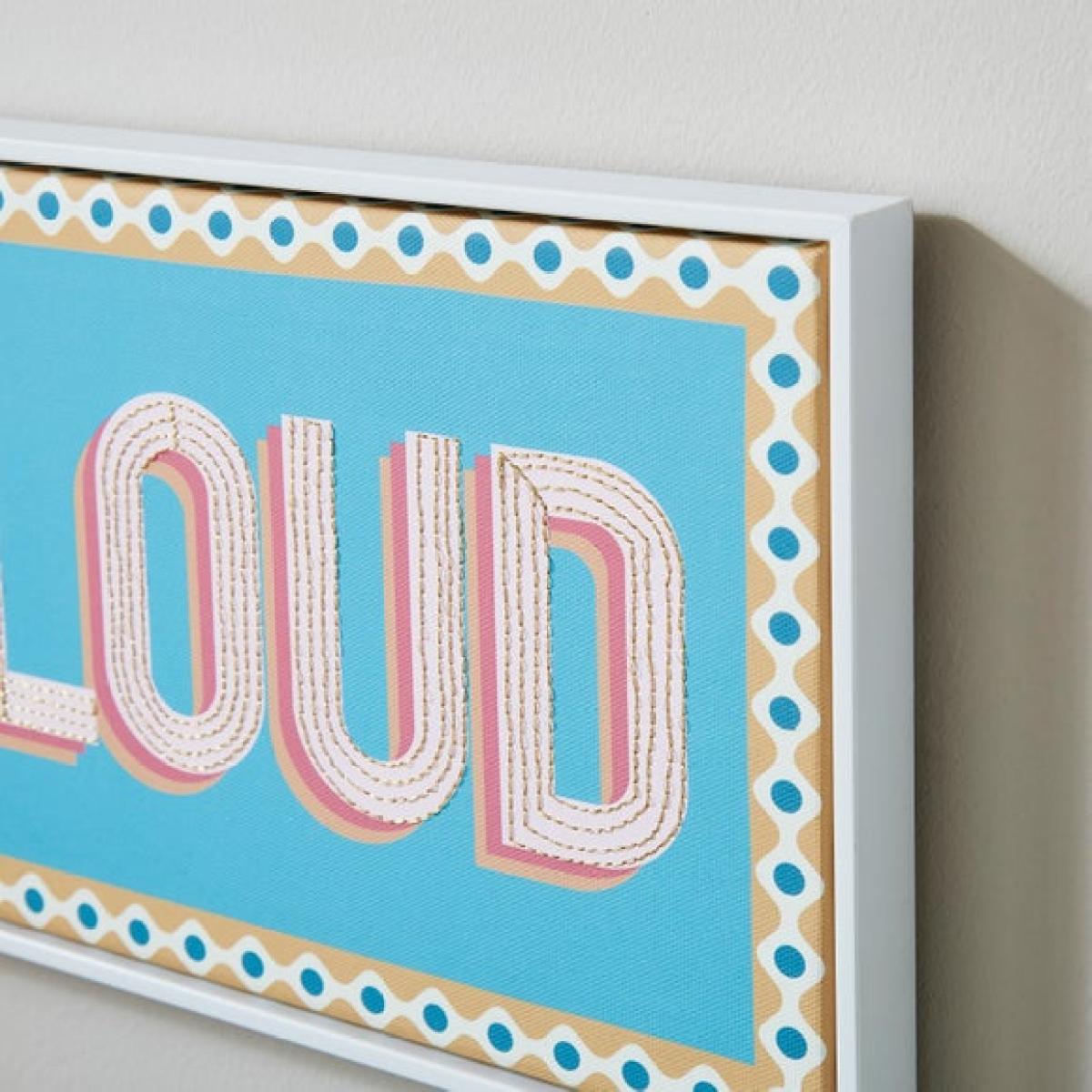 * Bold and bright * Embroidered lettering * Simple white frame Bold and bright, this embroidered wall art features pink lettering set against a vivid blue background for maximum impact. A patterned border adds a playful touch, bringing extra detail to the design. Textured stitching gives it a tactile, hand-finished feel that stands out on any wall, and it's framed and ready to hang in a simple white frame. It’s easy to style in bedrooms, studios or creative spaces, and is a fun and uplifting piece that celebrates confidence and personality. Ideal for adding colour and character to modern interiors.