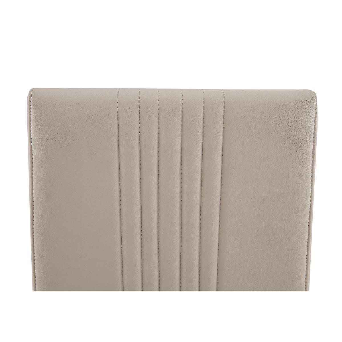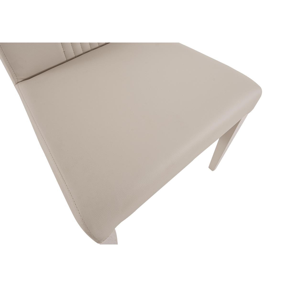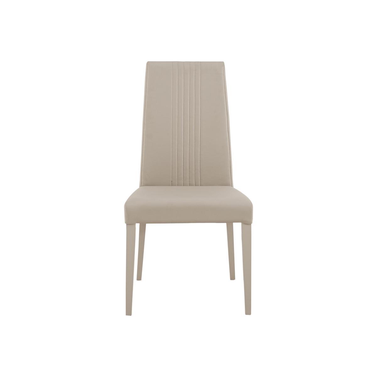 Glamorous pearl coloured faux leather dining chair with a high back, lacquered legs and stylish vertical feature stitching. Complements the ALF Livia dining tables. High-end style, great value price. Why you'll love it. Glamorous modern dining chair. Cushioned, upholstered seat and back. In soft, pearl coloured faux leather. Chair back features attractive vertical stitching. Perfectly complements the ALF Livia dining tables. The legs have a high-gloss finish in warm pearl. Legs finished with a Six coats of lacquer. What you need to know. Faux leather is water-resistant and easy to clean. Legs have a pearl coloured high gloss finish. The lacquering process is labour and time intensive, with multiple layers of lacquer applied and dried under UV light, for a clean finish that is highly durable. Hairline marks are a natural feature of the chair legs’ high gloss finish. Polyurethane and like surfaces can reveal the polishing process in the form of small scratches. Avoid abrasive cleaners and direct sunlight. Wipe clean with a damp cloth and dry with a soft duster. Be sure to tighten the leg bolts every three to four months. For more advice, see our Dining Care Guide. Part of the extensive ALF Livia dining range of dining sets and occasional furniture.