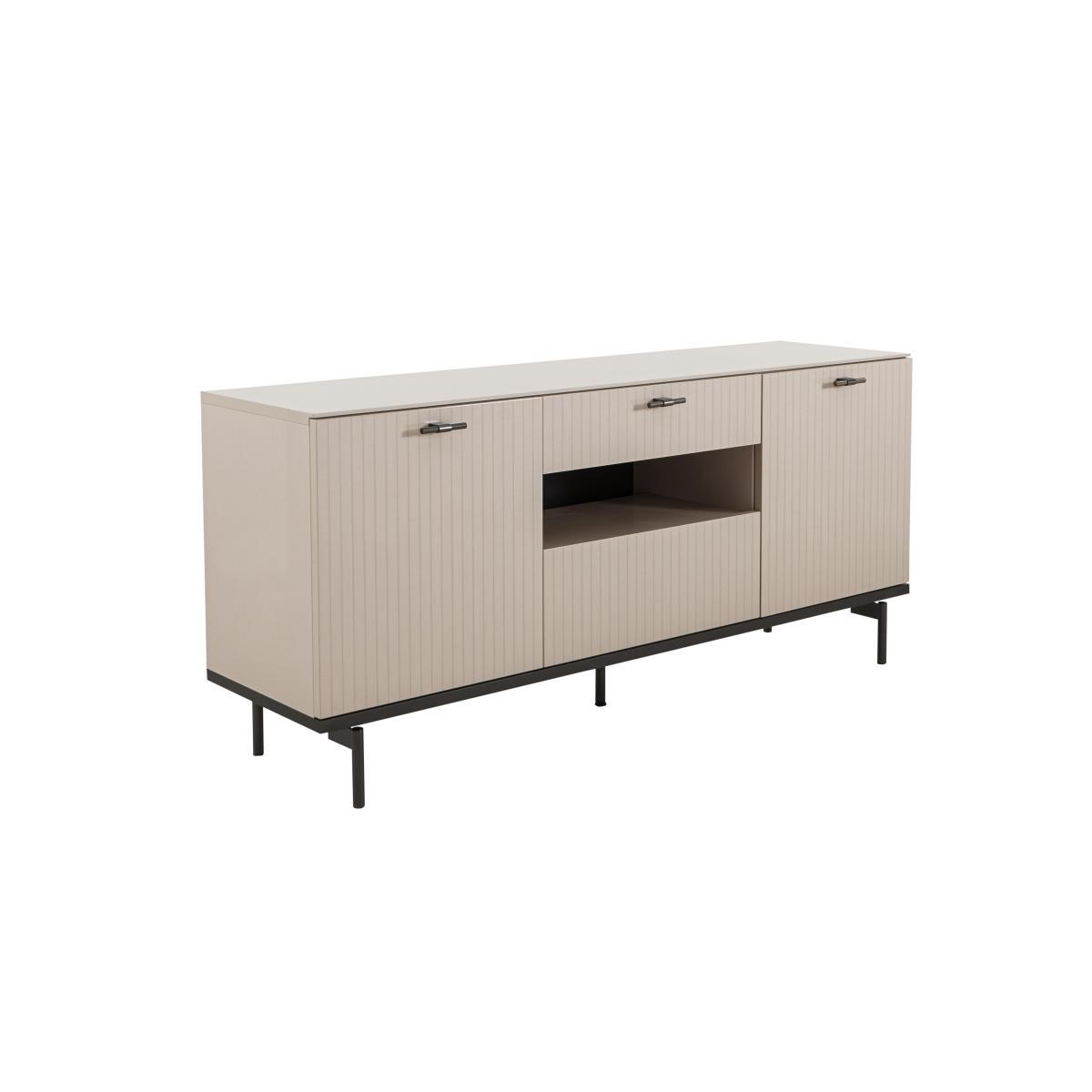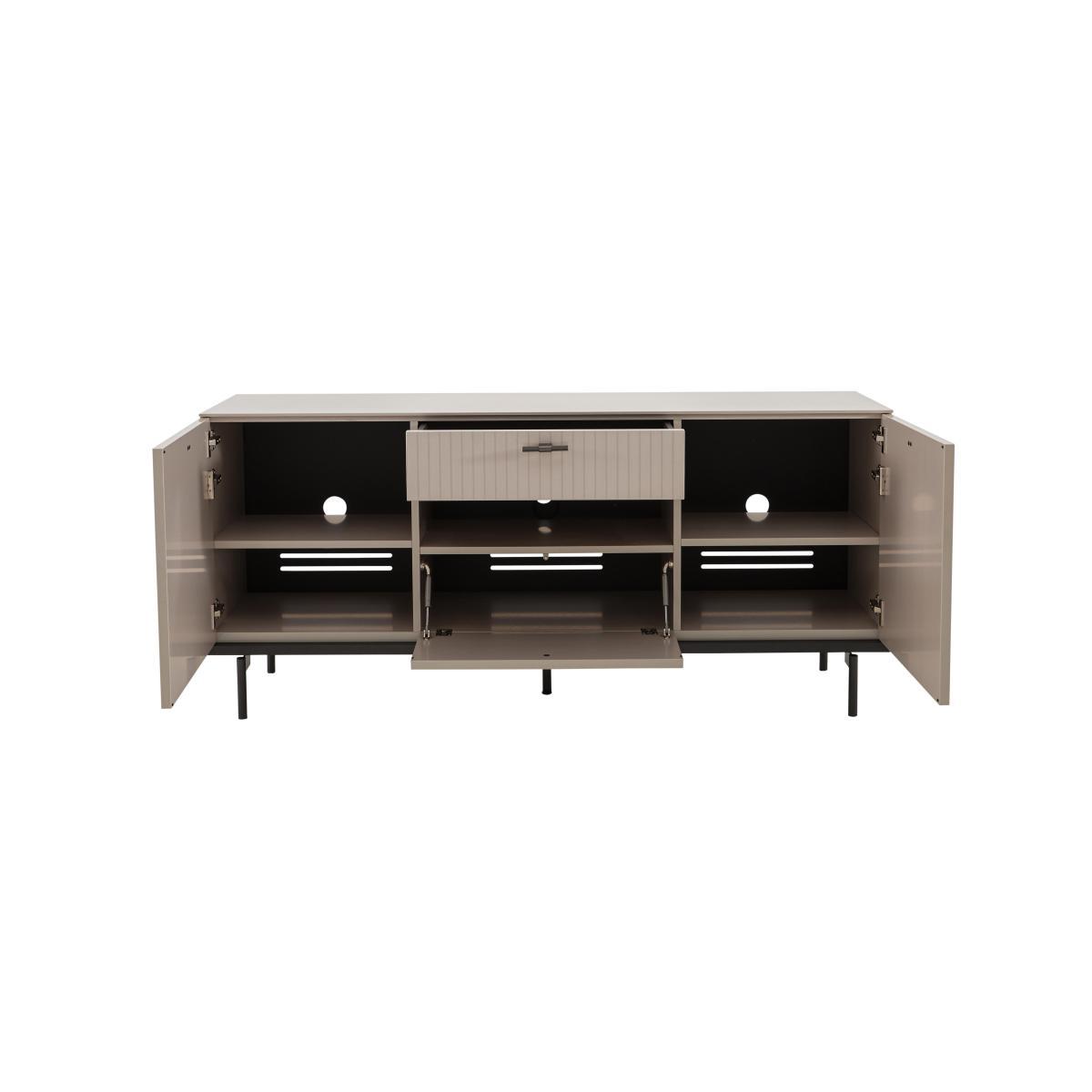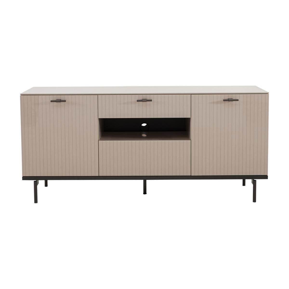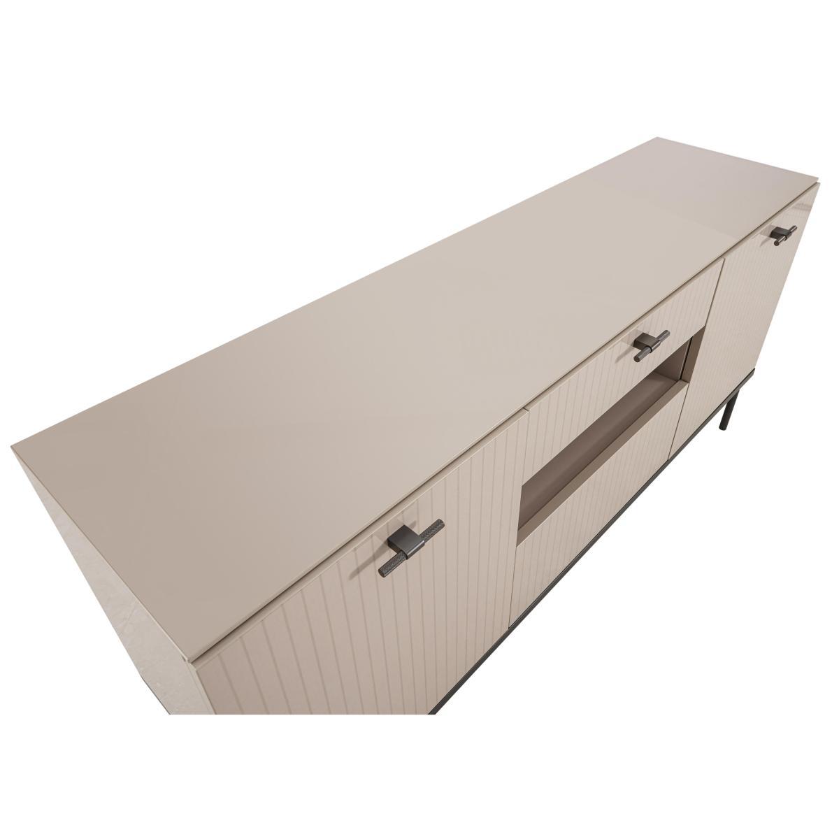 Modern TV unit from Italian furniture makers ALF. High-end, sleek and glossy design with attractive vertical etching detailing. Large surface for your TV and plenty of useful storage for all your media. Why you'll love it. Sleek, glossy modern TV unit from ALF. With distinctive vertical etching detailing. Plenty of storage in two spacious cupboards. With inbuilt drawer and open central section. Stunning high-gloss lacquer finish in warm pearl. Six coats of lacquer for a high shine, durable finish. Fantastic value price for high-end style. Designed and made in Italy exclusively for Furniture Village. What you need to know. Two spacious cupboards, each with one fixed shelf. Soft-close Blum drawer. Wood and particle board construction. Pearl coloured high gloss lacquer finish. Legs and cupboard handles are dark grey precision milled steel. Cabinet doors may need aligning over time. The lacquering process is labour and time intensive, with multiple layers of lacquer applied and dried under UV light, for a clean finish that is highly durable. Hairline marks are a natural feature of this furniture's high gloss finish. Polyurethane and like surfaces can reveal the polishing process in the form of small scratches. Avoid abrasive cleaners and direct sunlight. Wipe clean with a damp cloth and dry with a soft duster. Coasters and placemats are recommended. Be sure to tighten the leg bolts every three to four months. Part of the extensive ALF Livia dining range of dining sets and occasional furniture. WARNING!. Furniture can tip over unexpectedly and cause injury. This item should be fixed to a wall using the anti-tip kit provided with the furniture. Be sure to use the correct wall fixings suitable for the walls in your home.