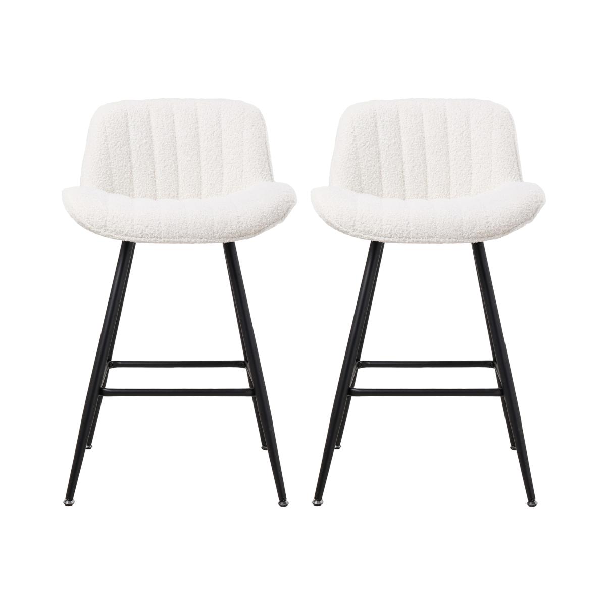 Livingandhome 2PCS Sherpa Fleece Upholstered Bar Stools - White