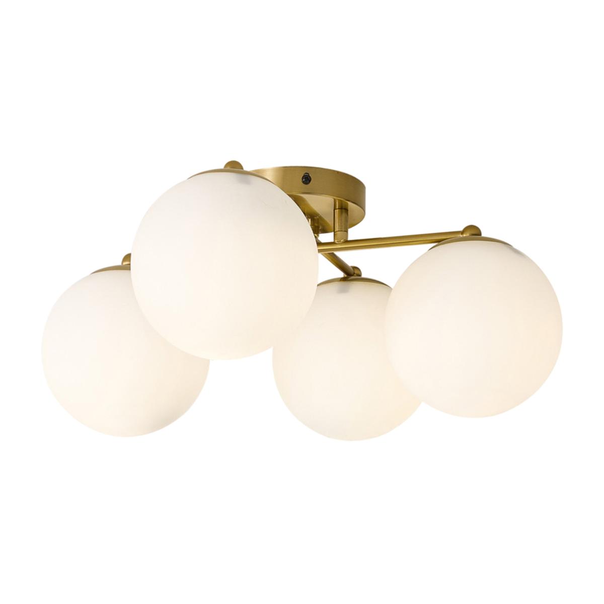 Brighten your home with this stylish ceiling light, where classic charm meets versatile appeal. Its round glass lampshade and elegant gold fixture blend seamlessly with any decor, while the gold-and-white combination strikes a balance between modernity and vintage warmth, adding a cozy, sophisticated touch to your space. Four evenly placed lights deliver all-around illumination, banishing shadows to brighten rooms thoroughly. Crafted with a high-quality glass lampshade (boasting excellent light transmission and heat resistance) and a durable, corrosion-resistant metal fixture, it offers strong support for long-term use. CE certification ensures compliance with European safety standards, and installation is secure and stable, keeping it firmly in place. With a standard E27 socket, bulb replacement is effortless-perfect for bedrooms, living rooms, dining areas, or studies, it is an ideal lighting choice for any room.