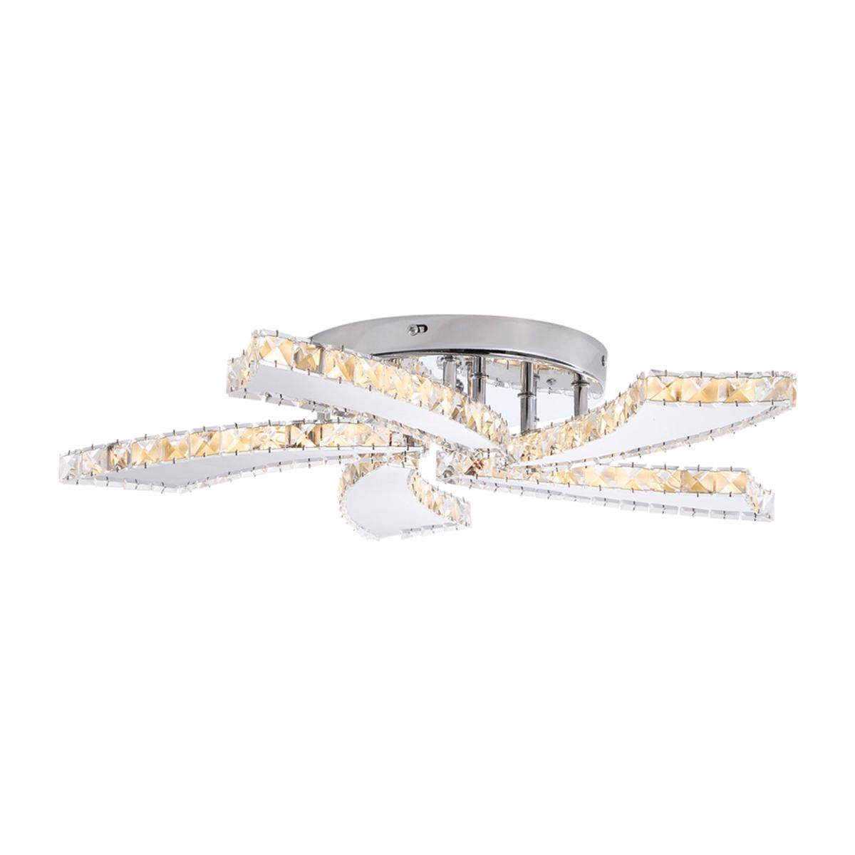 Livingandhome Petal-Curved Crystal Ceiling Light with Remote Control - Chrome + Transparent