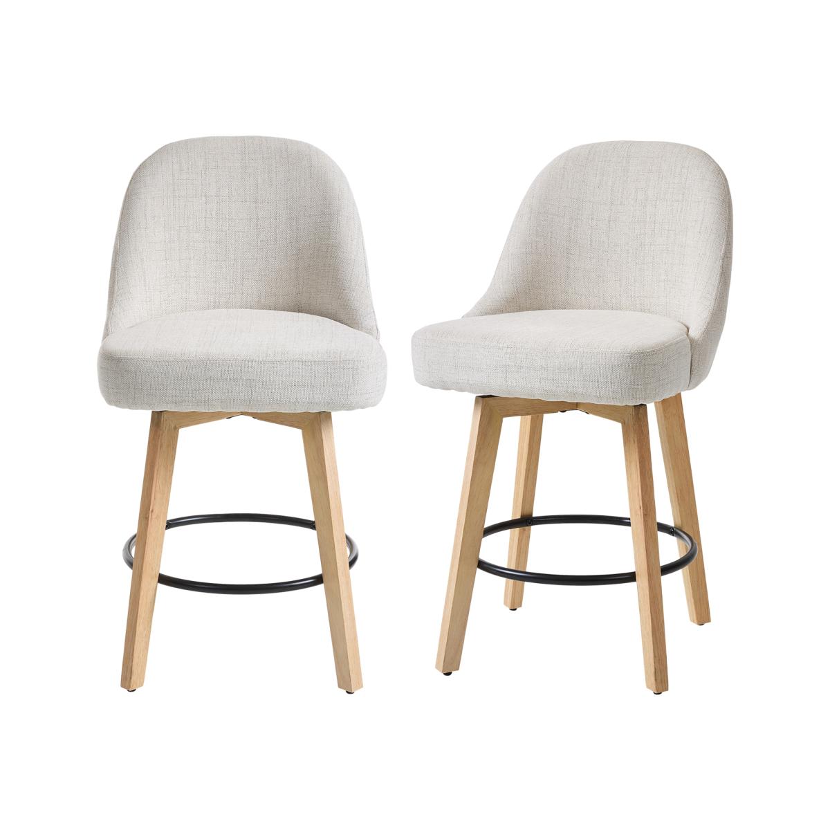 Livingandhome Set of 2 Swivel Bar Stools with Wooden Legs and Round Footrest - Beige