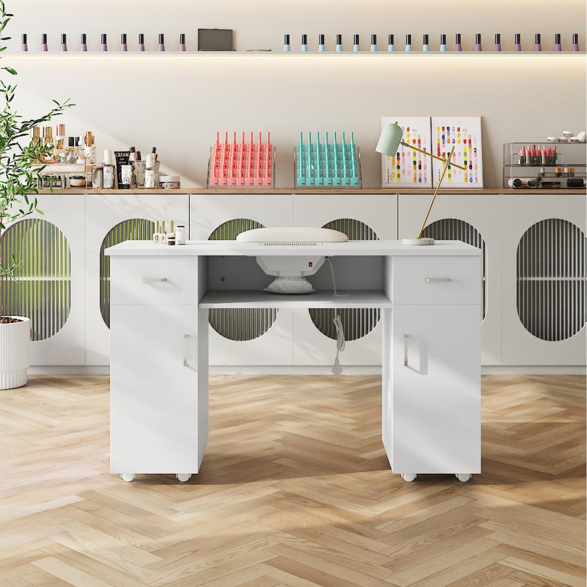 Livingandhome Wheeled Manicure Table with Dust Extractor - White