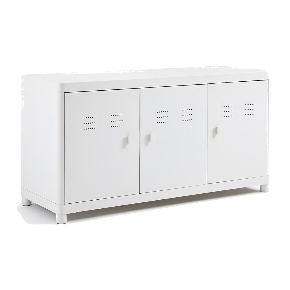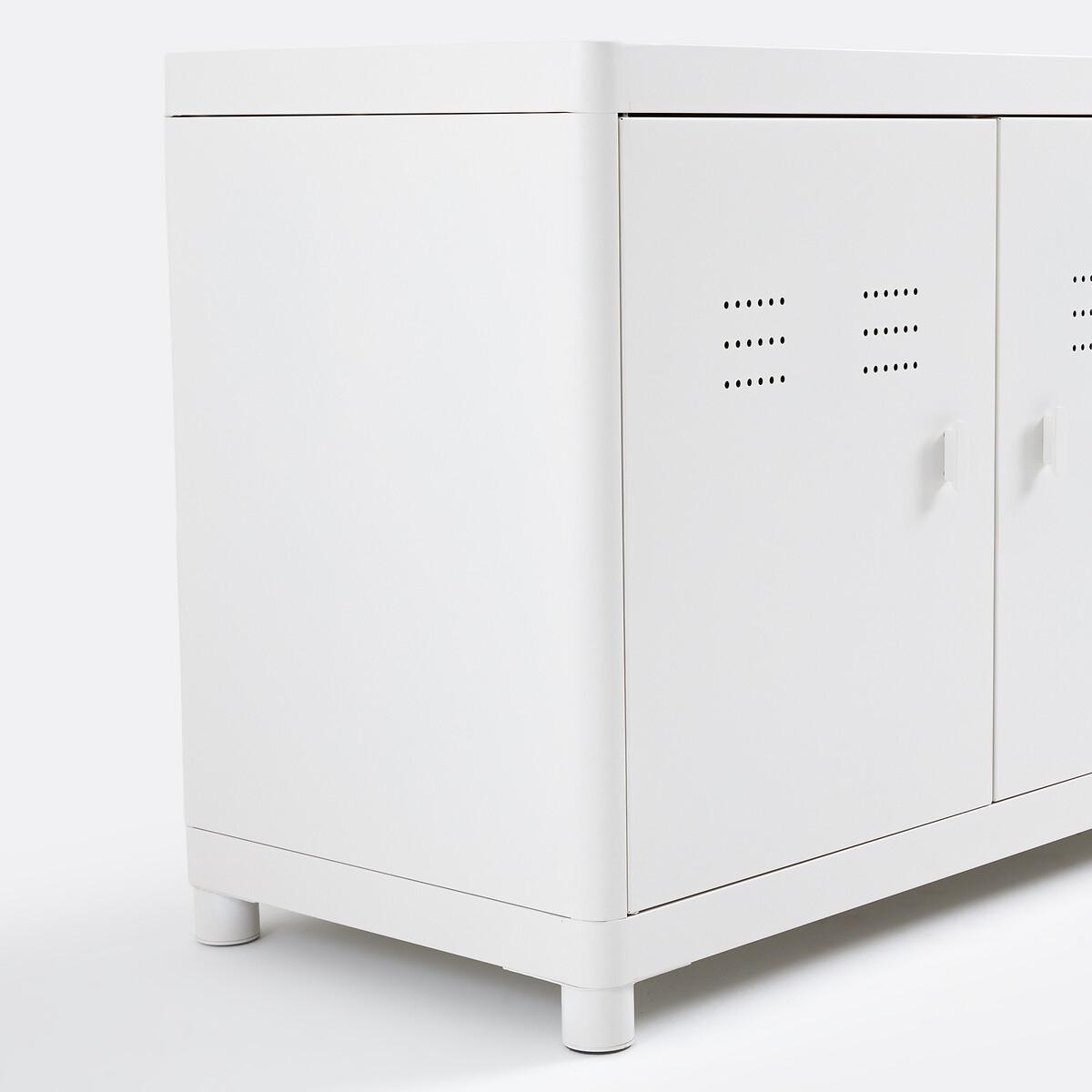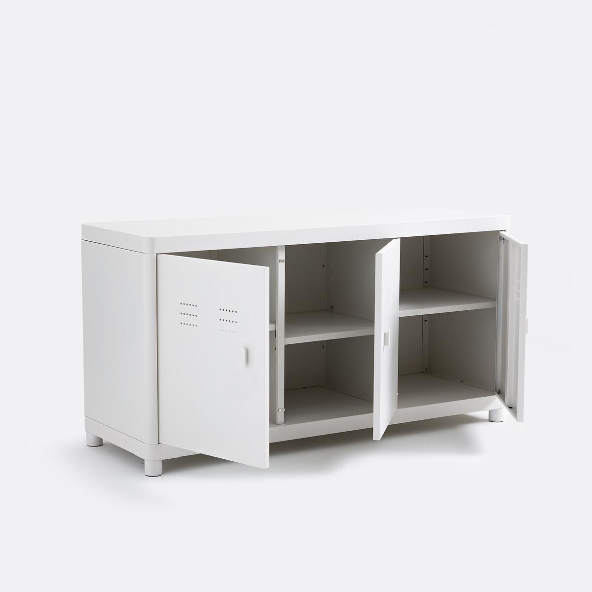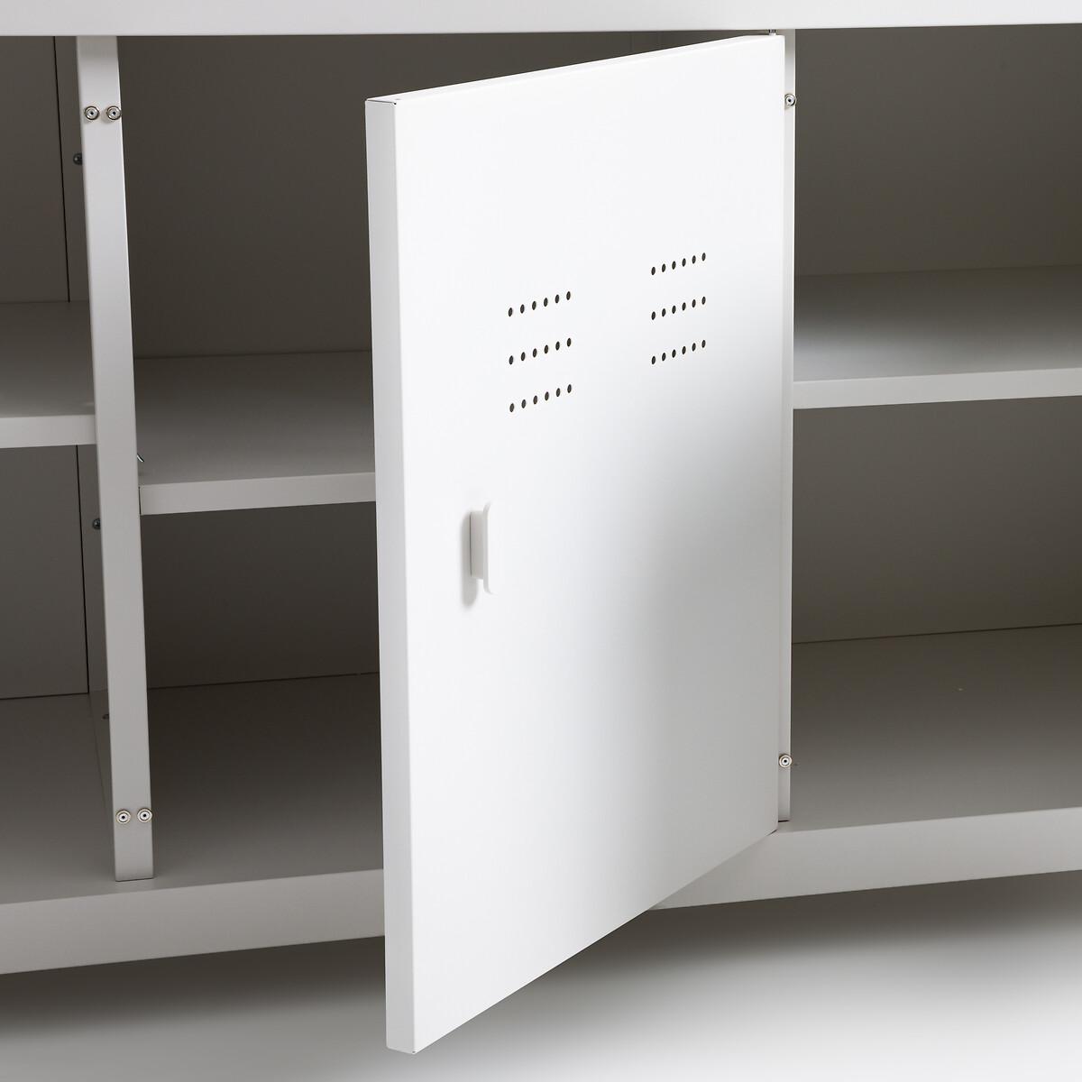 The all-metal Livona sideboard will add a contemporary touch to your home. When it comes to storage, there are 3 large compartments behind 3 doors for optimum organisation. Created by La Redoute Interiors Product Details • Structure, base and knob handles in grained print epoxy finish stained steel • 3 large compartments behind 3 doors • 3 removable, height-adjustable shelves • Height-adjustable legs • People required for assembly: 2. Dimensions Width : 144cm Height: 74cm Depth: 50cm Weight: 36kg Interior compartment: L46 x H59 x D43cm • This product requires assembly. Dimensions and weight of parcel • 2 parcels • L155 x H16 x D59cm, 24kg • L156 x H16 x D58cm, 20kg