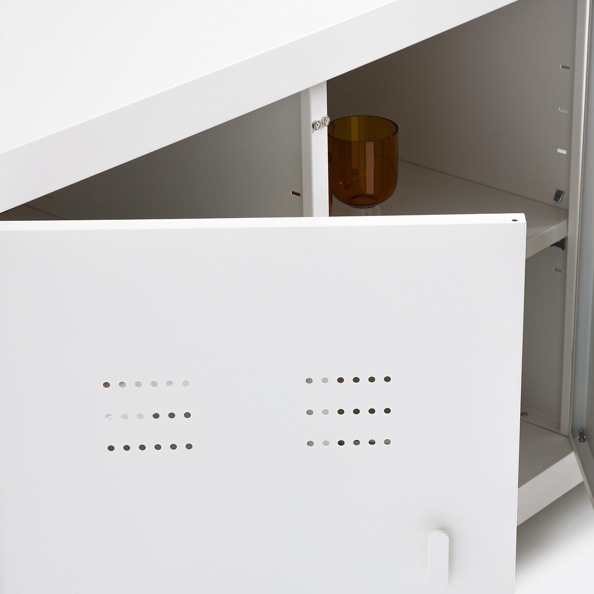 I really like the Livona 3 door steel sideboard for its clean, minimalist design and versatile functionality. Its simple white finish allows it to sit comfortably in a variety of interiors, from Scandi-inspired spaces to more contemporary or industrial looks. It’s a practical piece for storage, ideal for organising tableware in a dining room or even media equipment in a living area. To style it, consider adding a few decorative accents like vases, lamps or framed artwork on top, while keeping the inside organised with baskets or boxes for a tidy appearance. Its straightforward design makes it a reliable choice that can adapt and evolve with your interior over time.