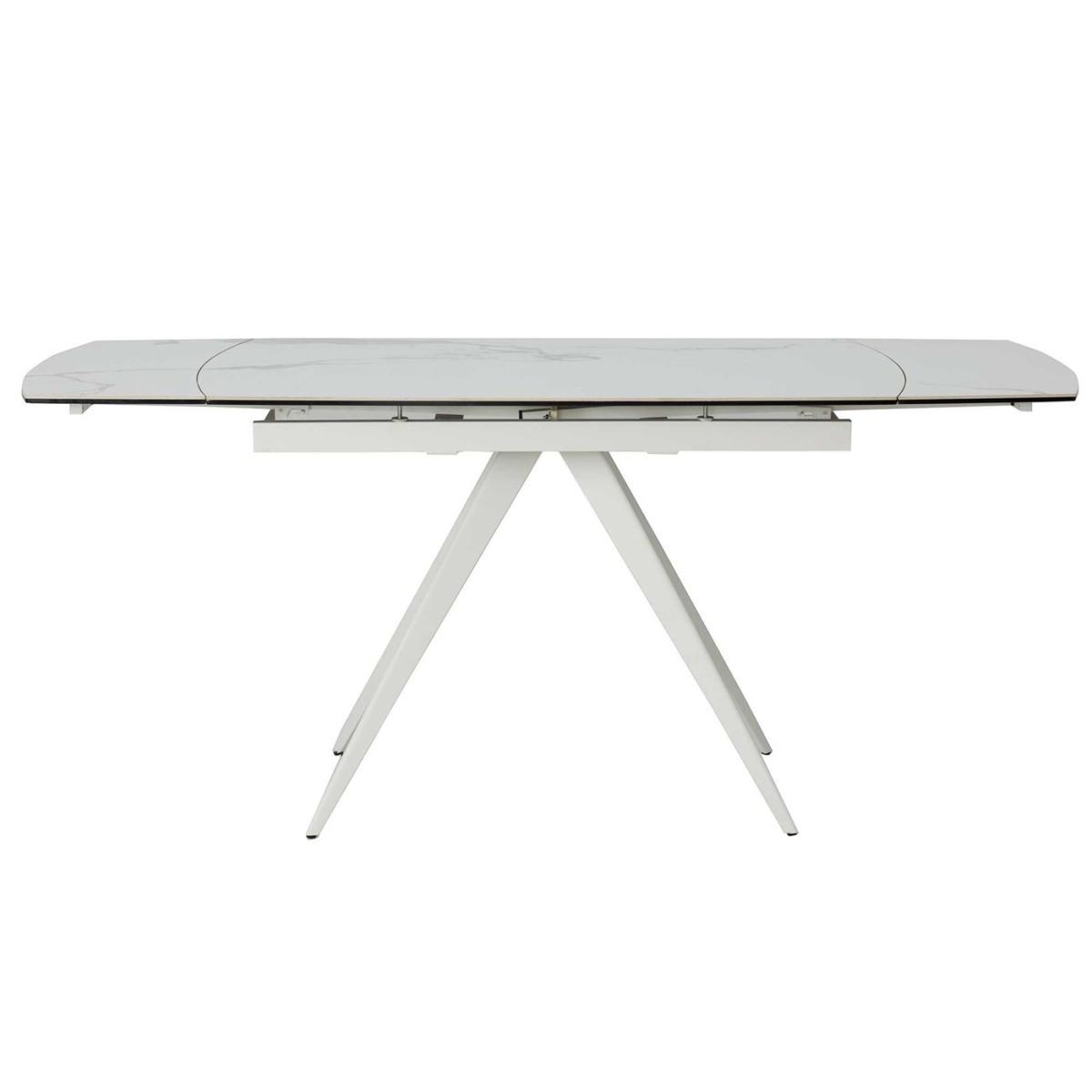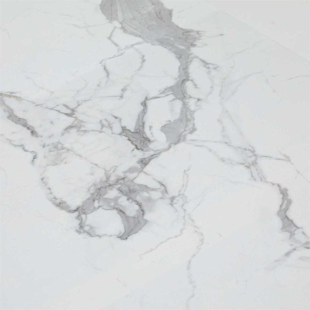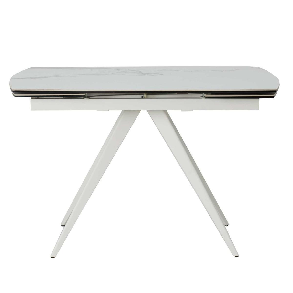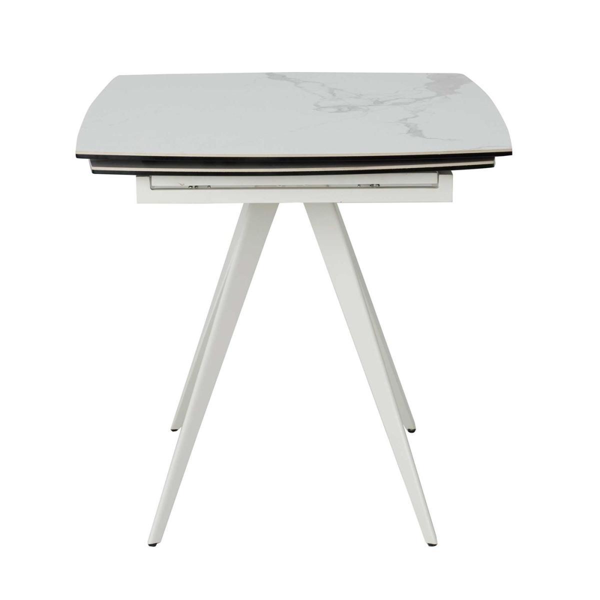 Design. Topped with smooth ceramic in a white marble finish and set upon sleek metal legs, the Livorno extending dining table is a fine example of modern elegance. Extending at each end to offer extra space, it’s perfect for hosting family and friends. In a clean white finish that will complement most colour schemes, this extending marble dining table will give a refreshing update to any interior.
