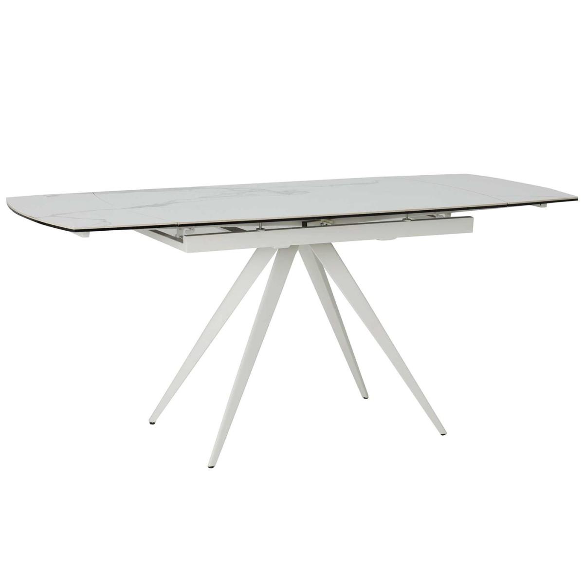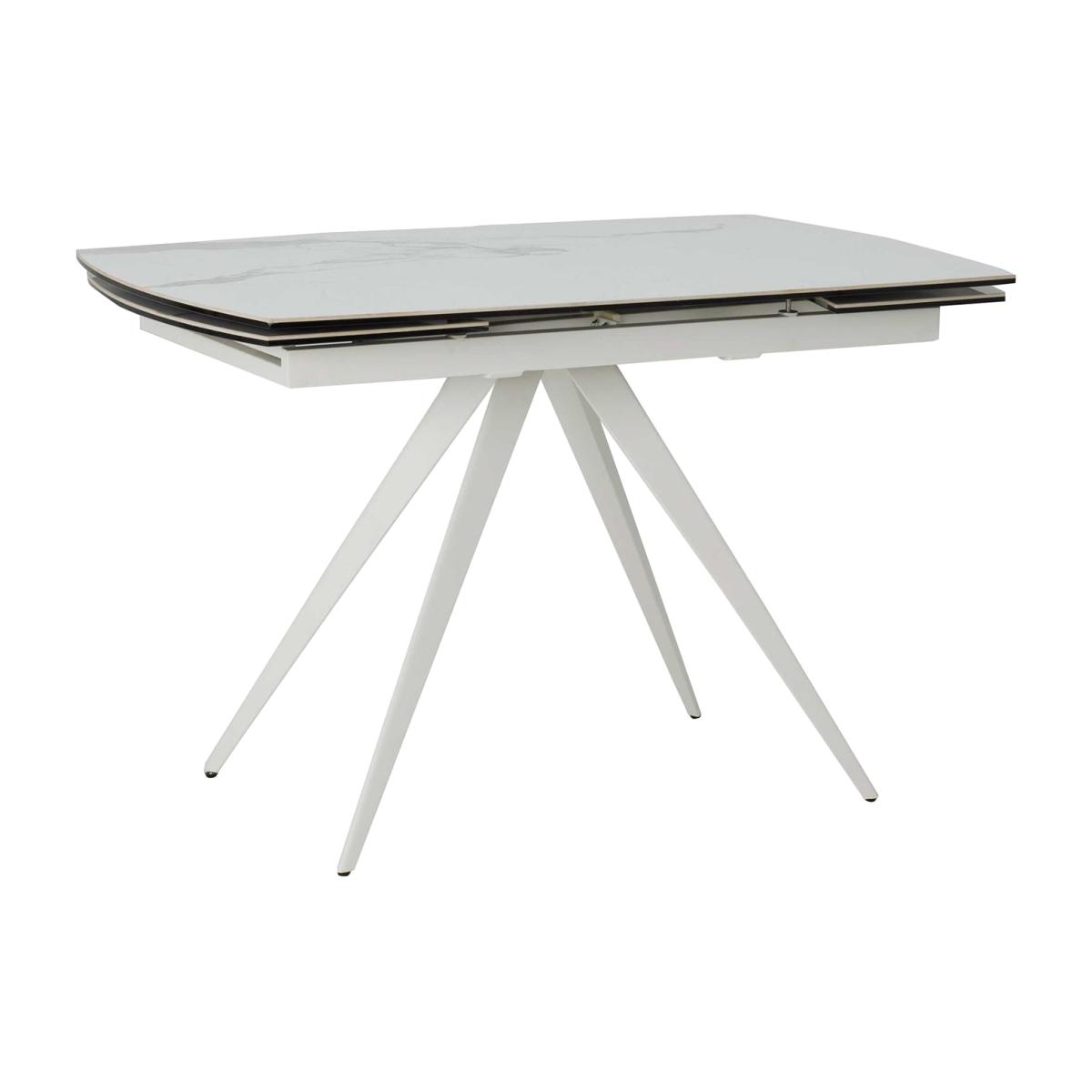 Design. Topped with smooth ceramic in a white marble finish and set upon sleek metal legs, the Livorno extending dining table is a fine example of modern elegance. Extending at each end to offer extra space, it’s perfect for hosting family and friends. In a clean white finish that will complement most colour schemes, this extending marble dining table will give a refreshing update to any interior.