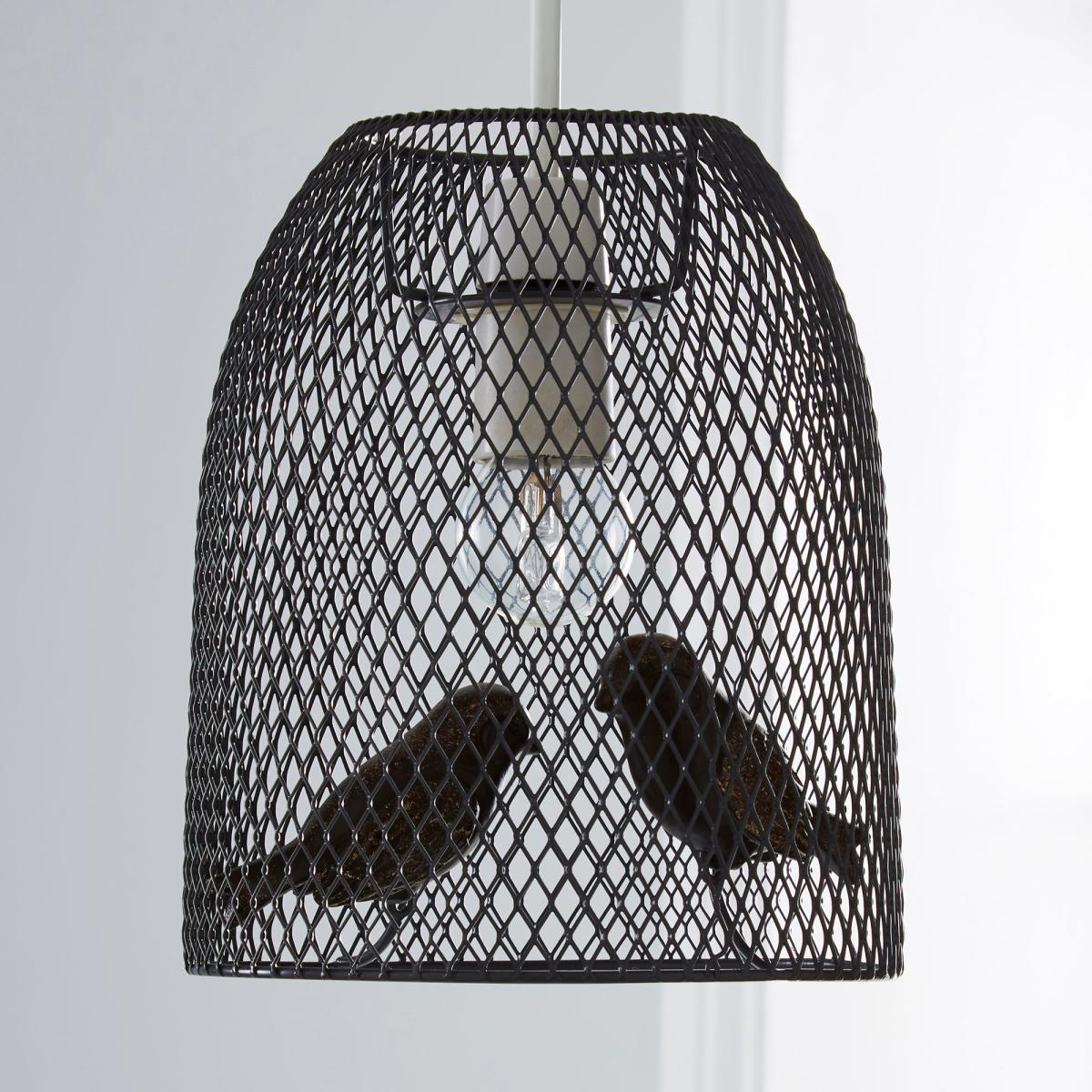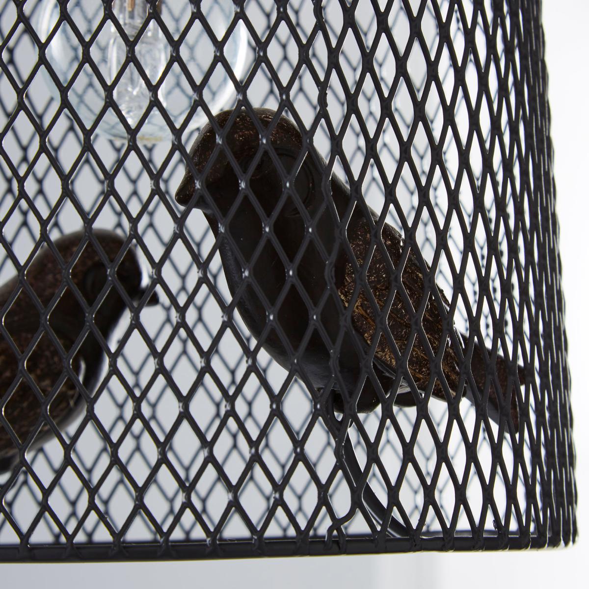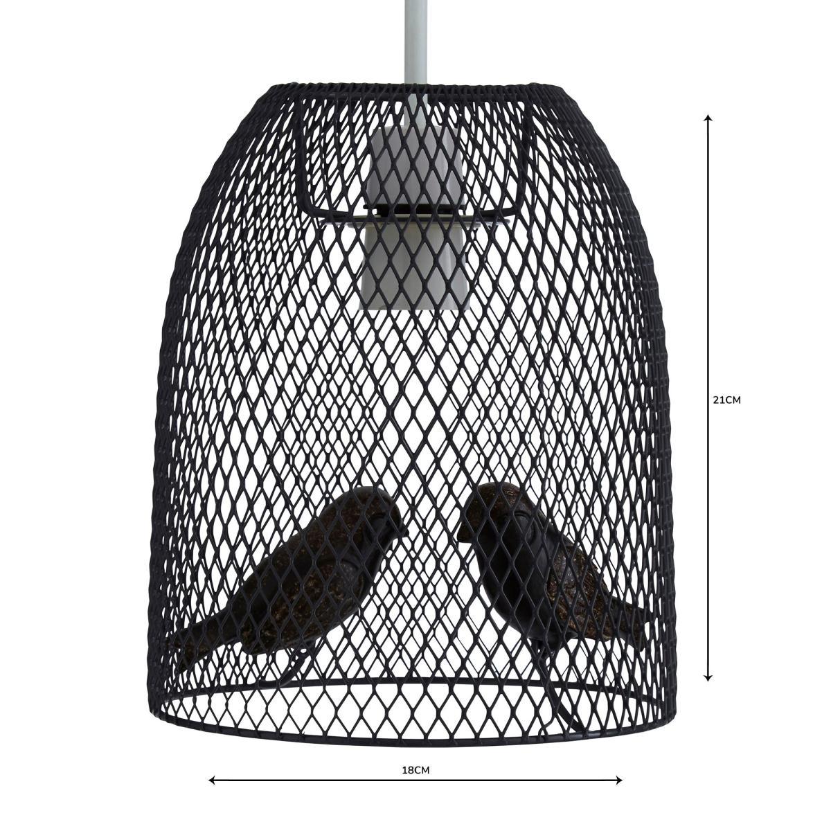 Stylishly fashioned in a dark charcoal grey colour, this stunning pendant features metal mesh design with two intricately crafted birds inside. Please note: Bulbs not included.