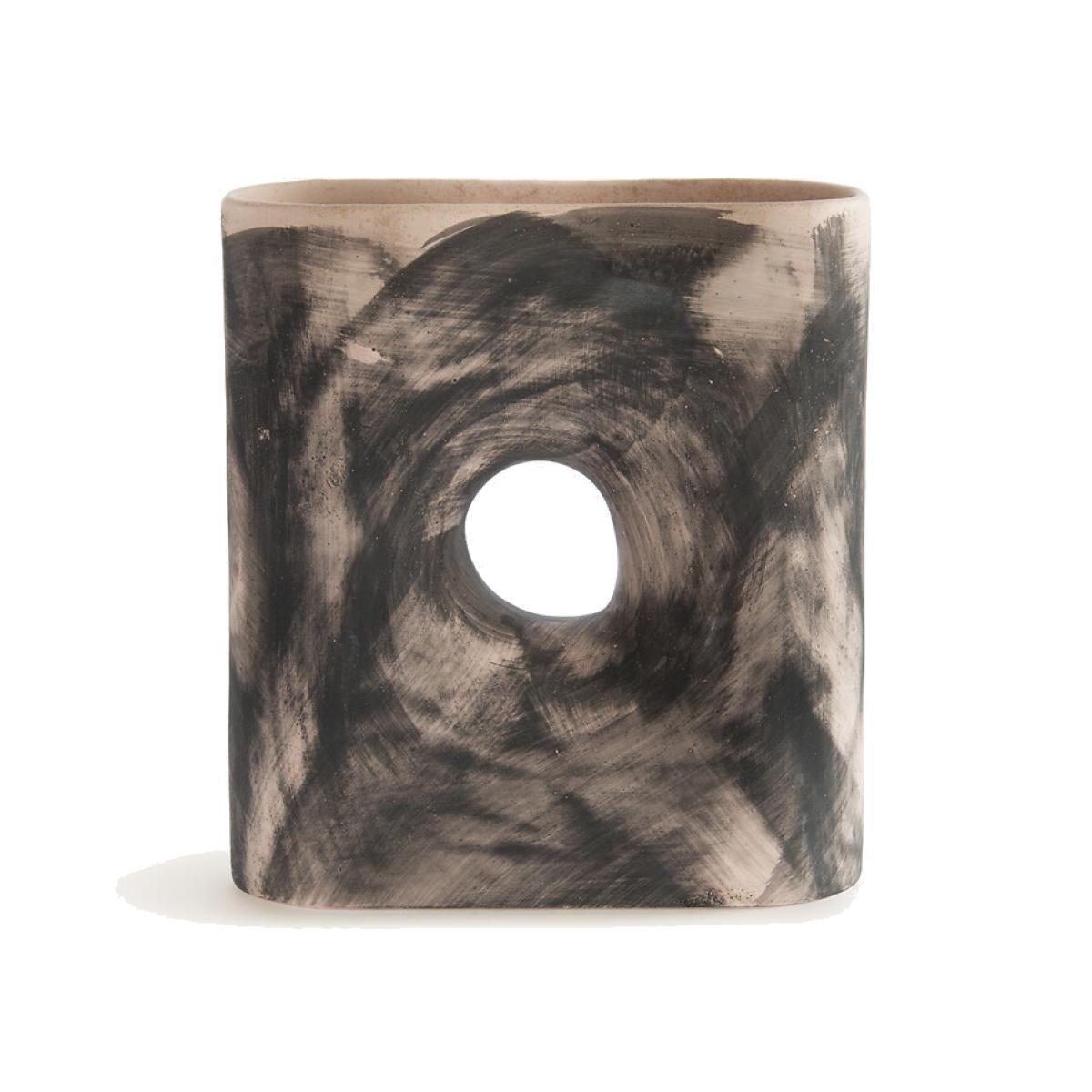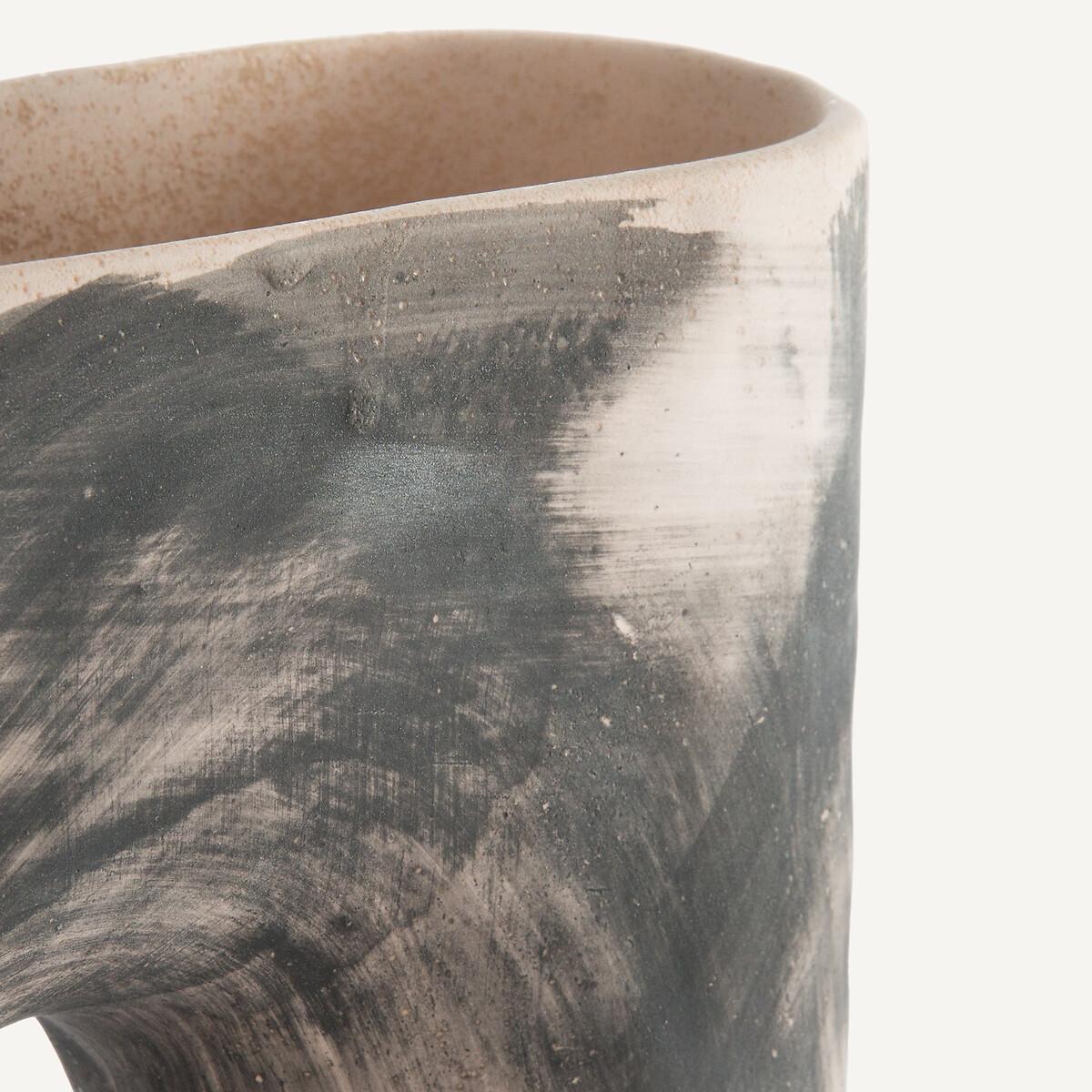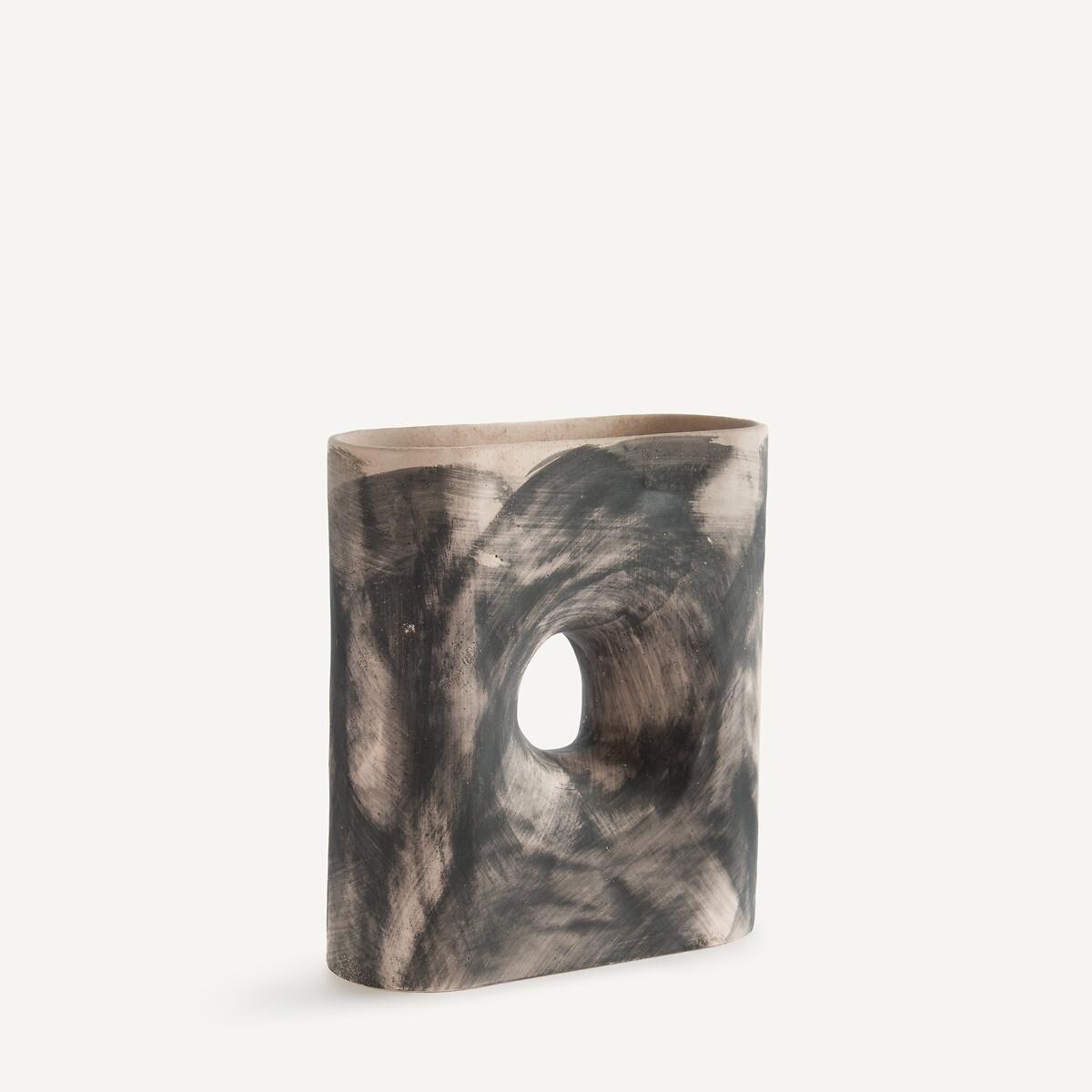 Dialogue between structure and fluidity. The Lixa vase is striking for its architectural shape and gentle curves. Its smooth beige earthenware surface is covered with brushstrokes, testimony to the work of the craftsman. A vase sculpture with a unique personality, made in Portugal. Product Details • Matt beige earthenware, highlighted with black brushstrokes • Hand-crafted, each piece is unique. Shapes, colours and dimensions may vary slightly from product to product. Dimensions • Width: 20.5cm • Height: 22.5cm • Depth: 8cm/3" • MADE IN PORTUGAL.Dimensions and weight of parcel • • 1 parcel • W27.5 x H30.5 x D15cm, 1.7kg