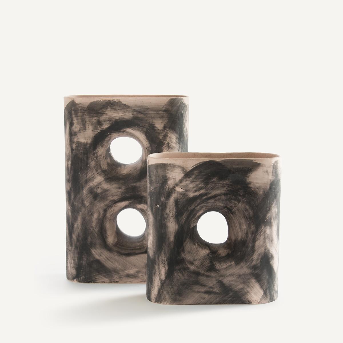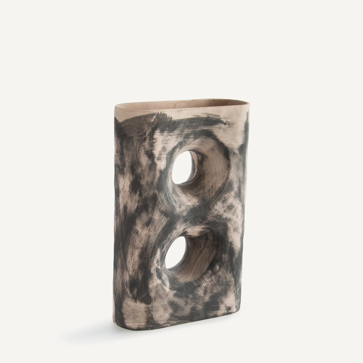 Dialogue between structure and fluidity. The Lixa vase is striking for its architectural shape and gentle curves. Its smooth beige earthenware surface is covered with brushstrokes, testimony to the work of the craftsman. A vase sculpture with a unique personality, made in Portugal. Product Details • Matt beige earthenware, highlighted with black brushstrokes • Hand-crafted, each piece is unique. Shapes, colours and dimensions may vary slightly from product to product. Dimensions • Width: 20cm • Height: 30cm • Depth: 7.5cm/3" • MADE IN PORTUGAL.Dimensions and weight of parcel1 parcel • W27 x H38 x D14.5cm, 2.1kg