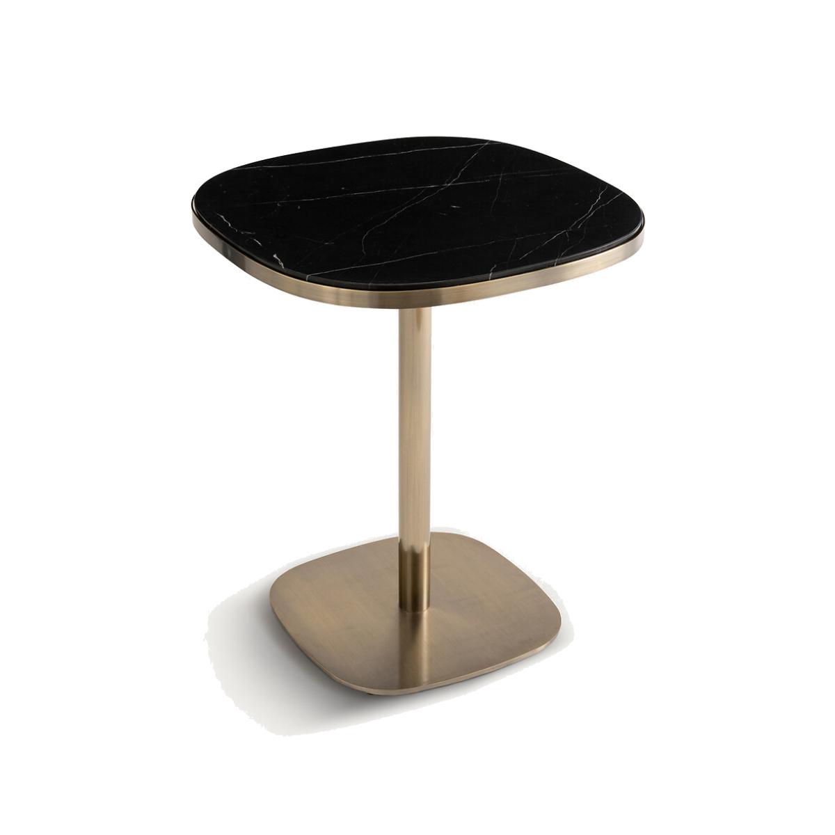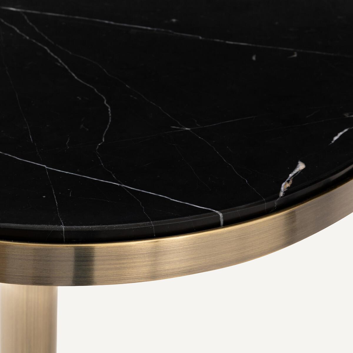 The iconic bistro table revised and modernised with its organic marble top blending very well with its aged brass finish metal base. Product Details • Black marble top. Each piece is unique, the marbling can be more or less obvious • Frame and base in aged brass finish metal • Seats 2. Care Advice. Marble is a naturally porous material that is sensitive to stains. To preserve all its qualities, follow the advice below. :• Avoid placing hot objects on the surface, use coasters and trivets. • Immediately wipe up any spilled liquid with a white cloth dipped in lukewarm water and wrung out. • Maintain your marble regularly with products from our partner Akemi® • We advise you to use Akemi® Crystal Clean Spray for your daily maintenance and, at least once a month, Akemi® Triple Effect Spray to clean and protect your marble surface.. This will reinforce the initial treatment and its water-repellent effect will prevent dirt from easily penetrating the stone.. • If you want to use products other than those of our partner Akemi®, choose only p. H-neutral cleaners. • Acid, anti-limescale or bleach-based products are not recommended. Dimensions • Diameter : 60cm • Height: 70cmDelivery:. Sold pre-assembled. Available for home delivery. Dimensions and weight of parcel2 parcels • L80 x H10 x D72cm. 19kg. • L68 x H11 x D68cm. 21kg.