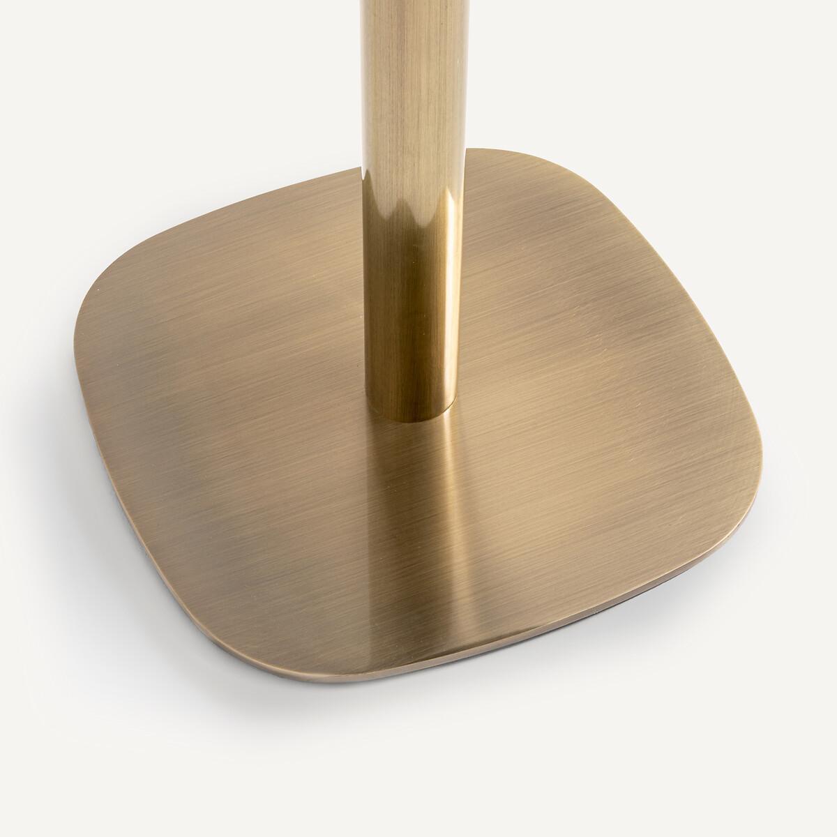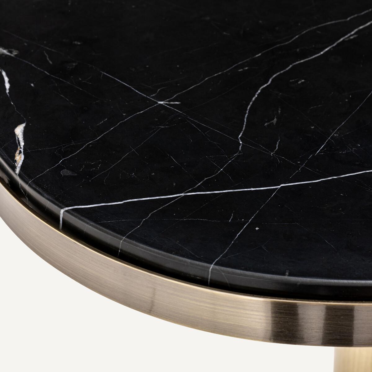 The iconic bistro table takes on height and comes in a high table format, eatable standing up. Product Details • Black marble top (thickness 1.5 cm). Each piece is unique so the marbled effect may vary • Frame and base in aged brass finish metal • Seats 2 • Sold pre-assembled • Marble is a naturally porous material that is sensitive to stains. • Avoid placing hot objects on the surface, use coasters and trivets. • Immediately wipe up any spilled liquid with a white cloth dipped in lukewarm water and wrung out. • Maintain your marble regularly with products from our partner Akemi® • We advise you to use Akemi® Crystal Clean Spray for your daily maintenance and, at least once a month, Akemi® Triple Effect Spray to clean and protect your marble surface.. This will reinforce the initial treatment and its water-repellent effect will prevent dirt from easily penetrating the stone.. • If you want to use products other than those of our partner Akemi®, choose only p. H-neutral cleaners. • Acid, anti-limescale or bleach-based products are not recommended. Dimensions • Diameter: 60.5cm • Height: 105.5cm. Dimensions and weight of parcel3 parcels • L68 x H12 x D68cm. 18kg. • L68 x H10 x D68cm. 19kg. • L108 x H13 x D13cm. 3kg.