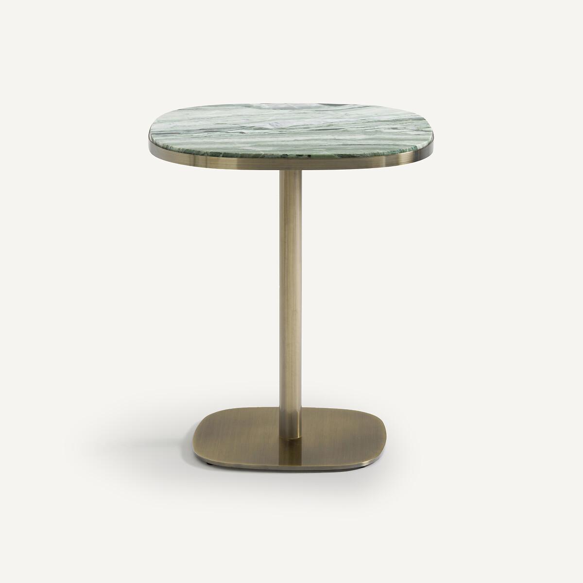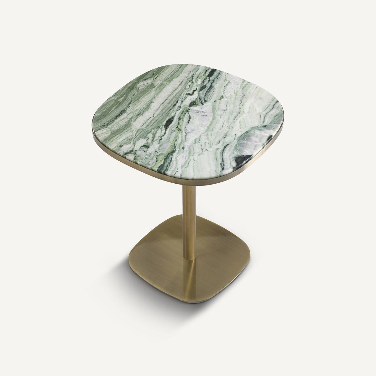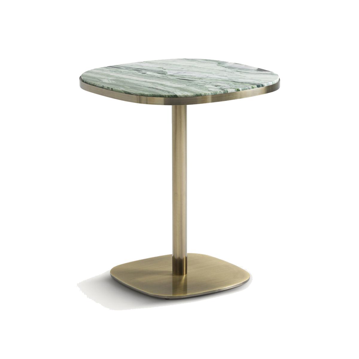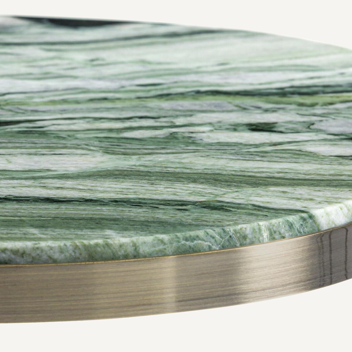 The iconic bistro table modernised with an organic green marble top that goes very well with an aged brass-finish metal base.
