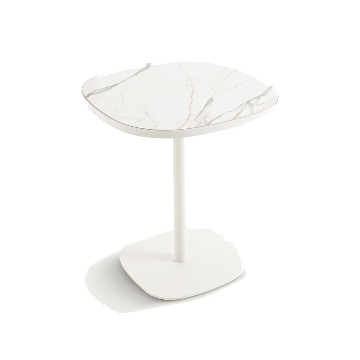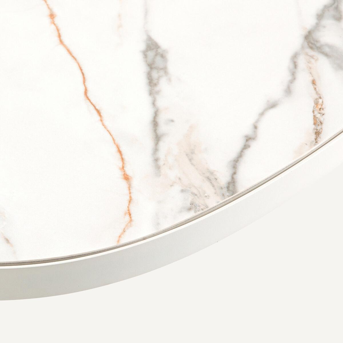 The iconic bistro table revisited and modernised with an organic white ceramic top on a matte finish painted metal base. Lixfeld can accommodate two diners. Craftsmanship detail: the ceramic top is surrounded by metal. An AMPM signature design. Product Details • White ceramic top, white marble imitation. Each piece is unique, colours and marbling may vary from top to top • Frame and base painted steel matte finish • Seats 2. Care Advice Ceramic is a material resistant to stains, shocks and scratches. It can be cleaned with a damp sponge.. Do not use abrasive product. Dimensions • Width: 60cm • Height: 70cm • Depth: 60cmDelivery:. This product is sold ready to assemble. Note! Please check that all access points are large enough to accommodate your delivery (doors, stairs, lifts).Dimensions and weight of parcel2 parcels • L80 x H11 x D72cm, 19kg • L68 x H10 x D68cm, 16kg