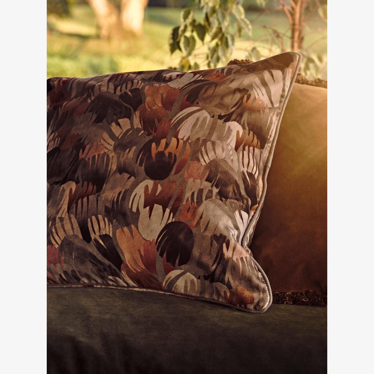 The Liz cushion offers a luxurious, tactile finish with its rich, velvet-like material and earthy tones, making it a versatile addition to many interiors. I love how it adds a touch of sophistication and warmth, especially in more neutral or muted spaces like living rooms with deep-toned sofas or layered bedding setups. It works particularly well in eclectic, boho, or mid-century styled interiors where its pattern can act as a statement piece. For styling tips, try pairing it with textured throws and contrasting cushions in different fabrics to create a curated, inviting look. It’s a practical choice for adding colour and depth without overwhelming your space.